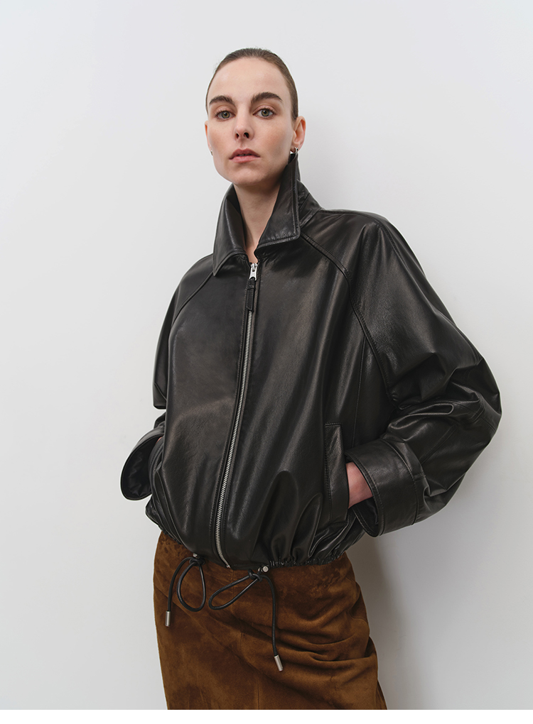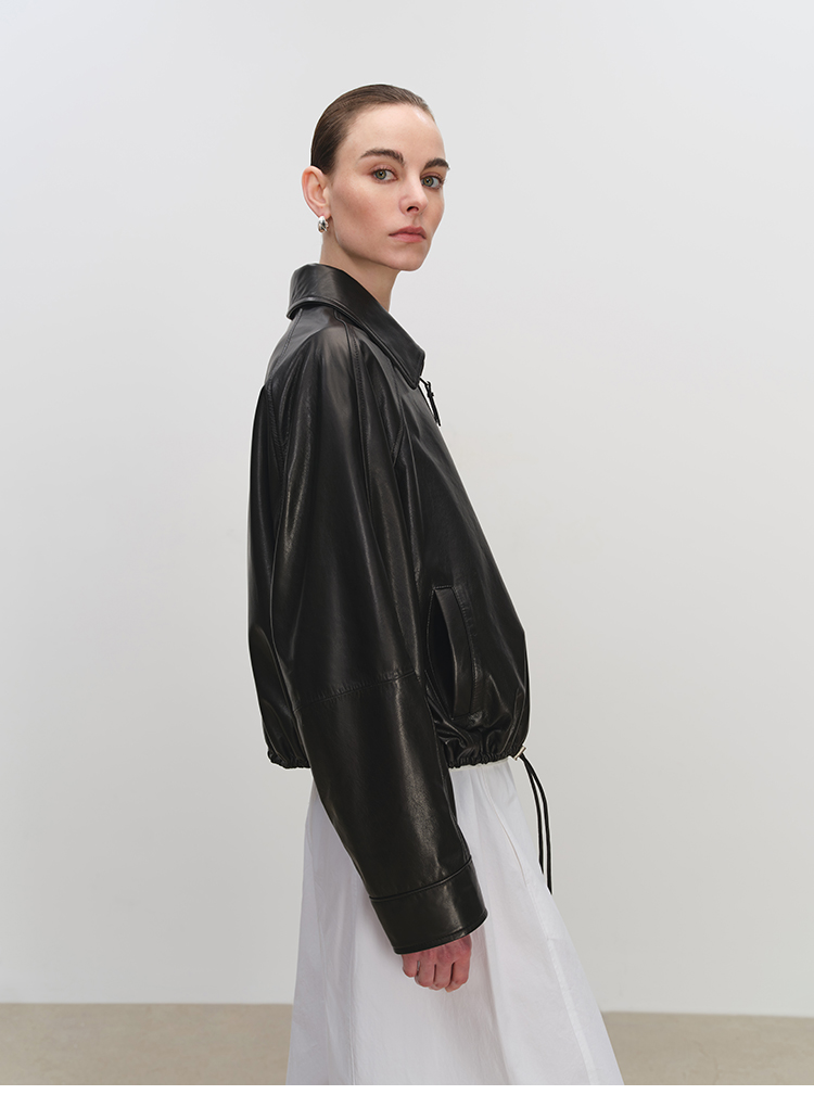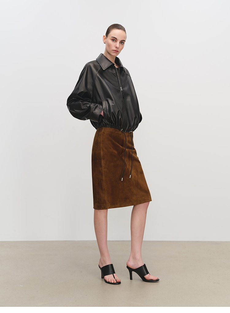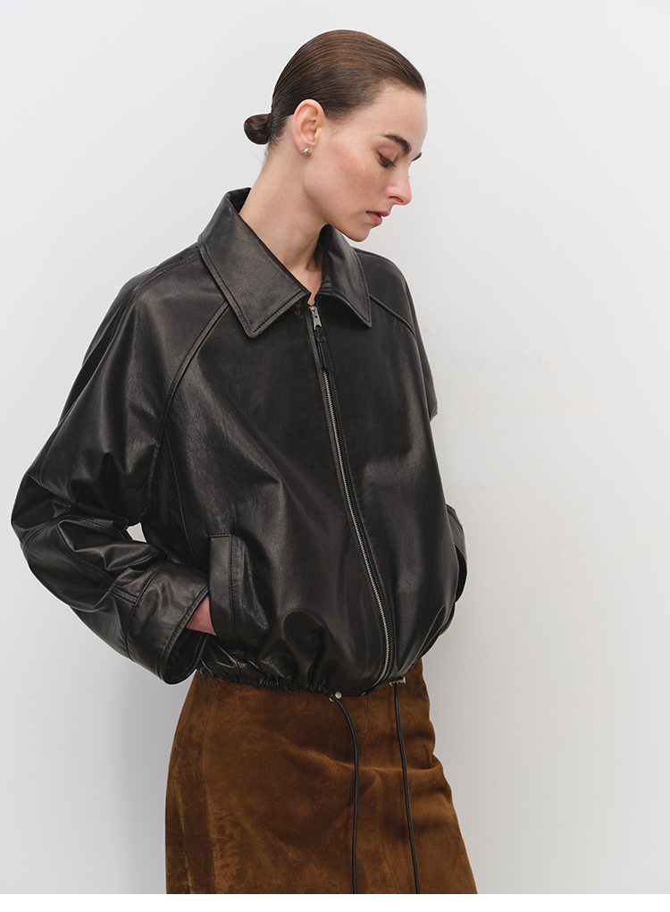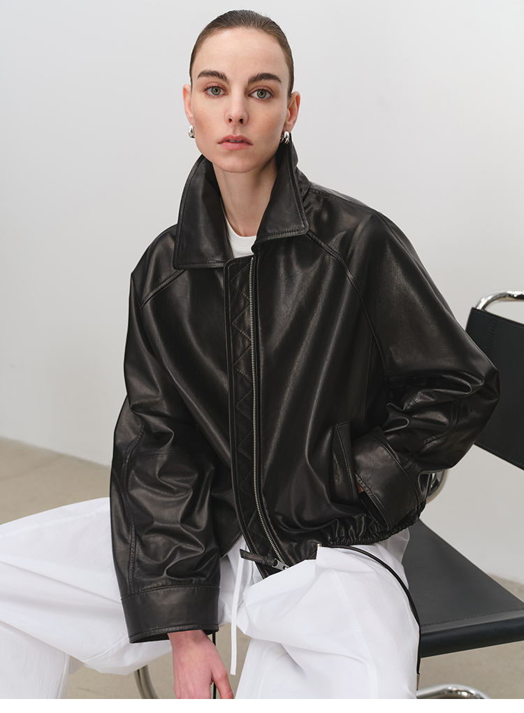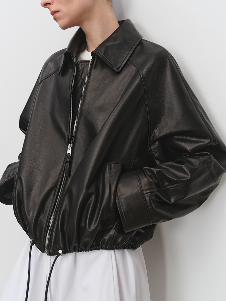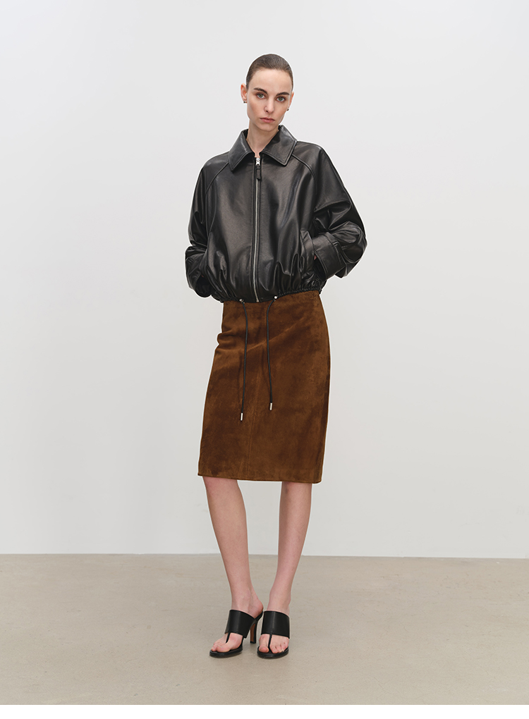 Msbeast Imported Dual-Version Sheepskin Lo*We Style Lapel Drawstring Silhouette Short Jacket Leather Jacket | Balloon Jacket