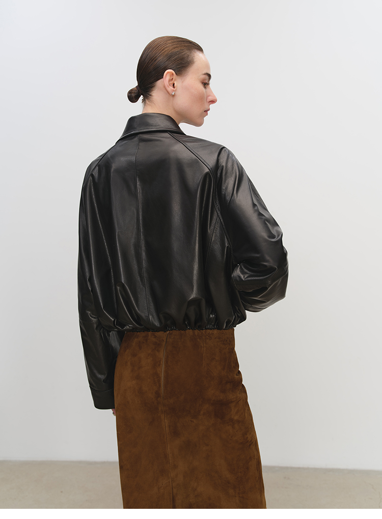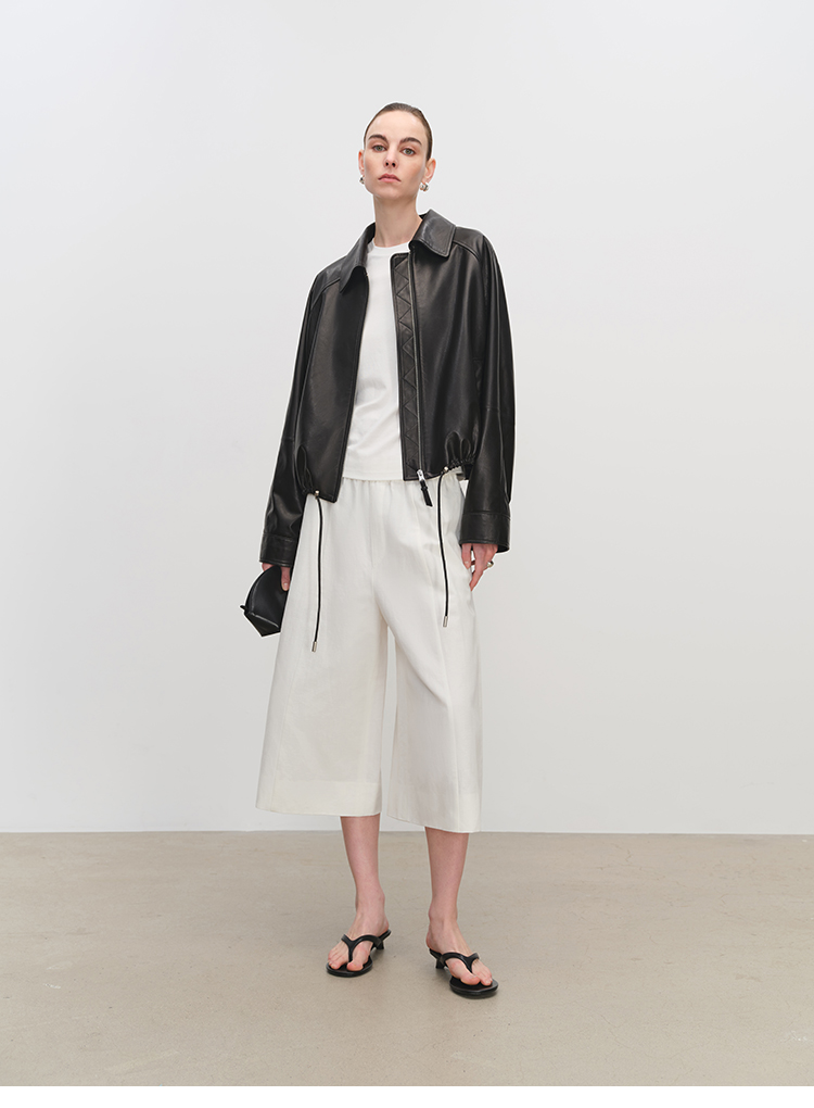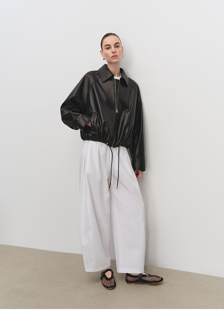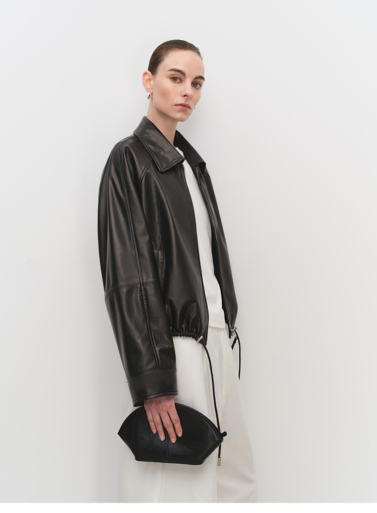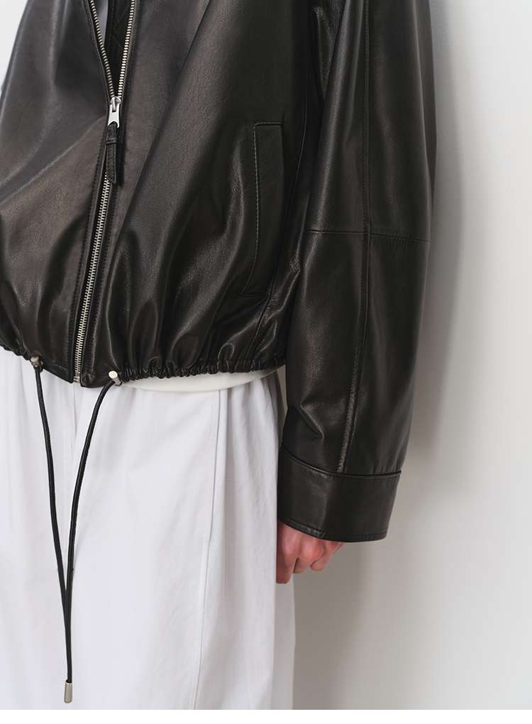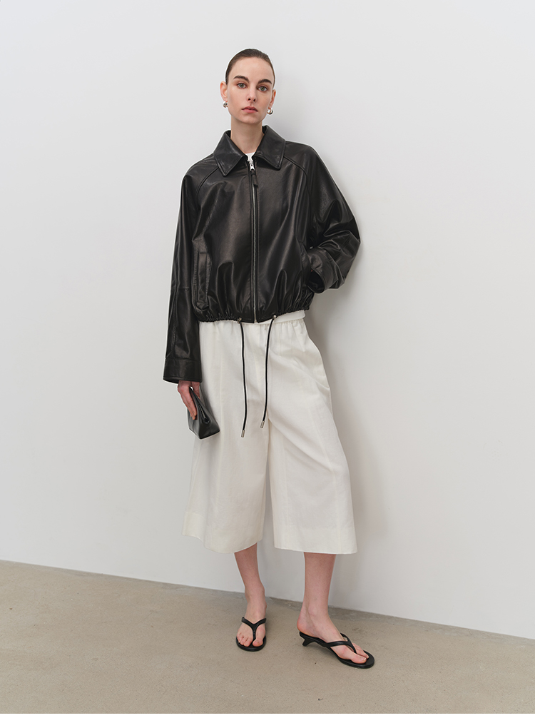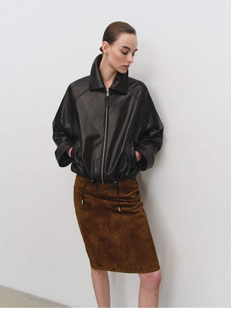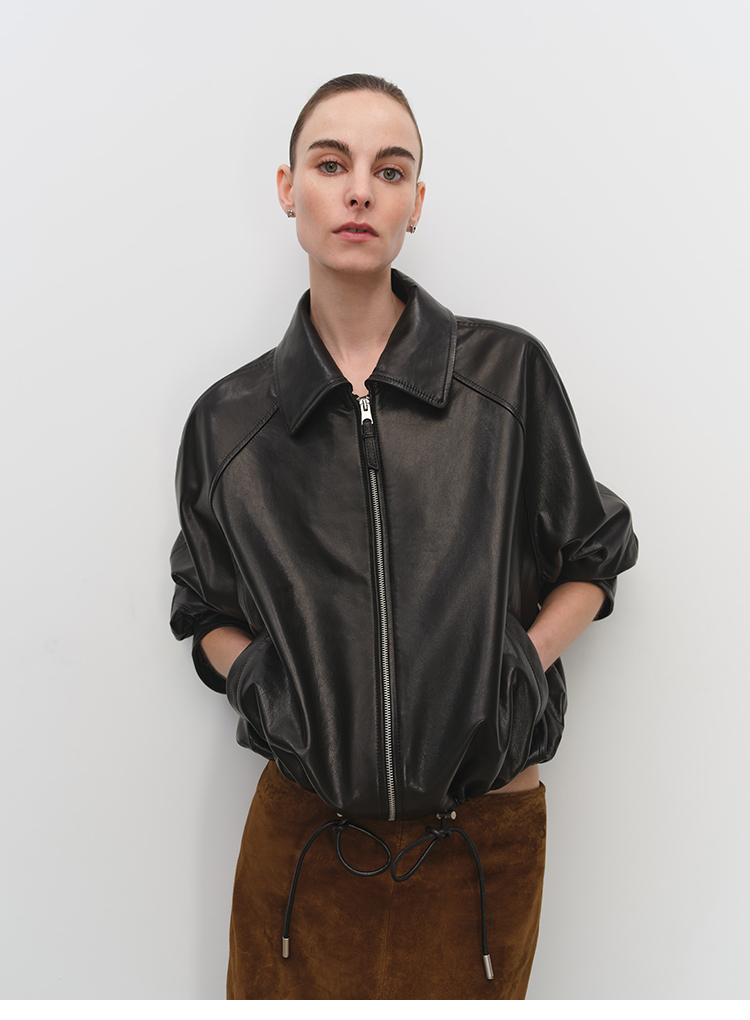 Msbeast Imported Dual-Version Sheepskin Lo*We Style Lapel Drawstring Silhouette Short Jacket Leather Jacket | Balloon Jacket