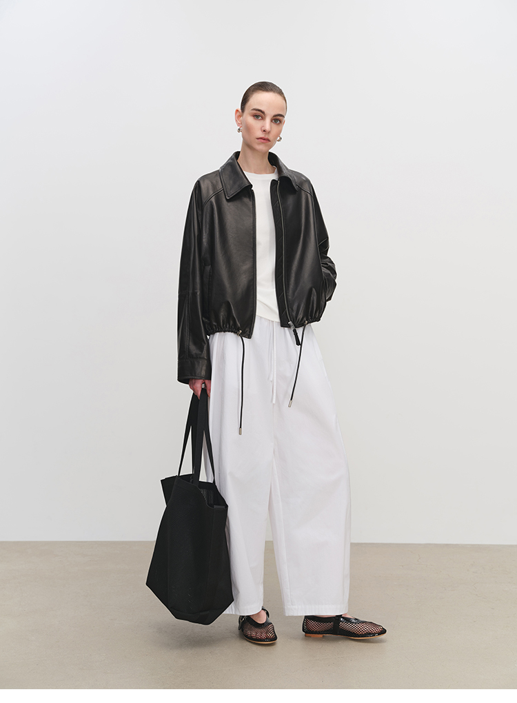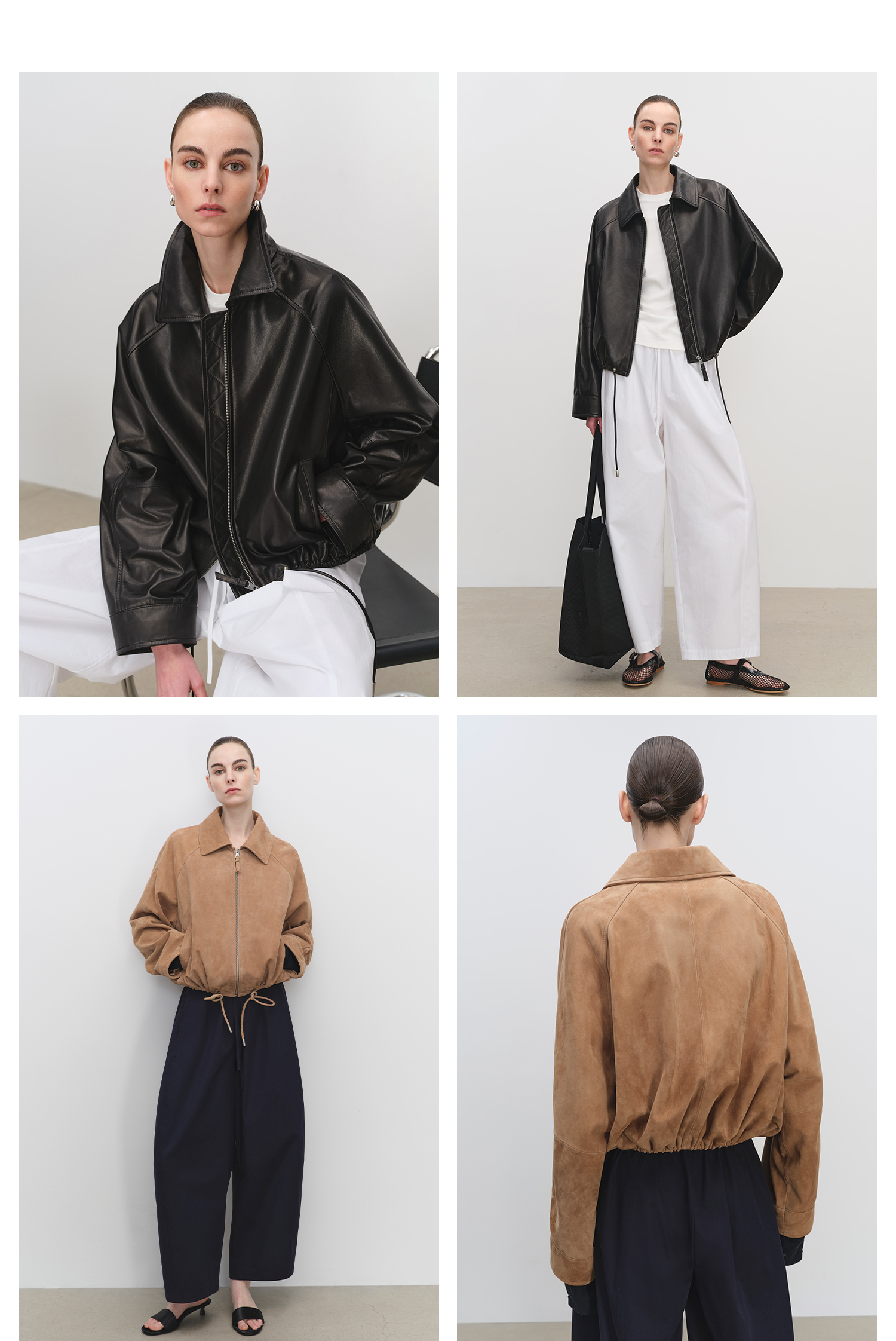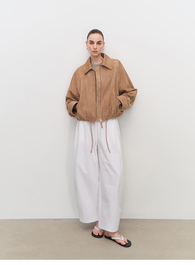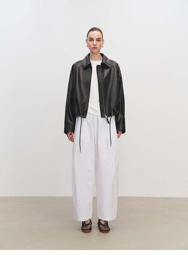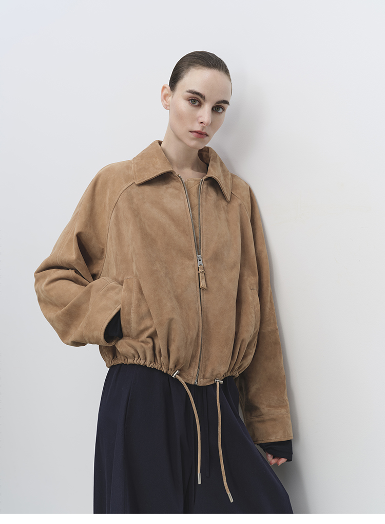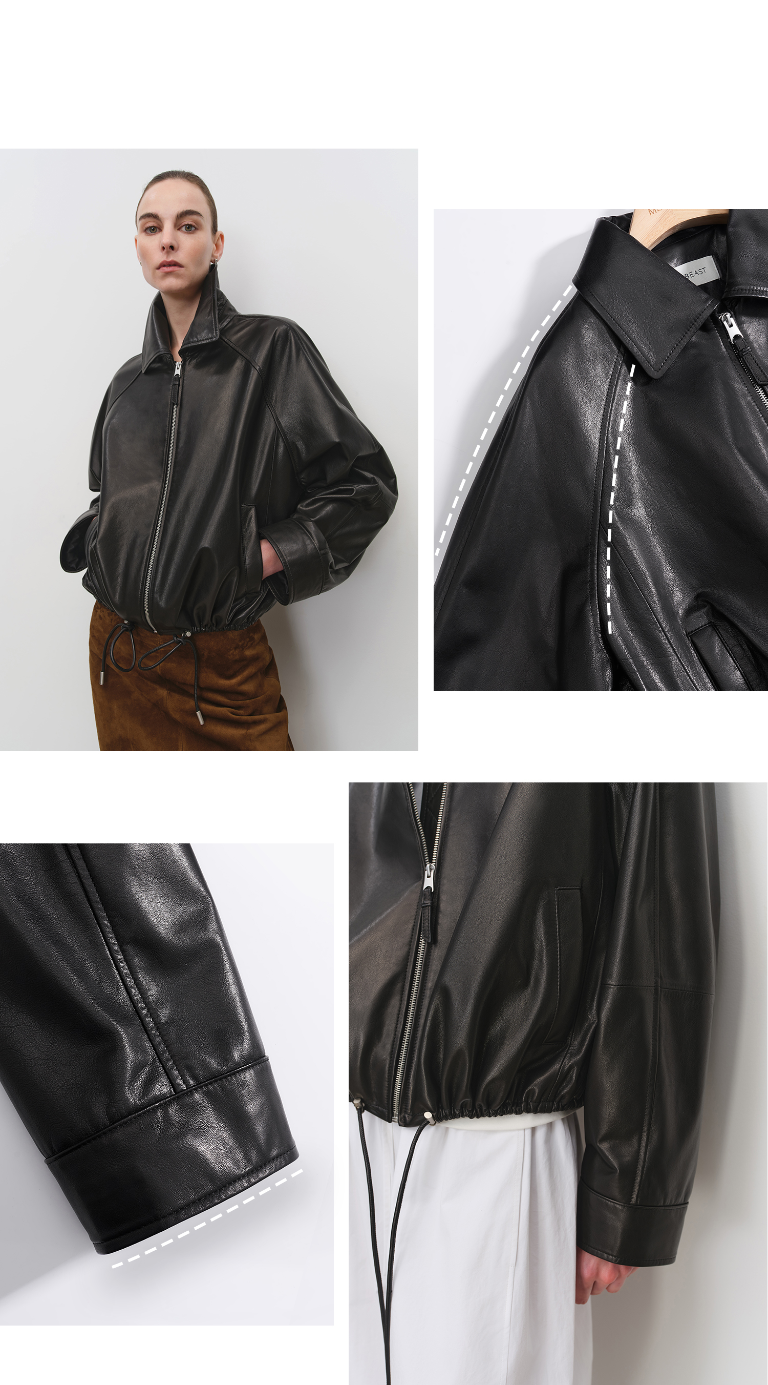 Msbeast Imported Dual-Version Sheepskin Lo*We Style Lapel Drawstring Silhouette Short Jacket Leather Jacket | Balloon Jacket