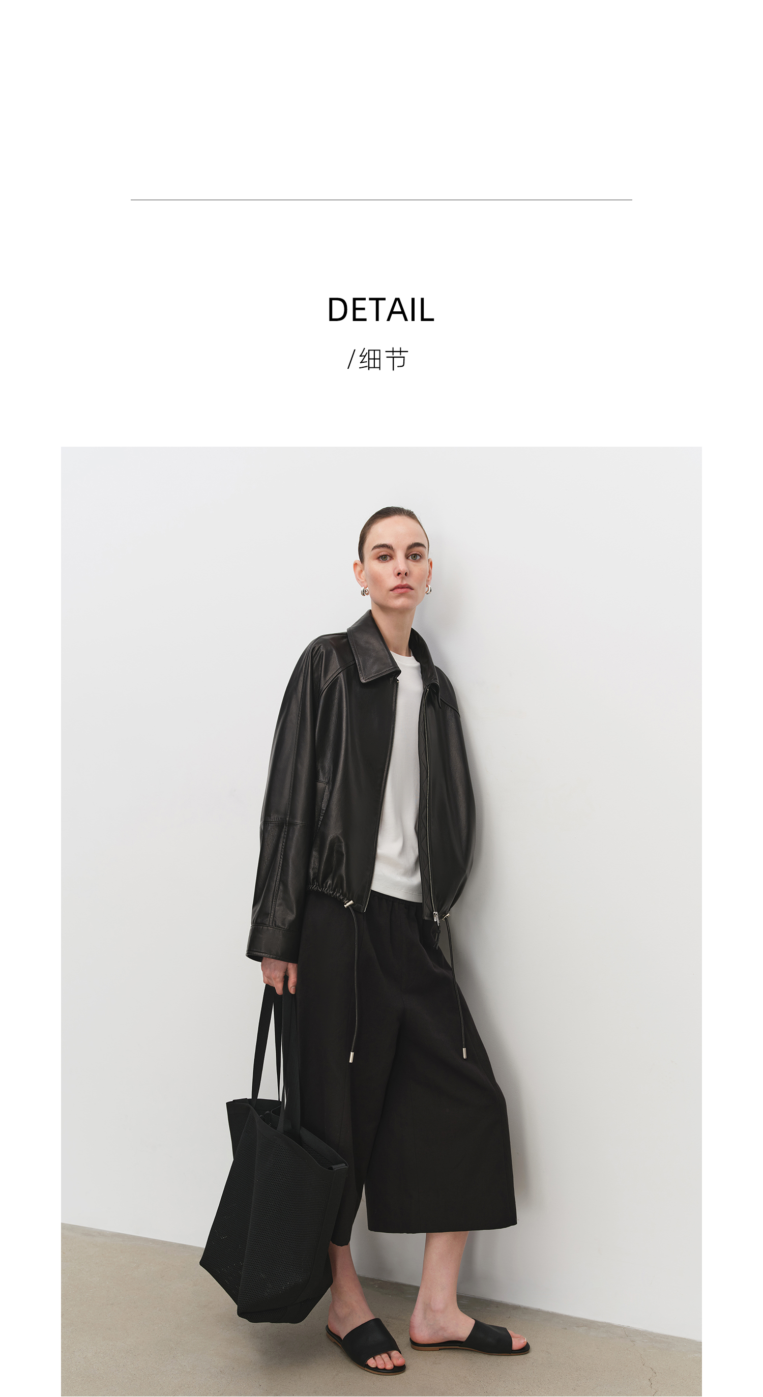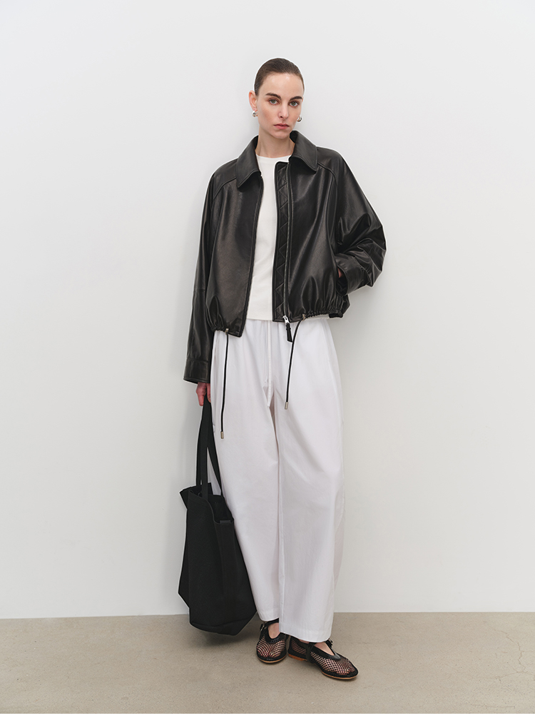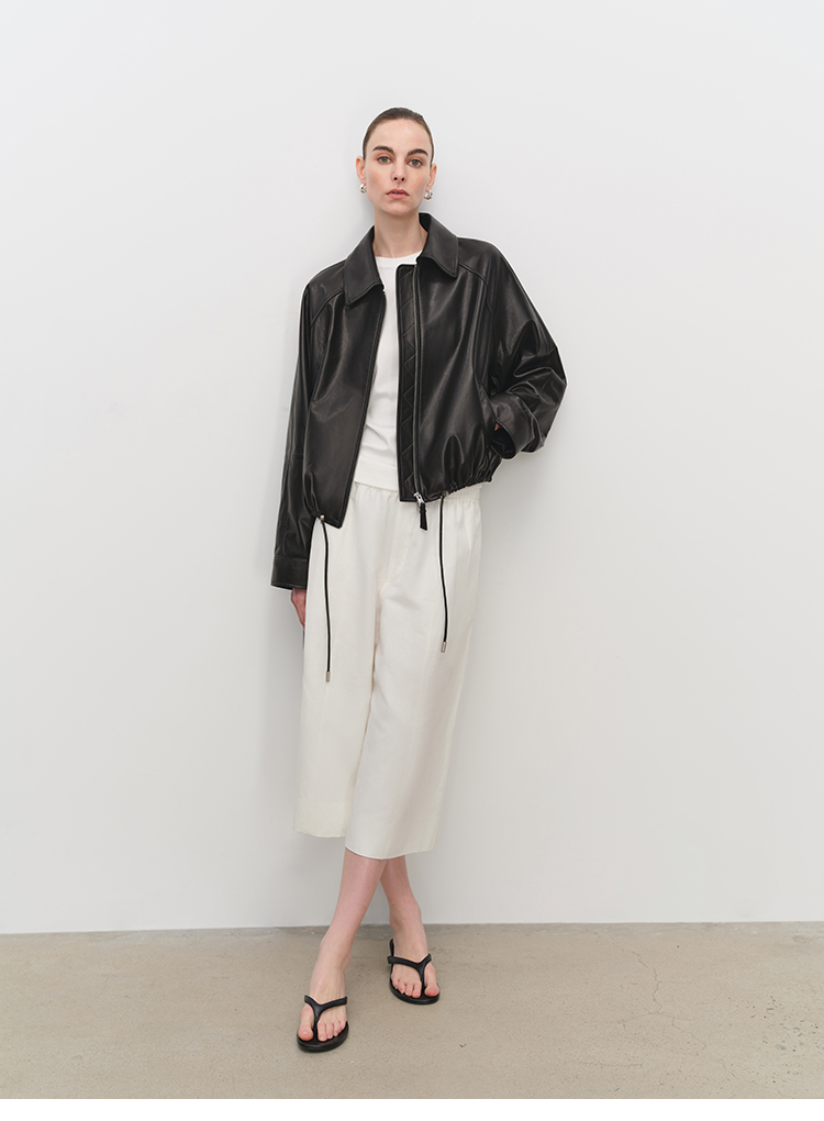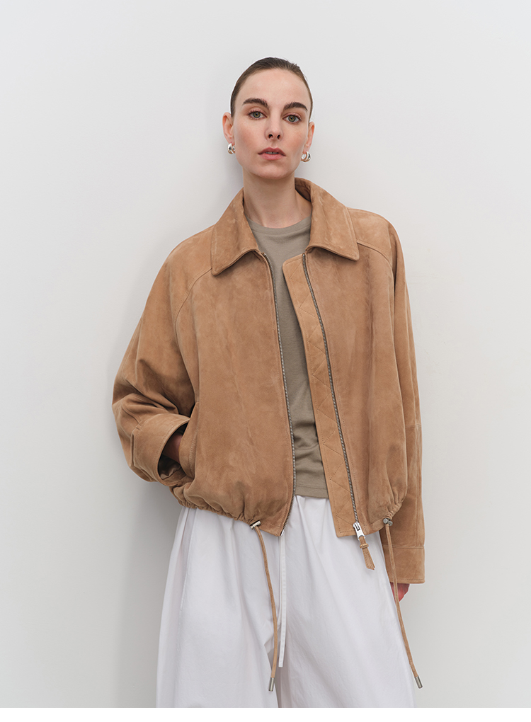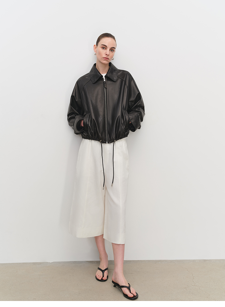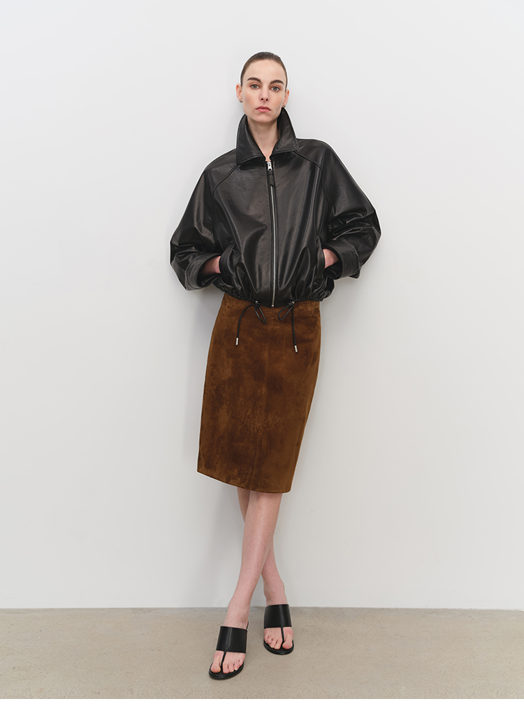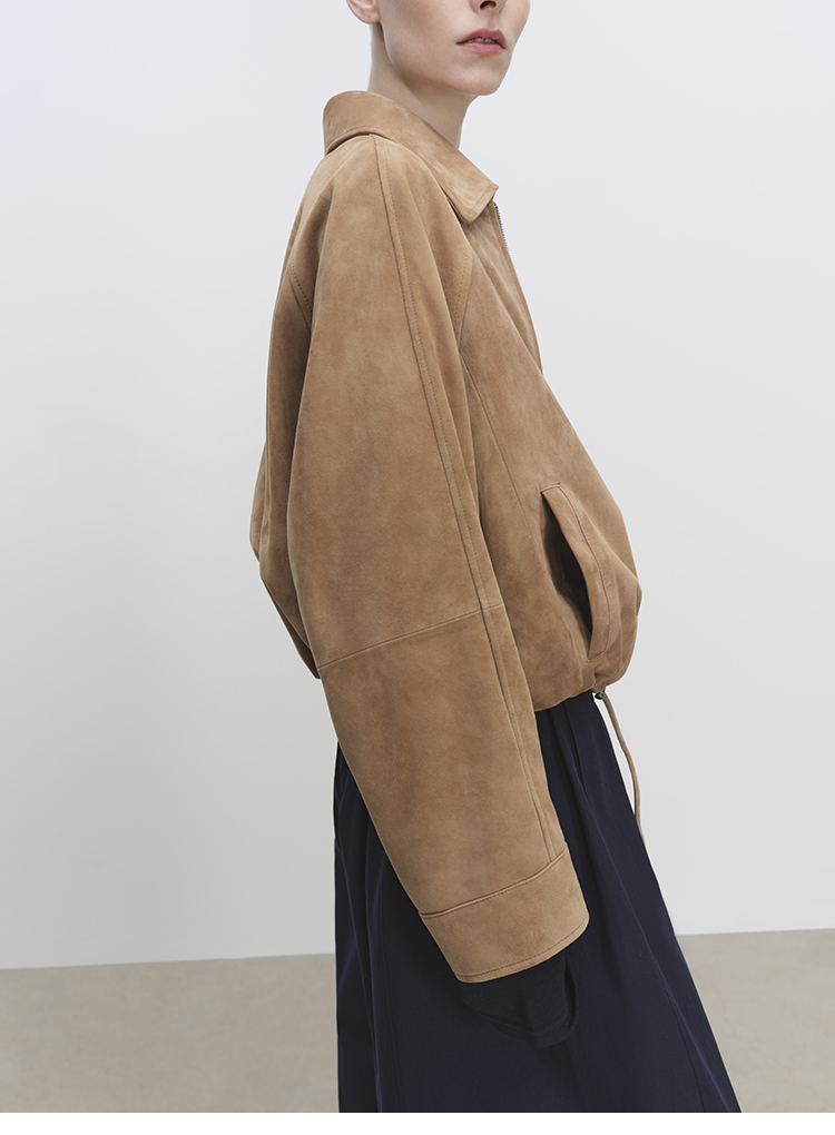 Msbeast Imported Dual-Version Sheepskin Lo*We Style Lapel Drawstring Silhouette Short Jacket Leather Jacket | Balloon Jacket