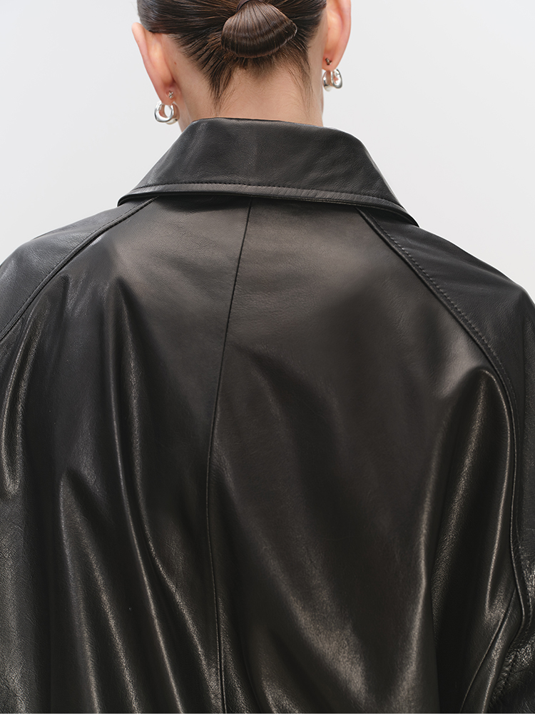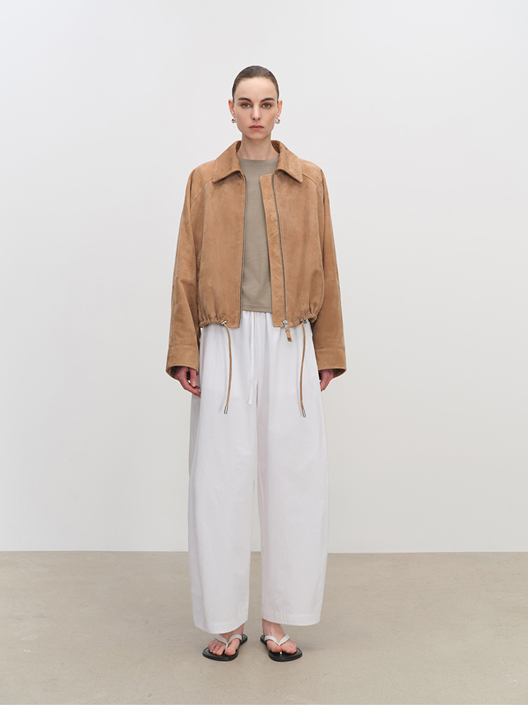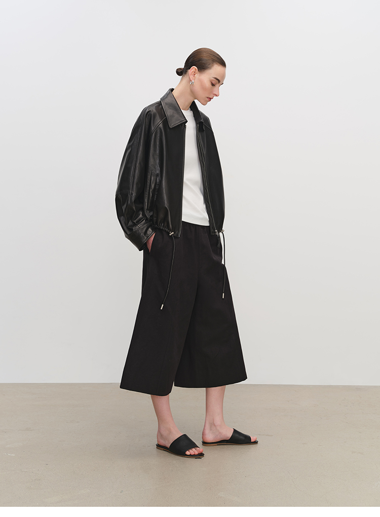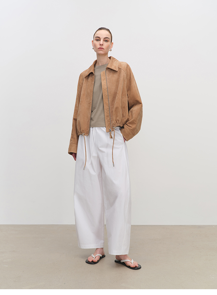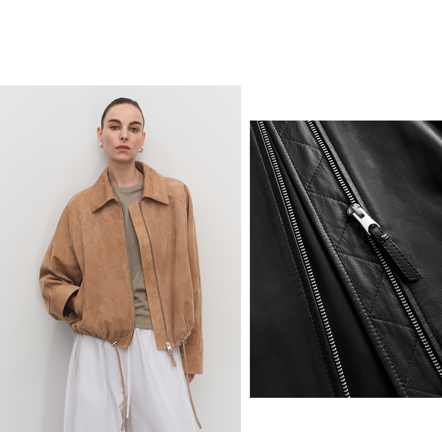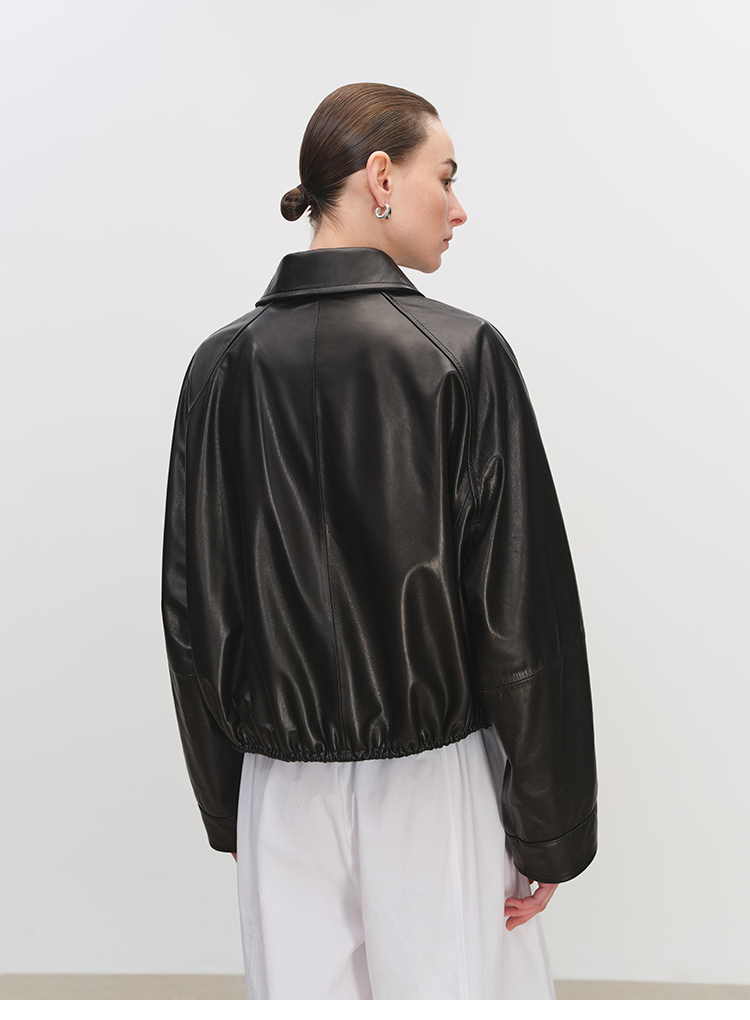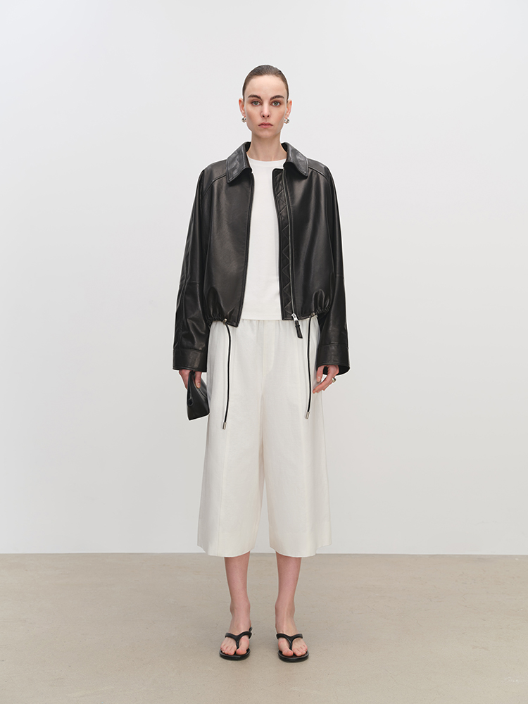Msbeast Imported Dual-Version Sheepskin Lo*We Style Lapel Drawstring Silhouette Short Jacket Leather Jacket | Balloon Jacket
