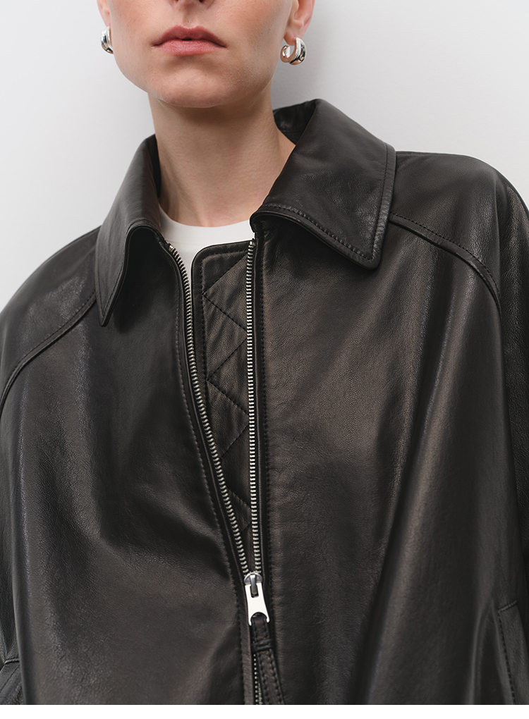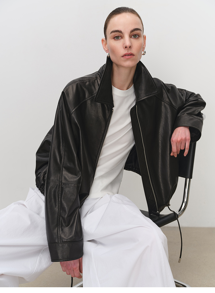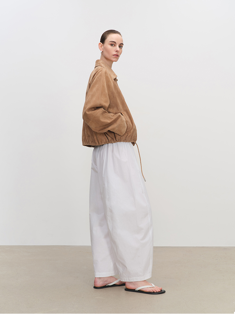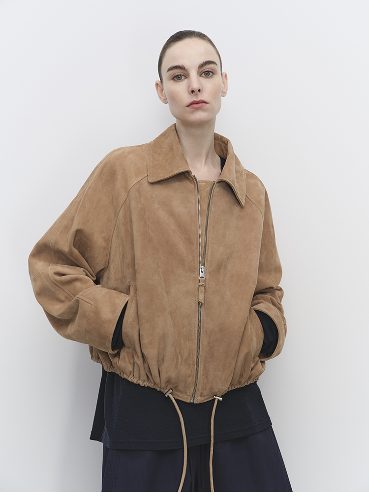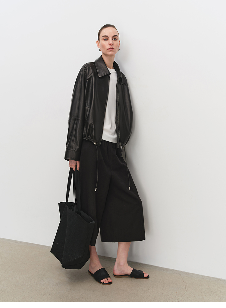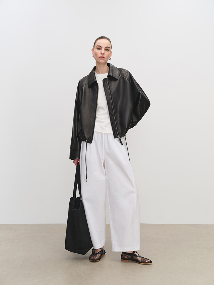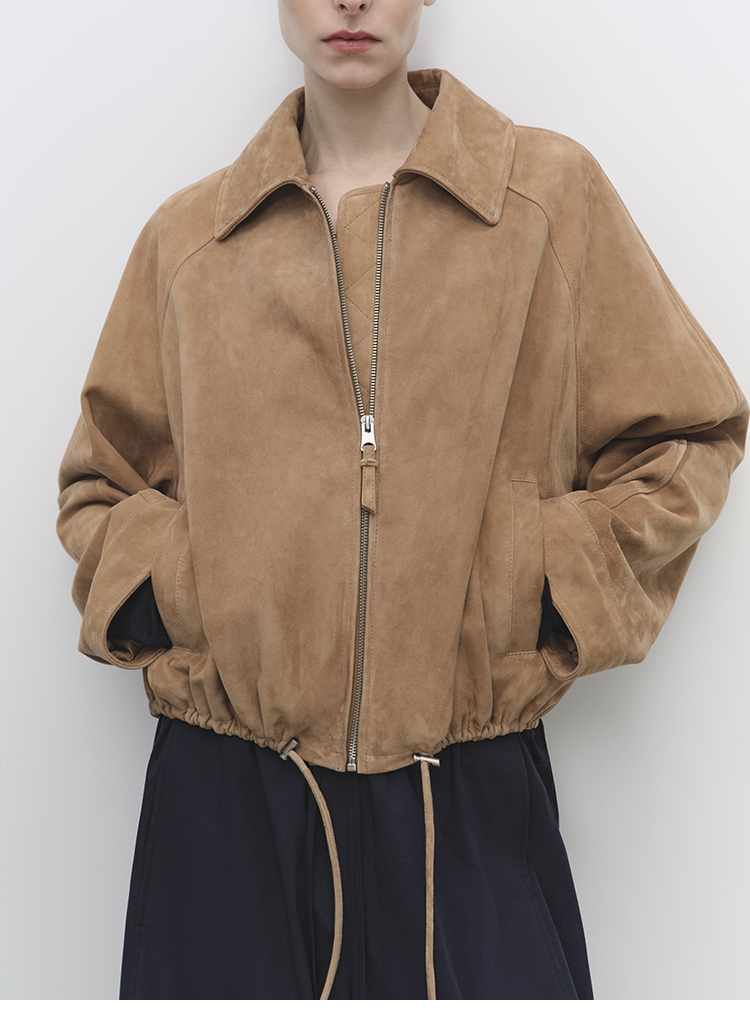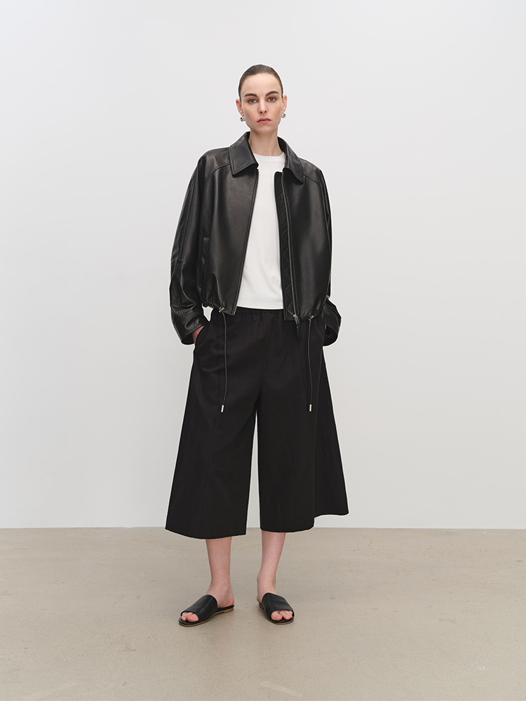 Msbeast Imported Dual-Version Sheepskin Lo*We Style Lapel Drawstring Silhouette Short Jacket Leather Jacket | Balloon Jacket