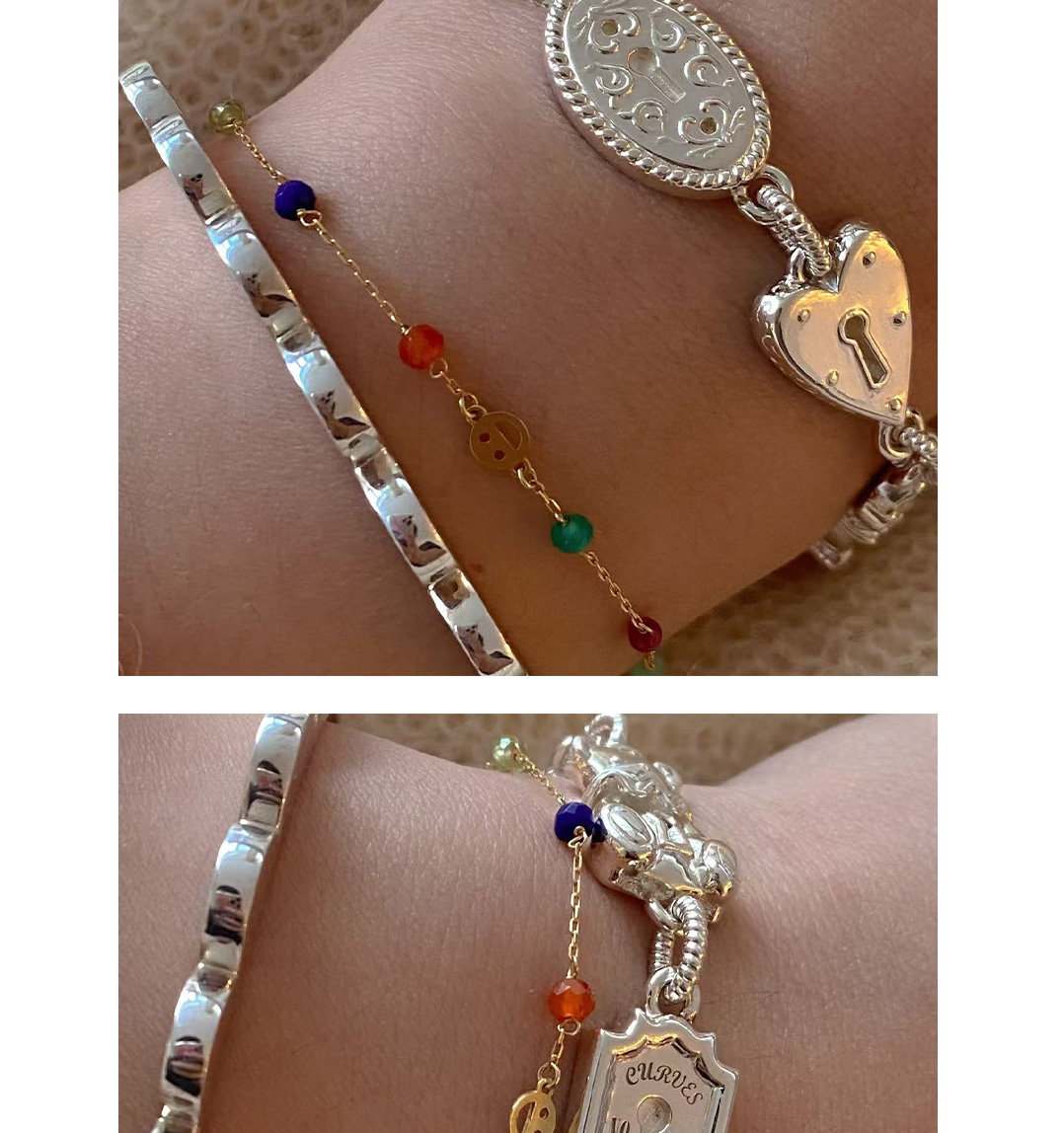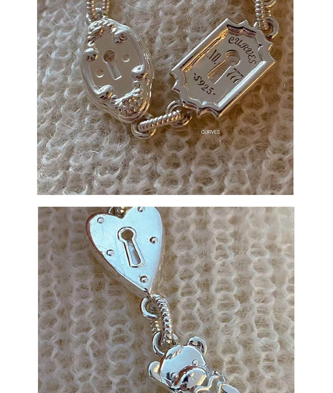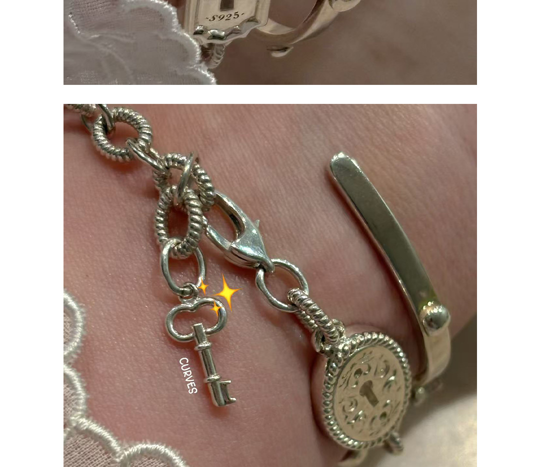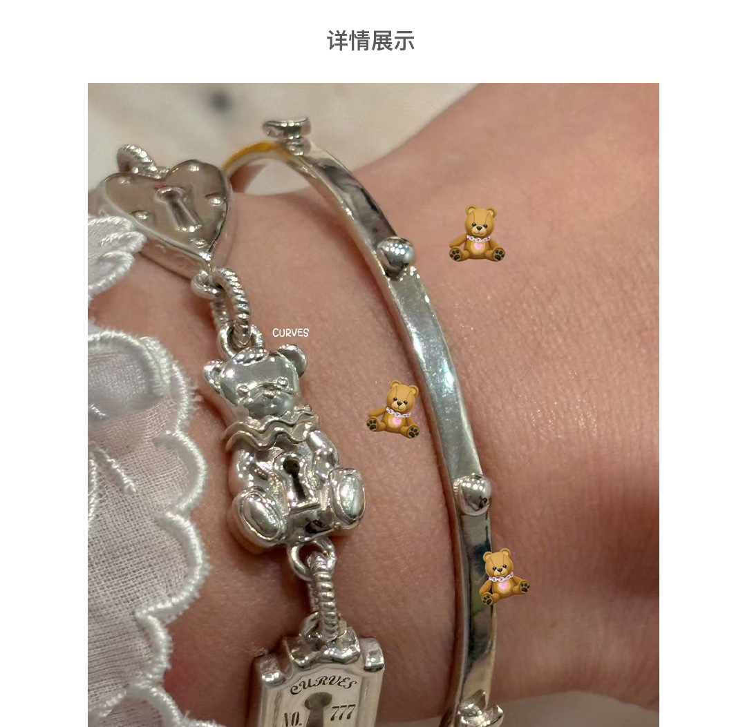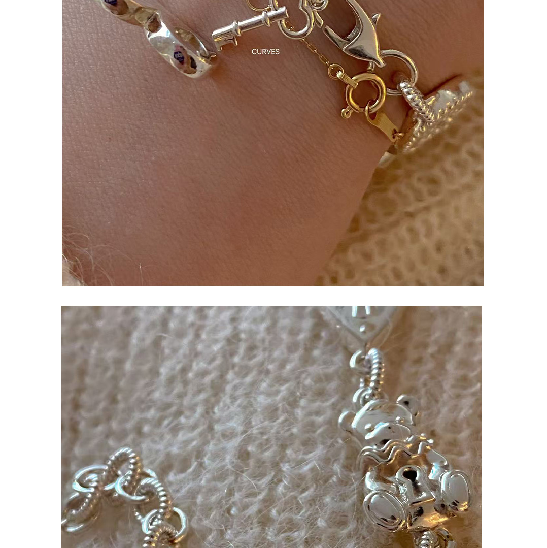 Curves Original Niche Gorgeous and Cute Heavy-Duty Bear Key Lock S925 Sterling Silver Bracelet