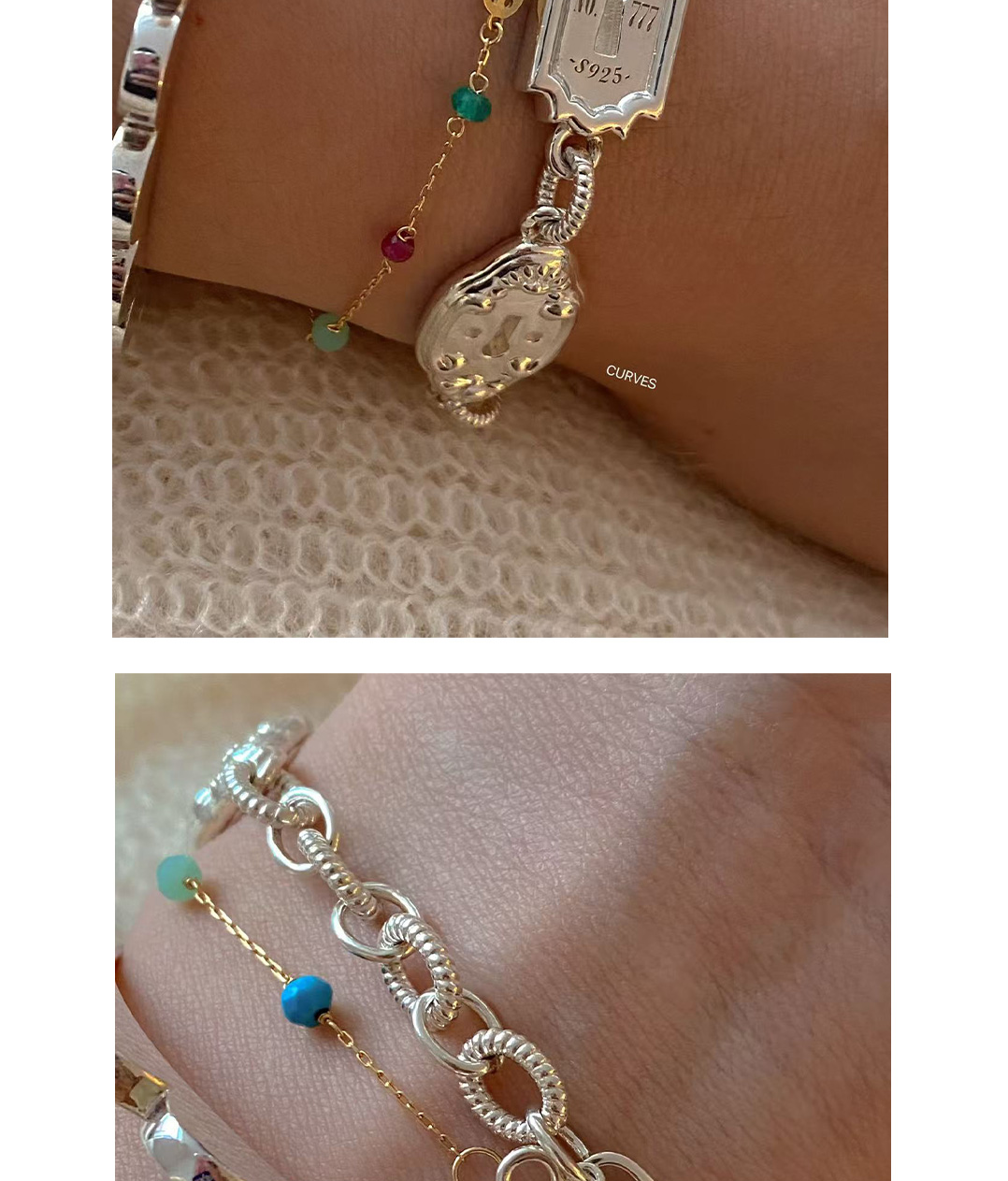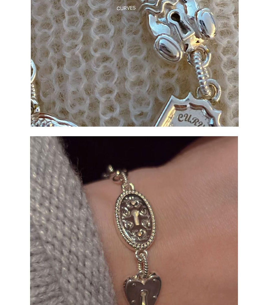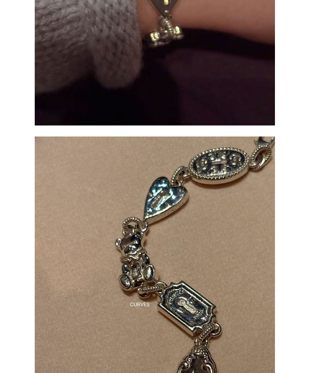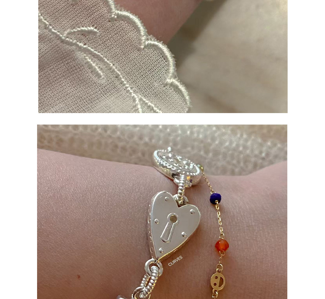 Curves Original Niche Gorgeous and Cute Heavy-Duty Bear Key Lock S925 Sterling Silver Bracelet