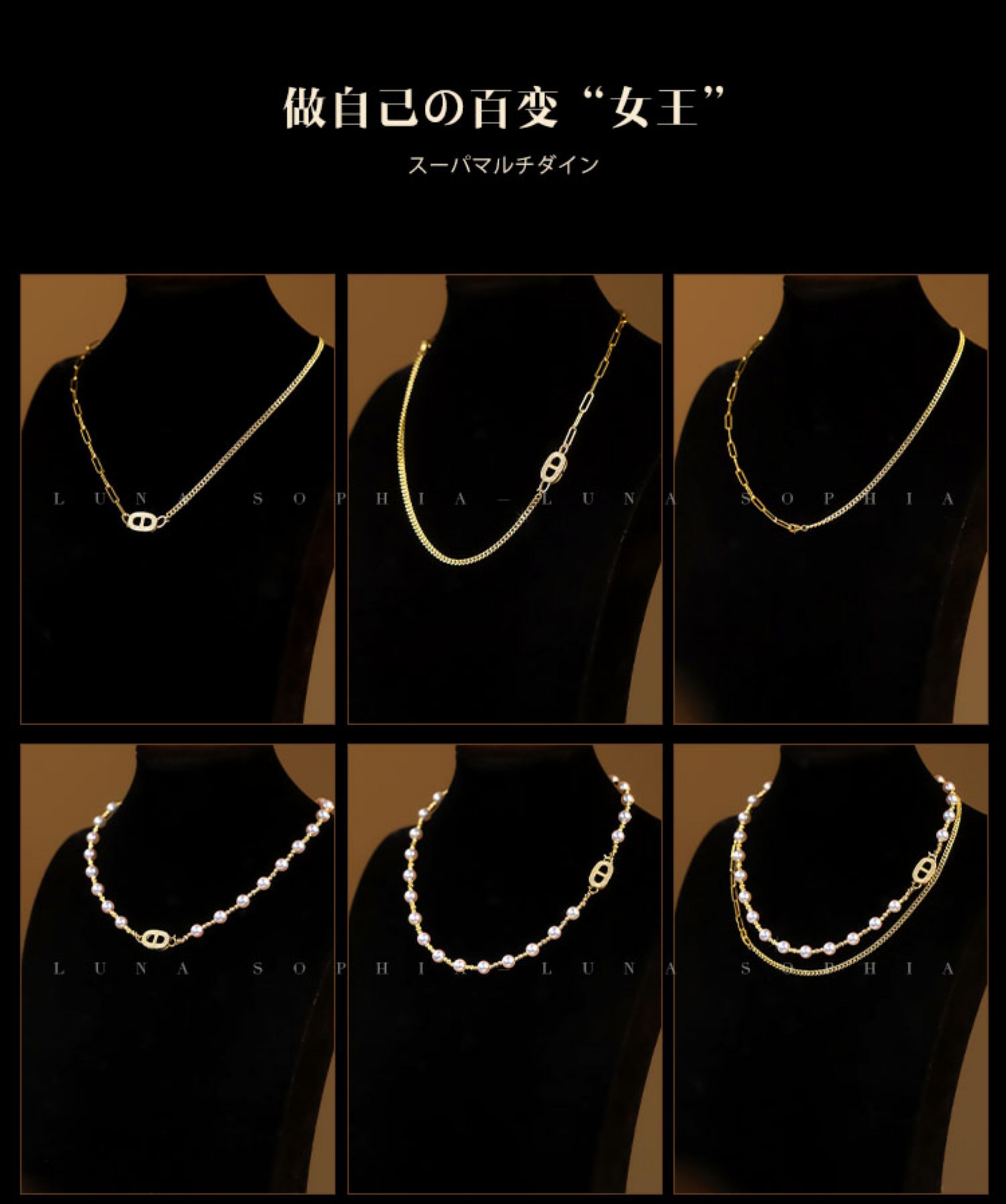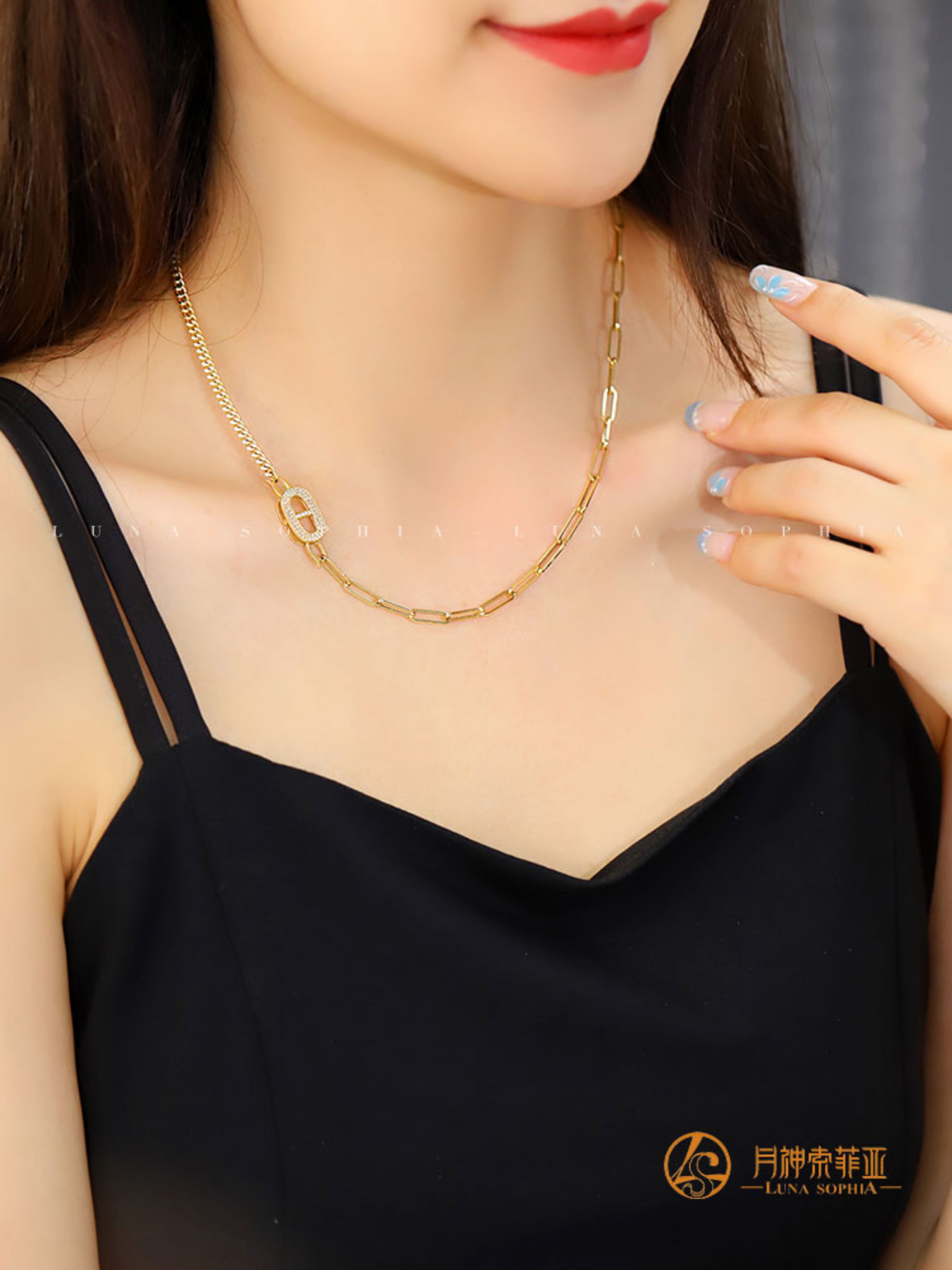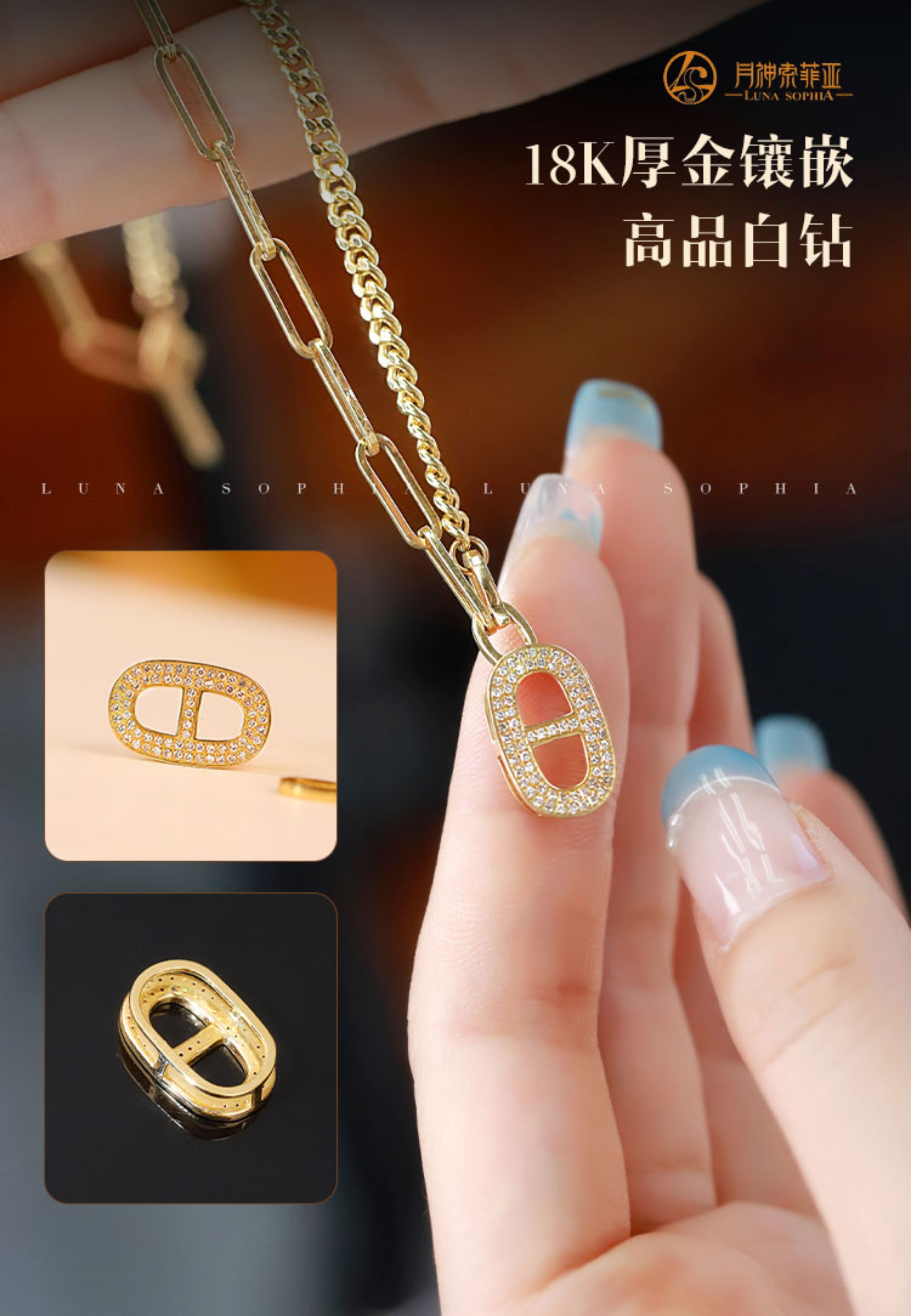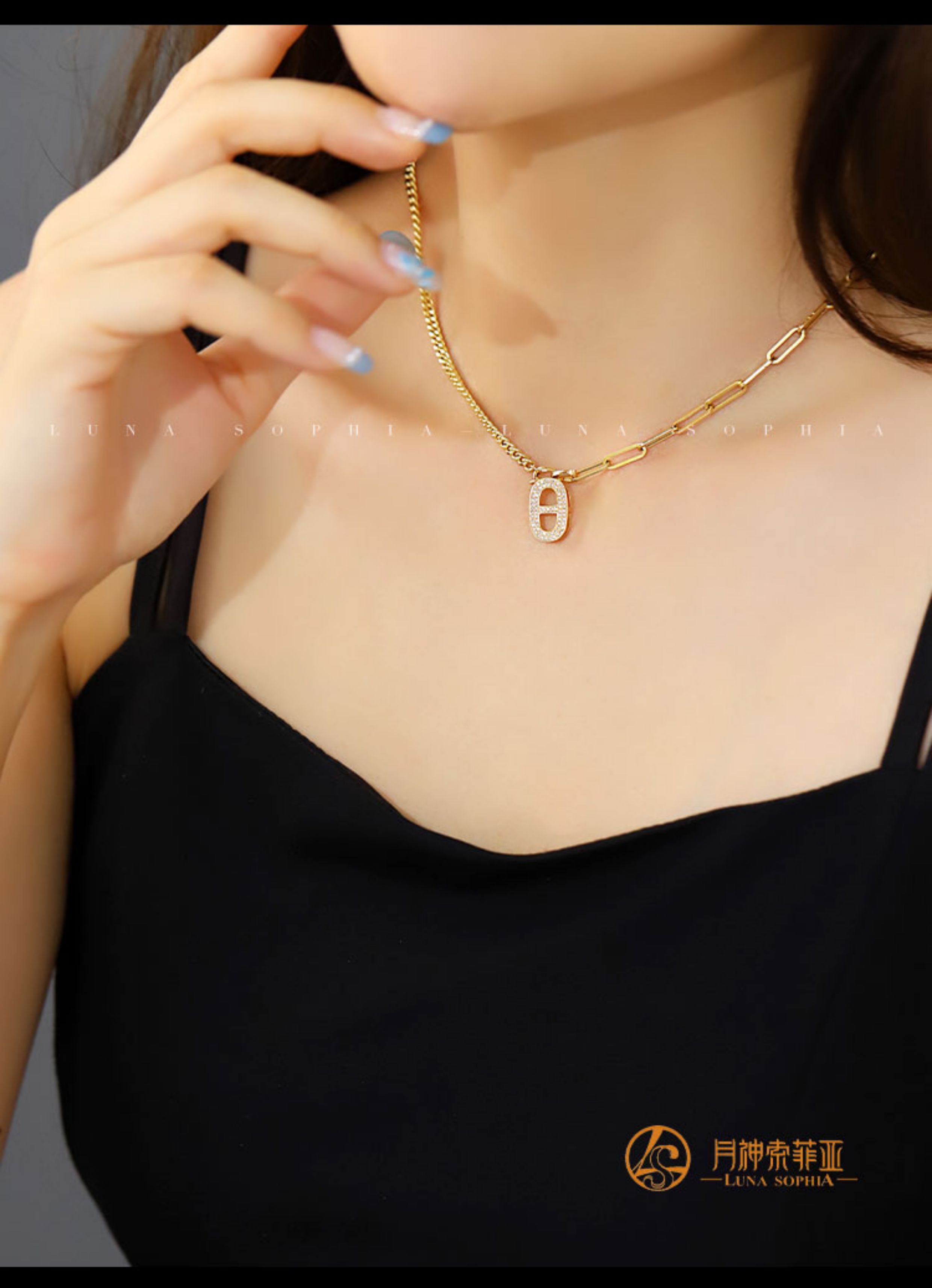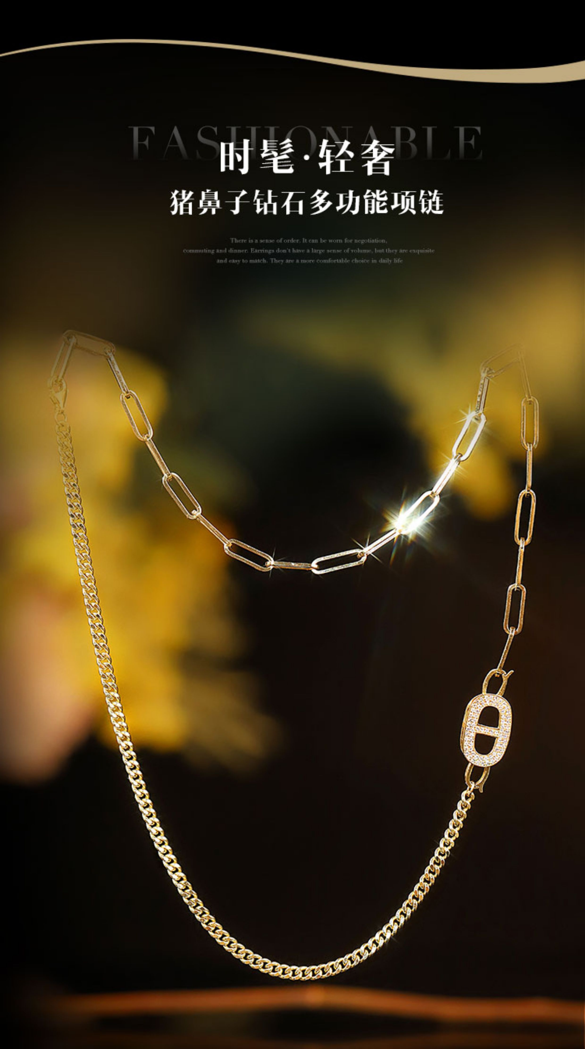 Luna Sophia Pig Nose Multifunctional Necklace Cuban Chain O-Chain Versatile Wearing Styles Classic and Versatile Jewelry