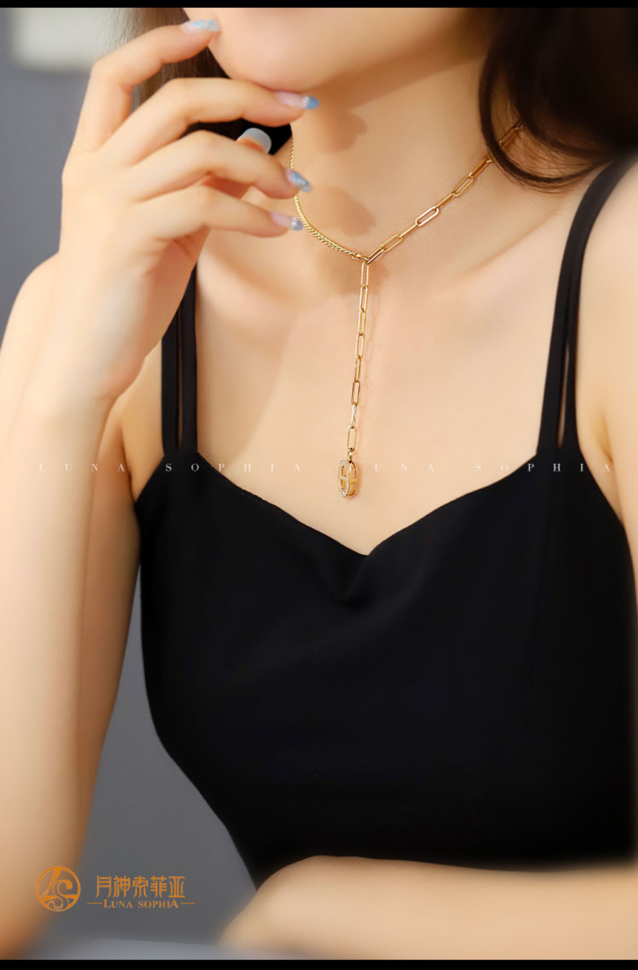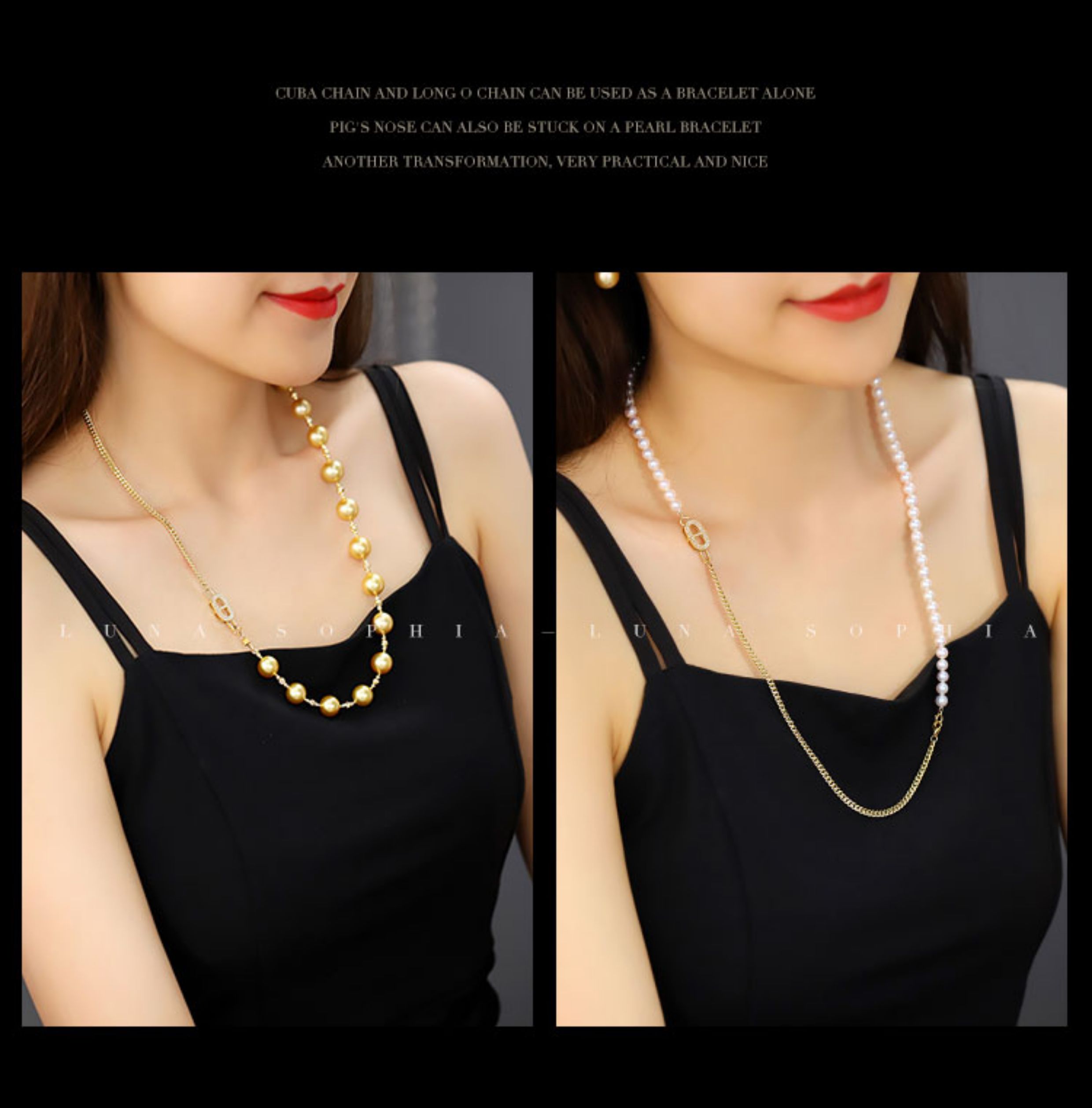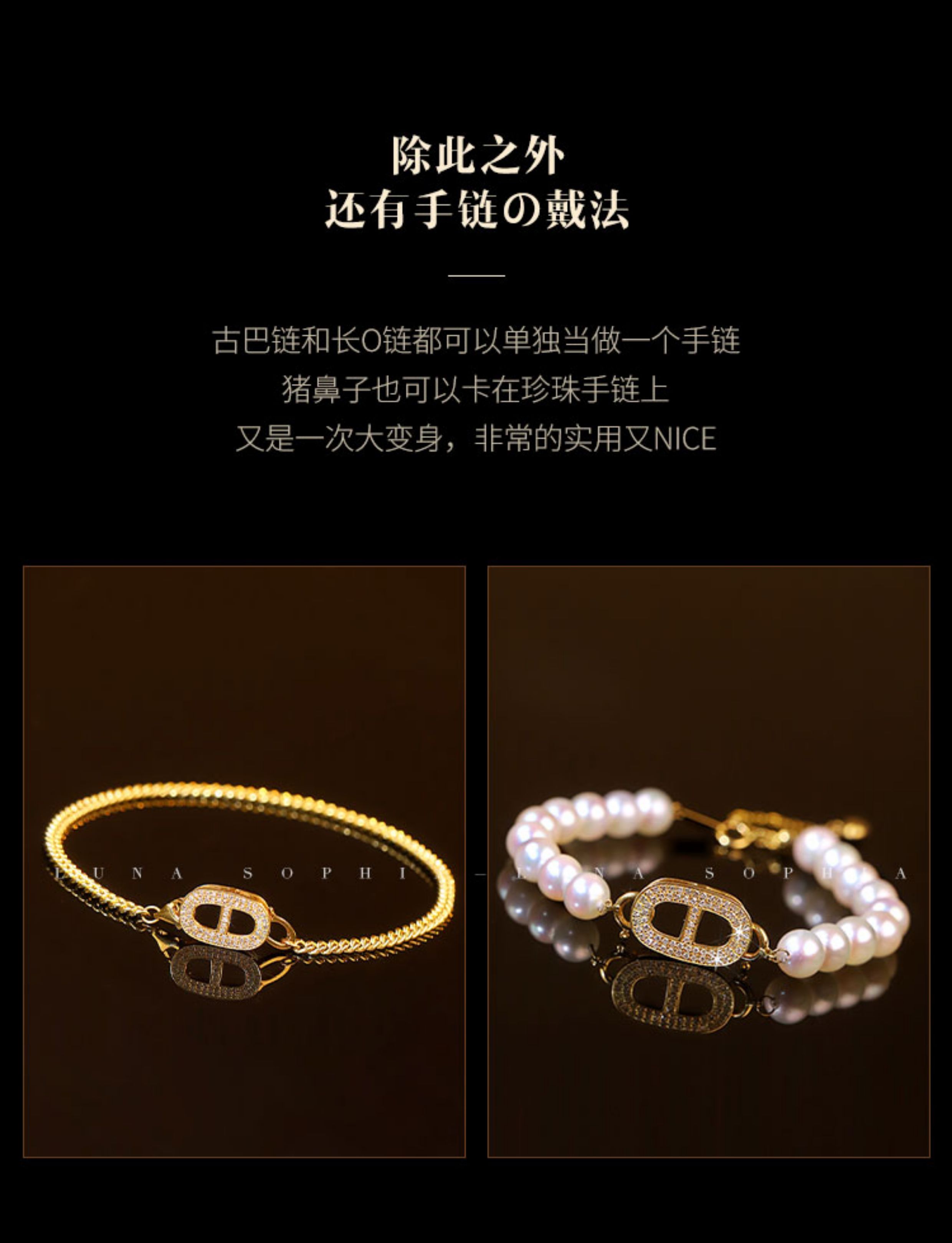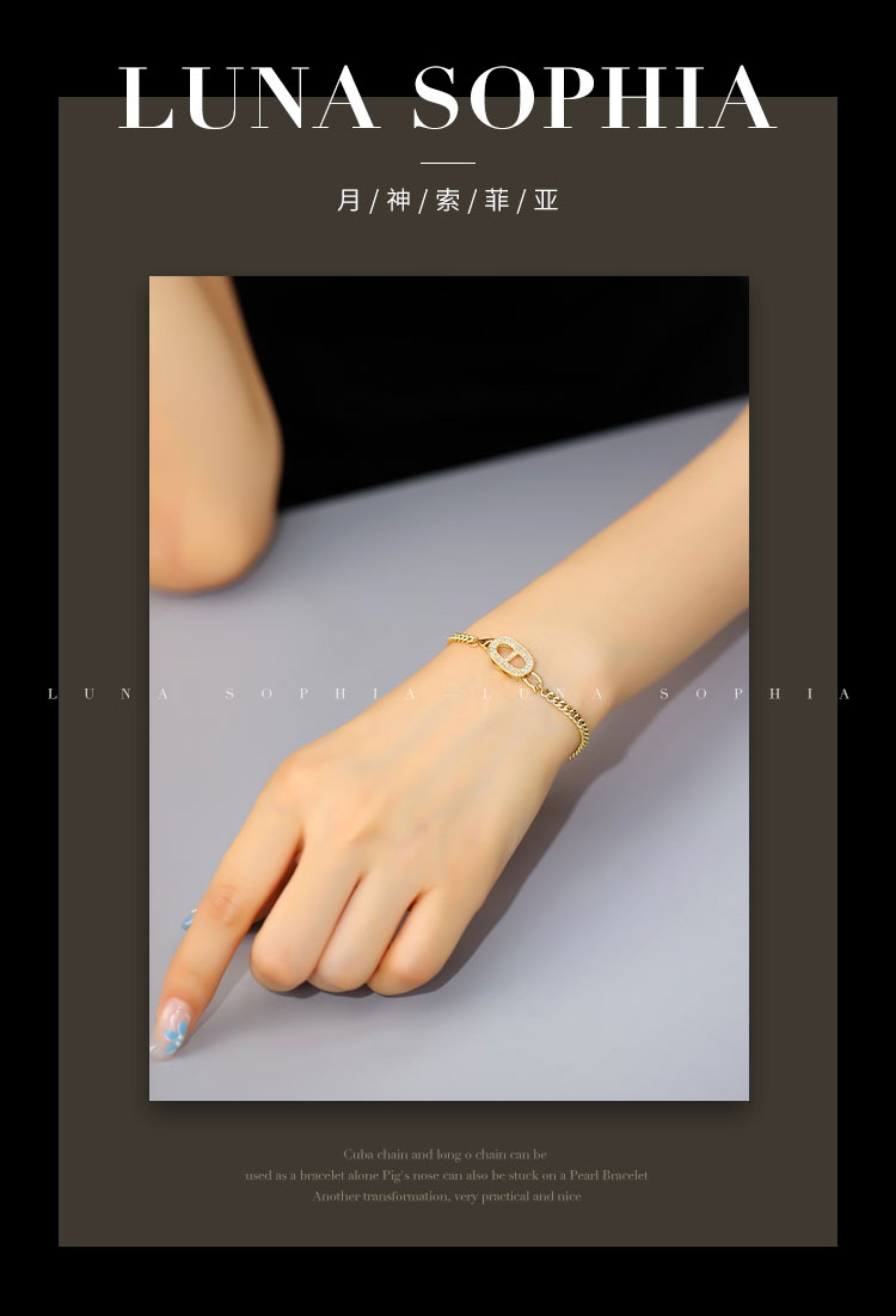 Luna Sophia Pig Nose Multifunctional Necklace Cuban Chain O-Chain Versatile Wearing Styles Classic and Versatile Jewelry