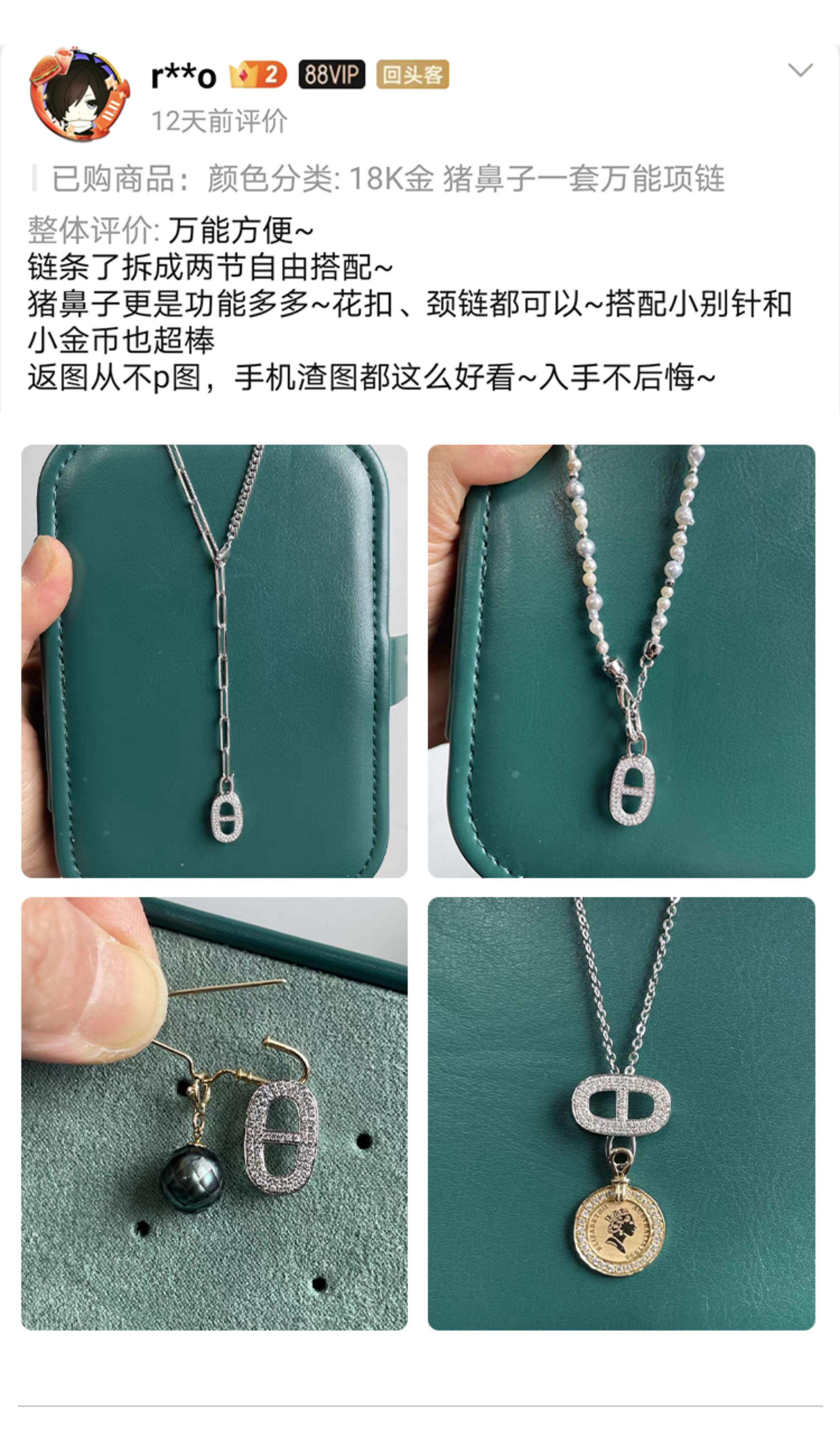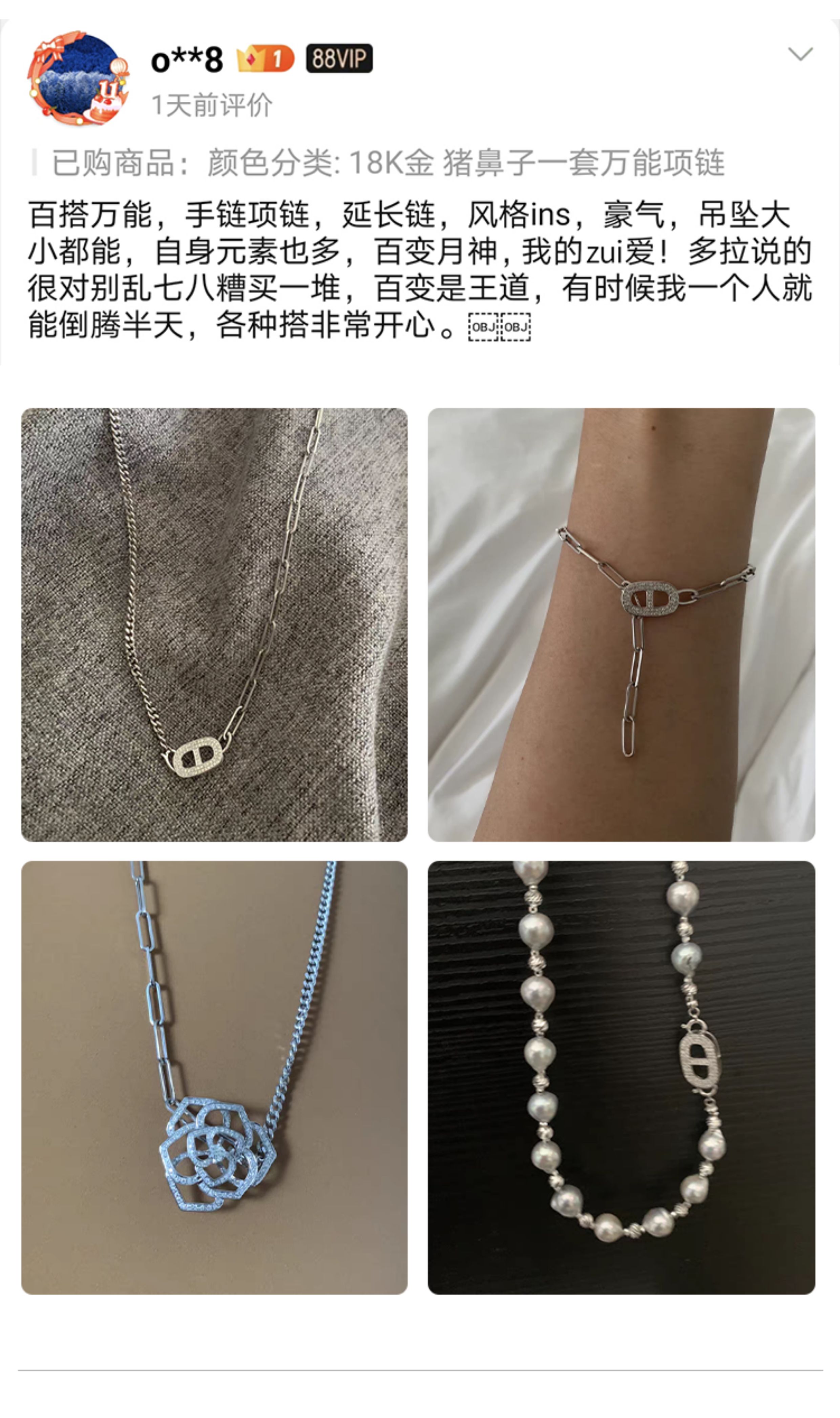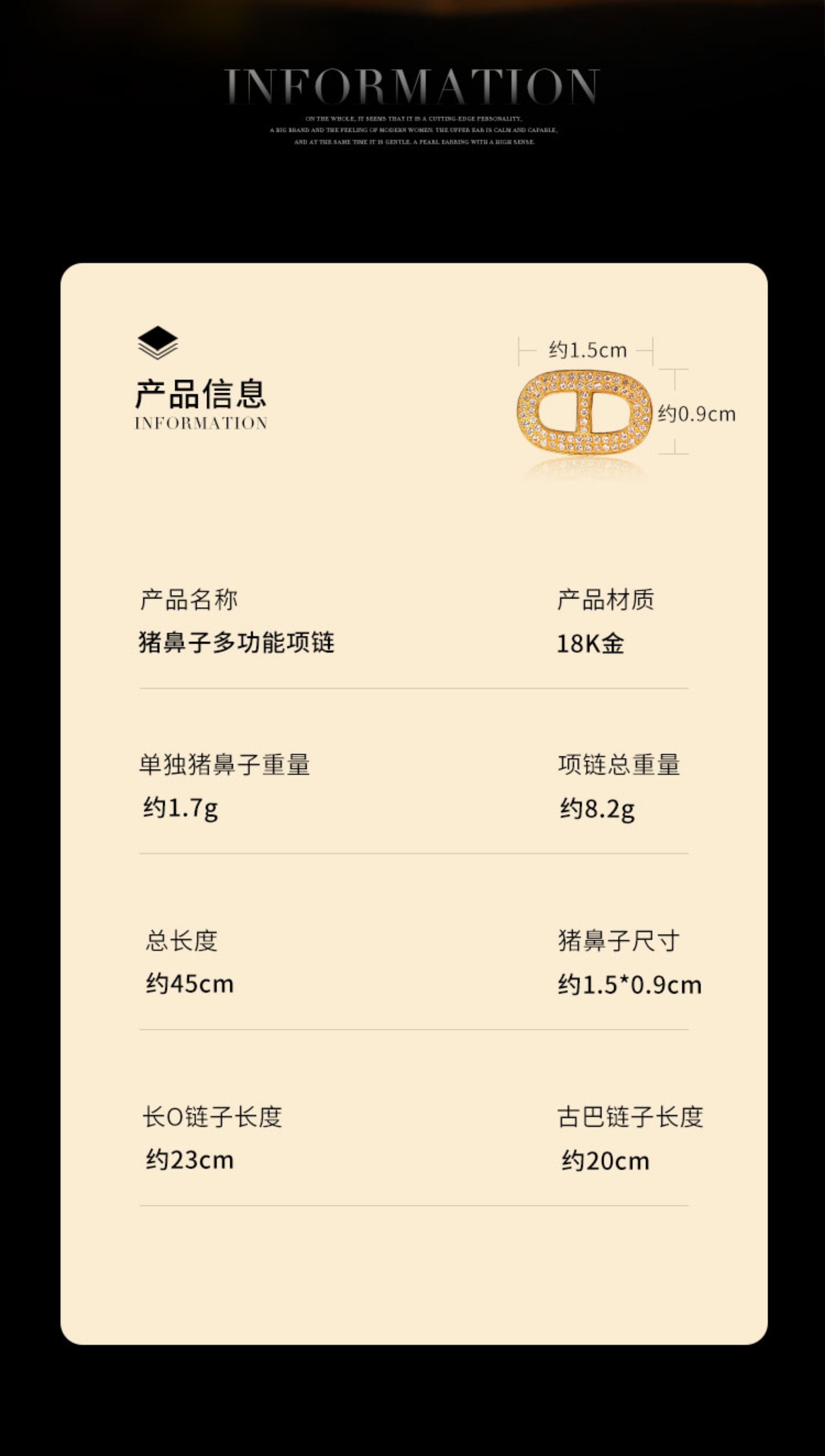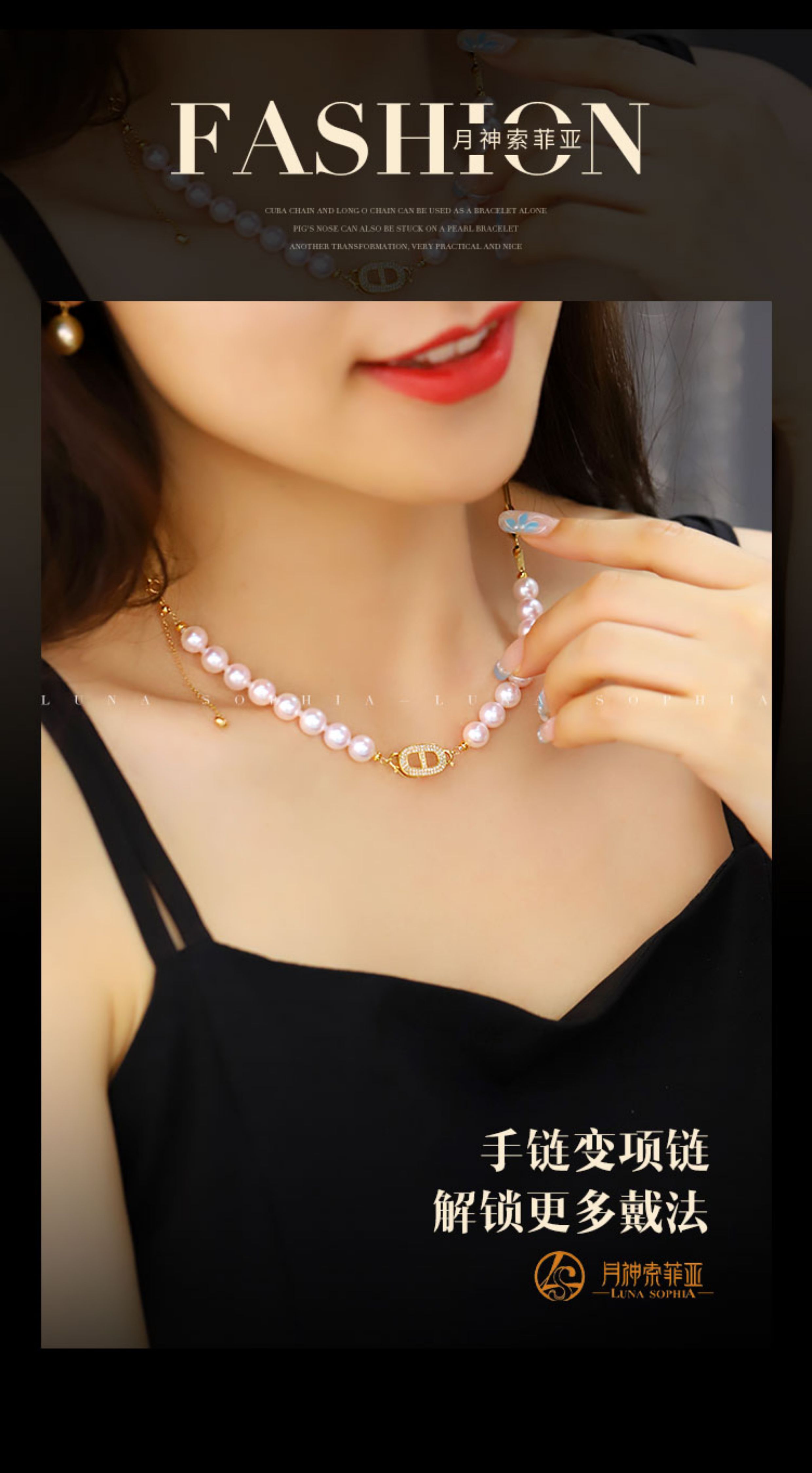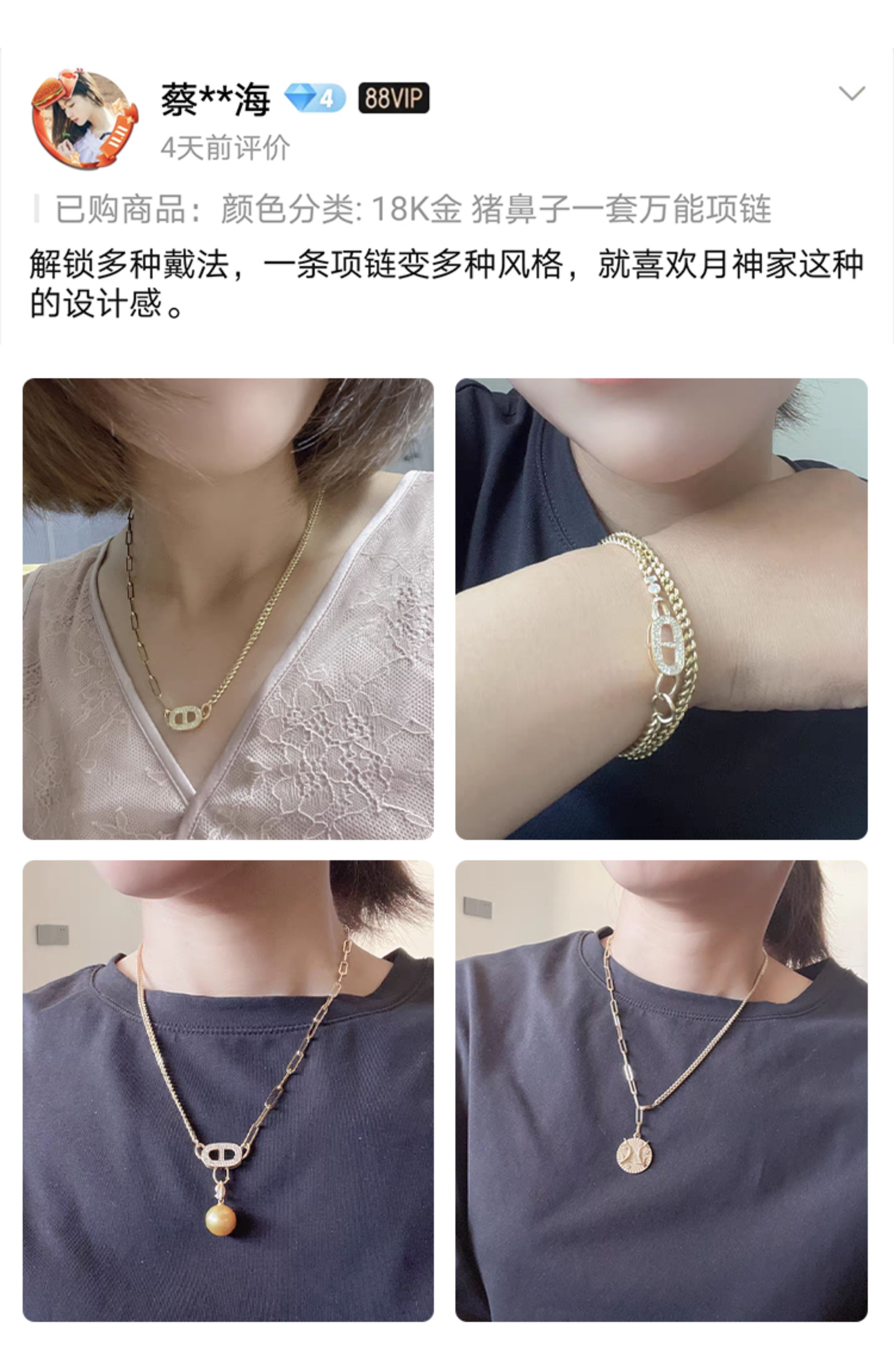 Luna Sophia Pig Nose Multifunctional Necklace Cuban Chain O-Chain Versatile Wearing Styles Classic and Versatile Jewelry
