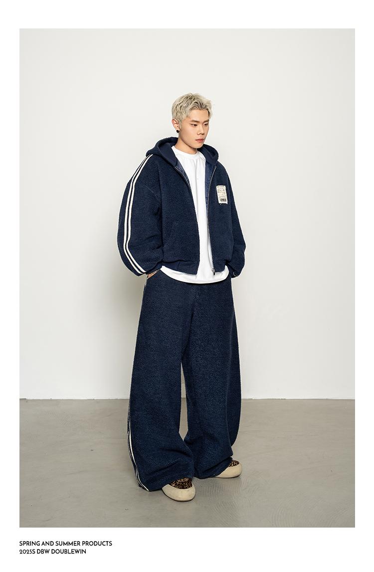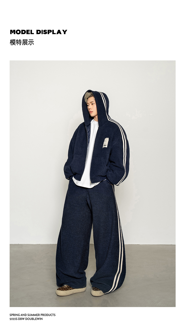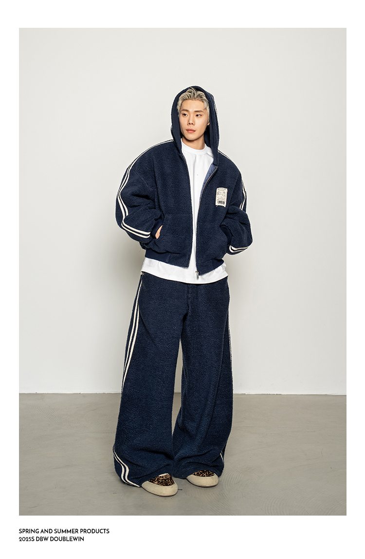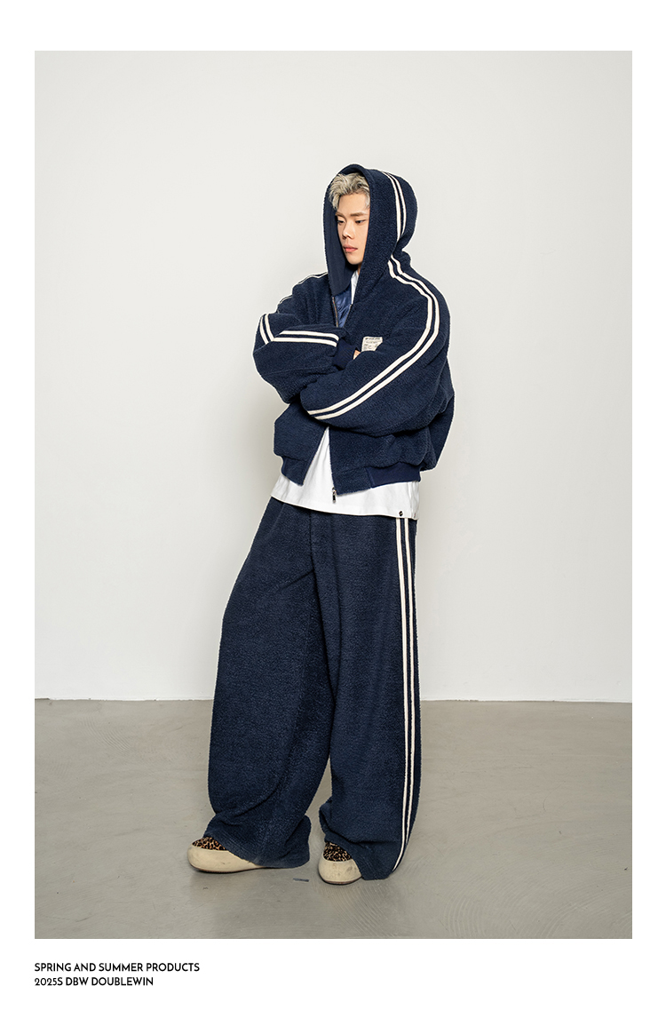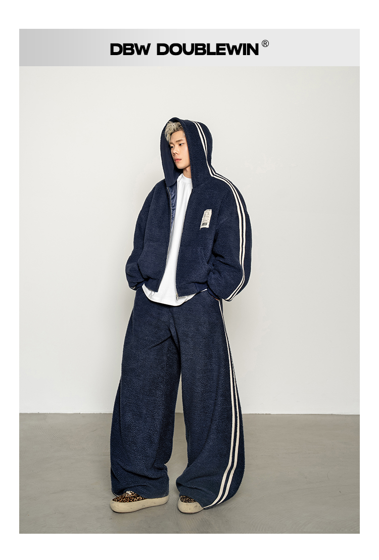 Dbw Doublewin Color-Blocked Fleece Cotton Sweatshirt Jacket Casual Sweatpants Loose Sports Suit Winter