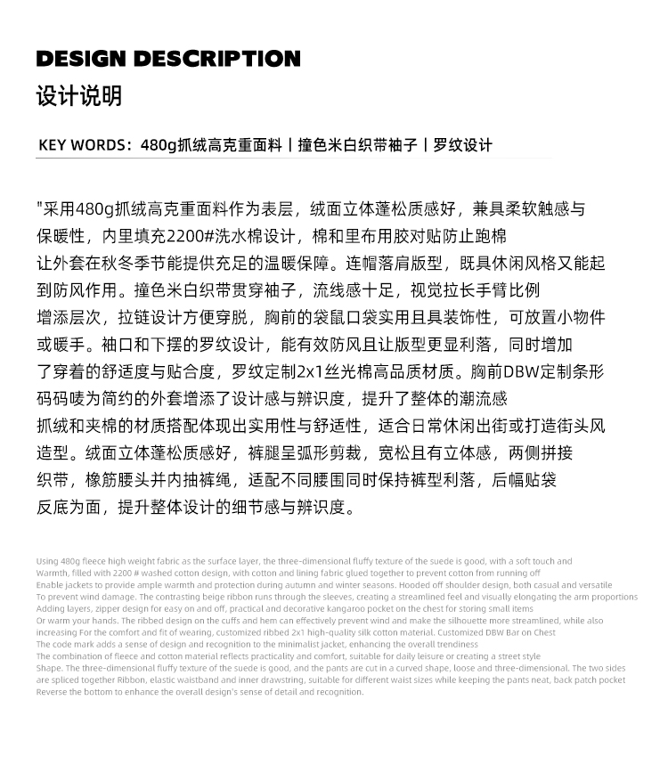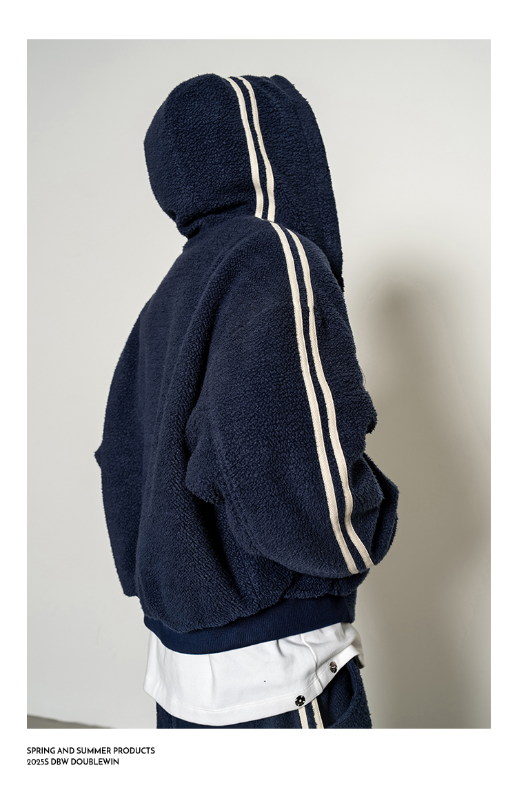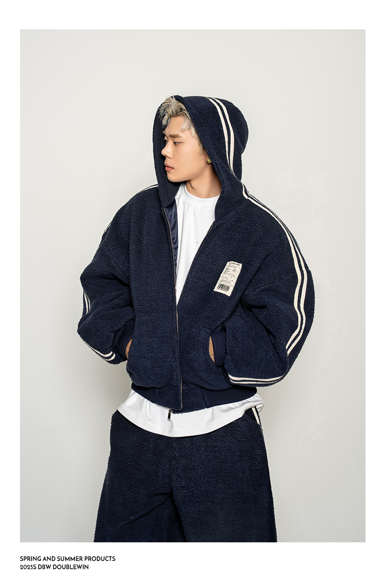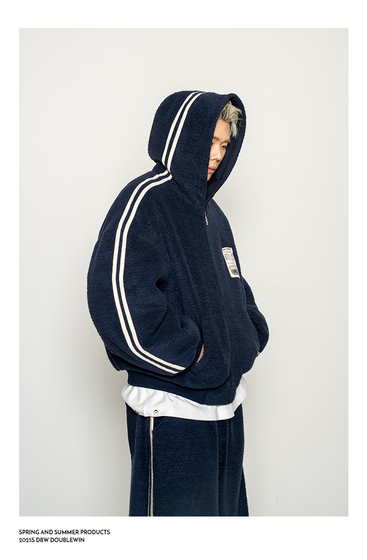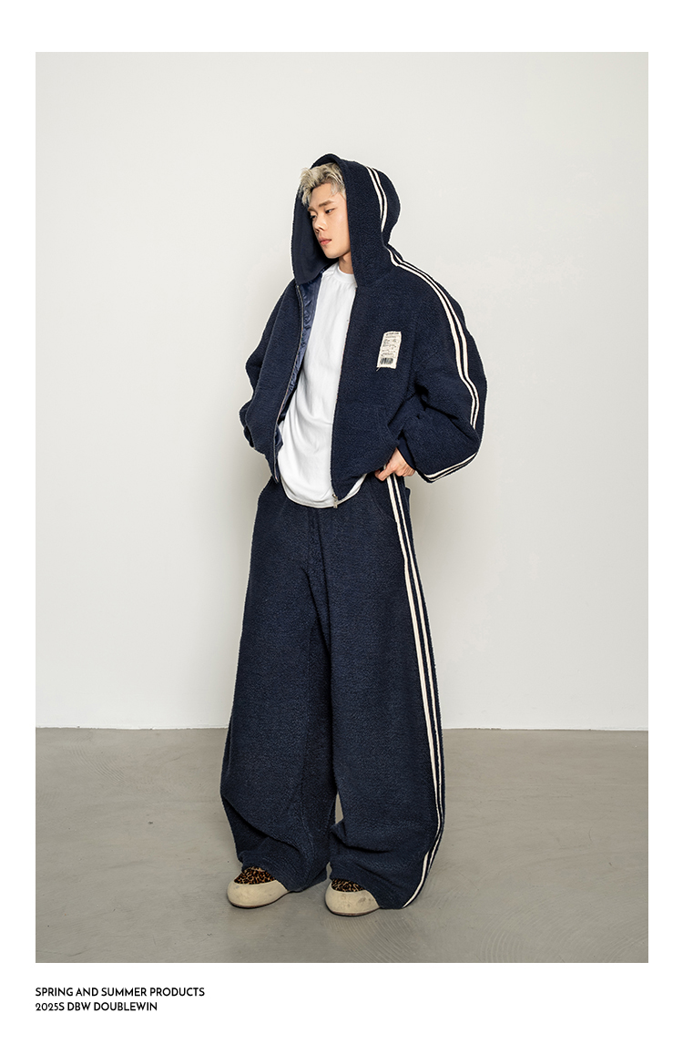 Dbw Doublewin Color-Blocked Fleece Cotton Sweatshirt Jacket Casual Sweatpants Loose Sports Suit Winter
