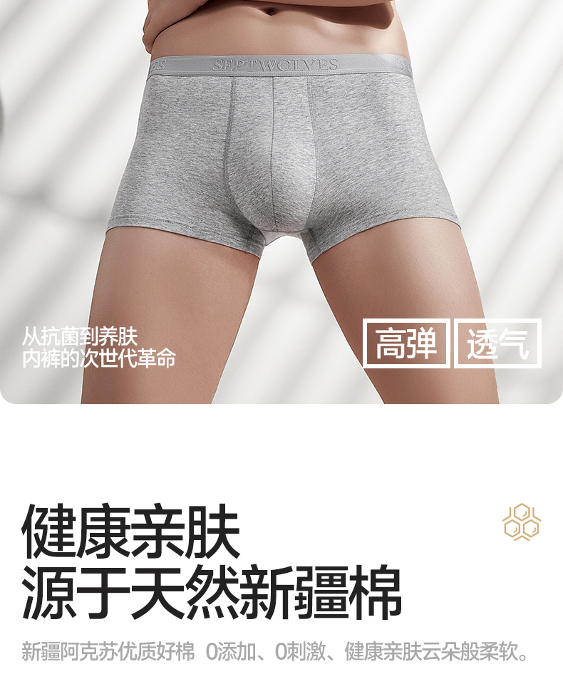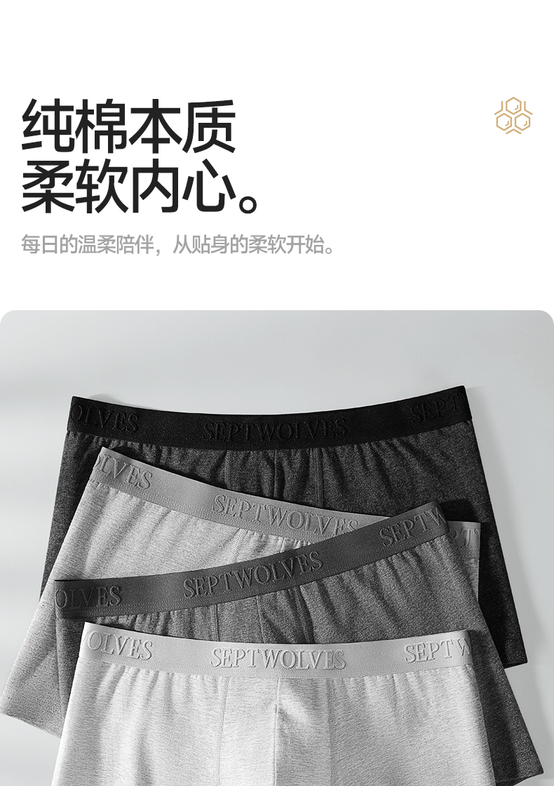 Septwolves Men's Underwear, Boys' Pure Cotton Boxer Shorts, High-End Brand Breathable Boxer Briefs, Men's Style 2025 New Model
