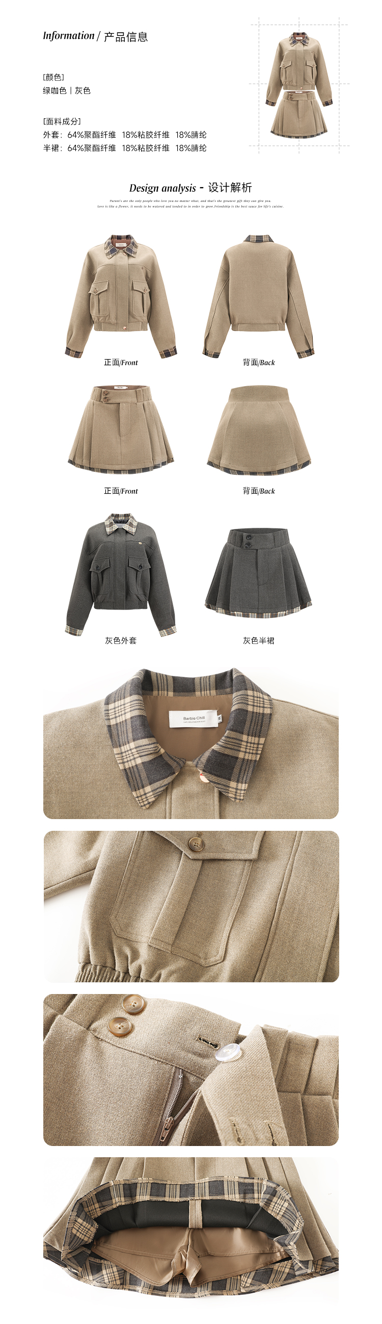 Barbchill Woolen Suit Skirt Miu Style Short Jacket Women's Winter Preppy Style Skirt Christmas and New Year Outfit