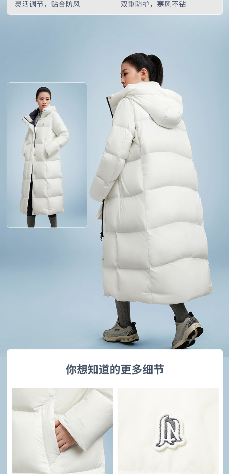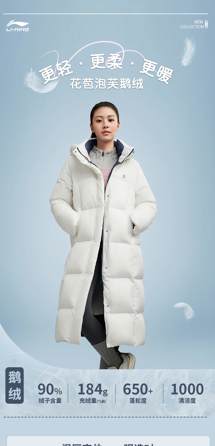 Li-Ning Hot Pot down Jacket | Winter 2025 New Long Style Women's Hooded Goose down Warm Sports Top
