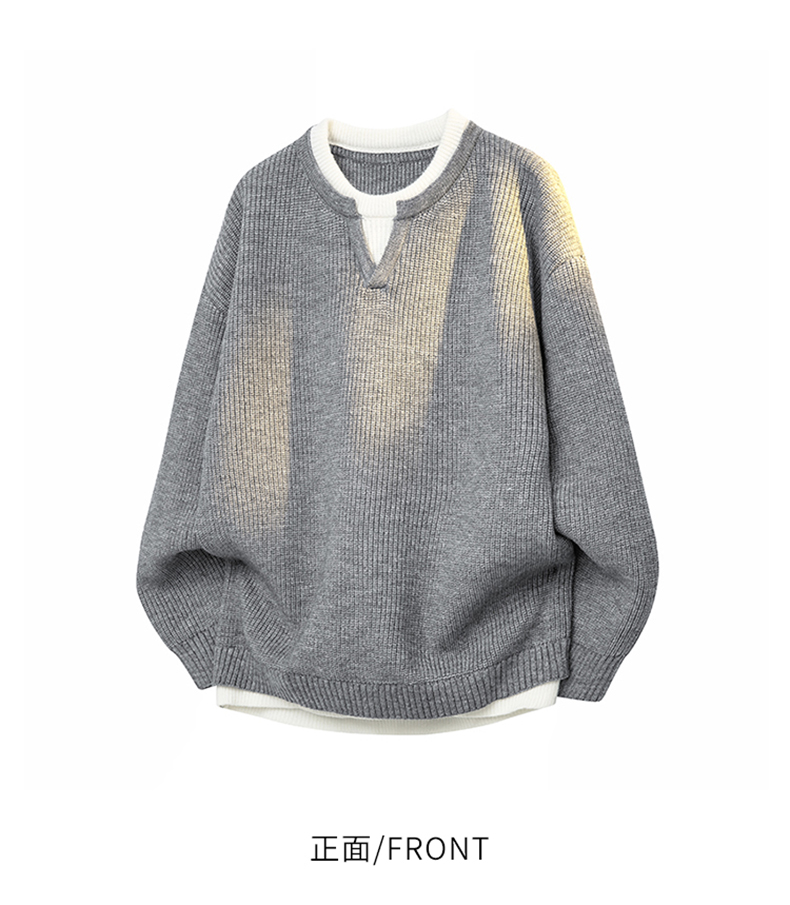 Playboy Fake Two-Piece Knit Sweater Men's Spring and Autumn Sweatshirt Loose Straight-Leg Pants Casual Suit Men K