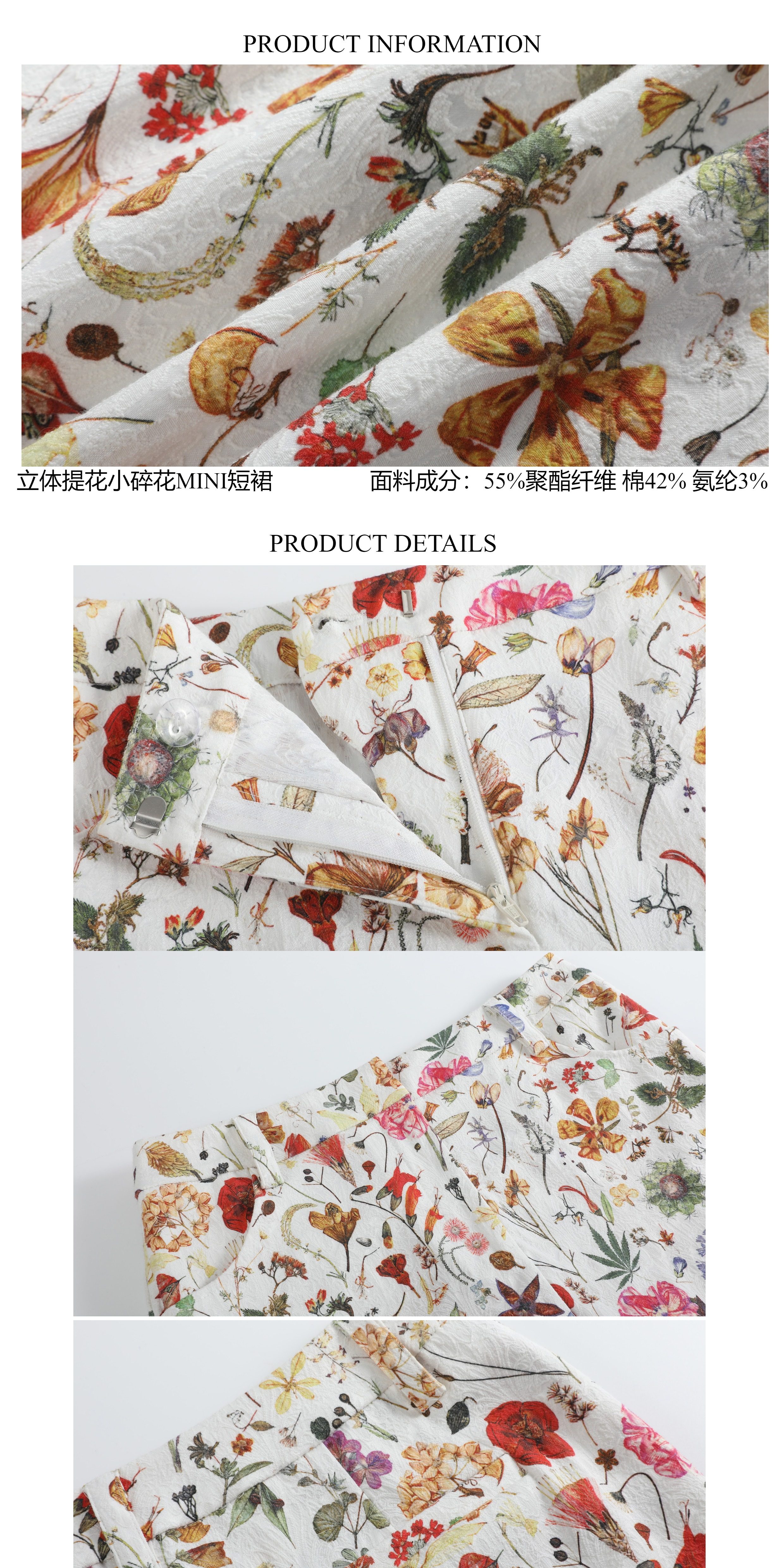 Runway Ticket 【Same Style as Shen Yue】 Three-Dimensional Cut Jacquard Small Floral Mini Skirt for Women