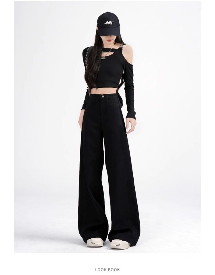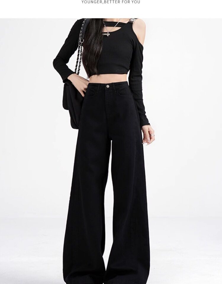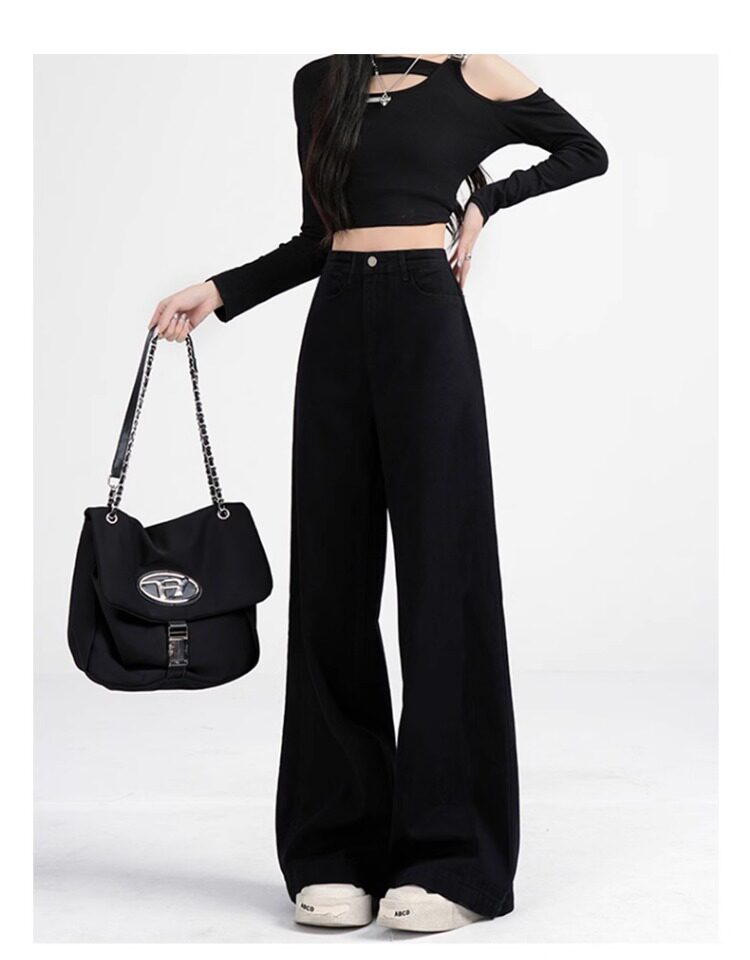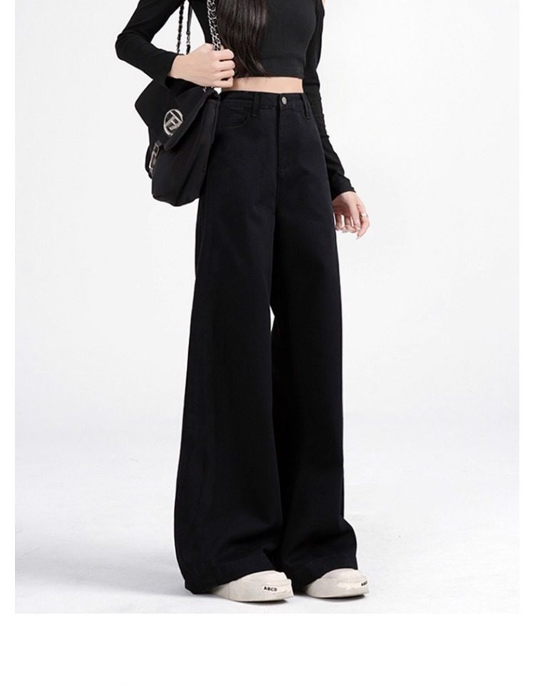 Black Wide-Leg Jeans for Women, 2025 Autumn and Winter New Style, High-Waisted, Drapey, Loose, Fleece-Lined, Straight-Leg, Flared, Floor-Length Pants