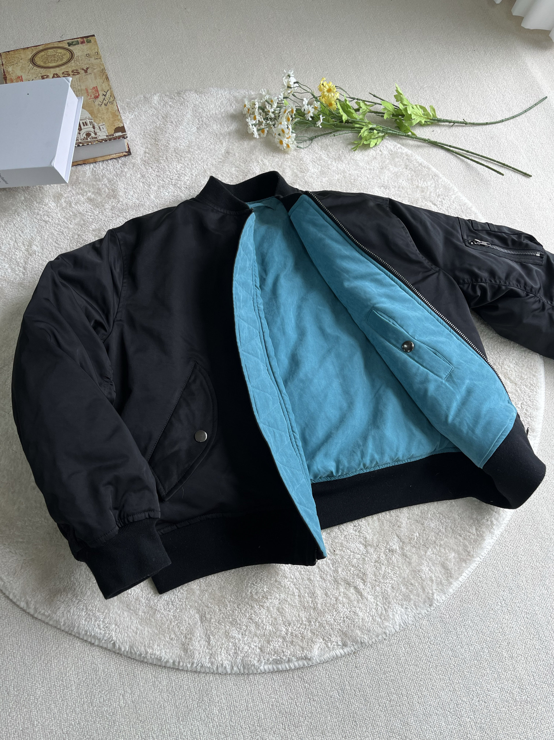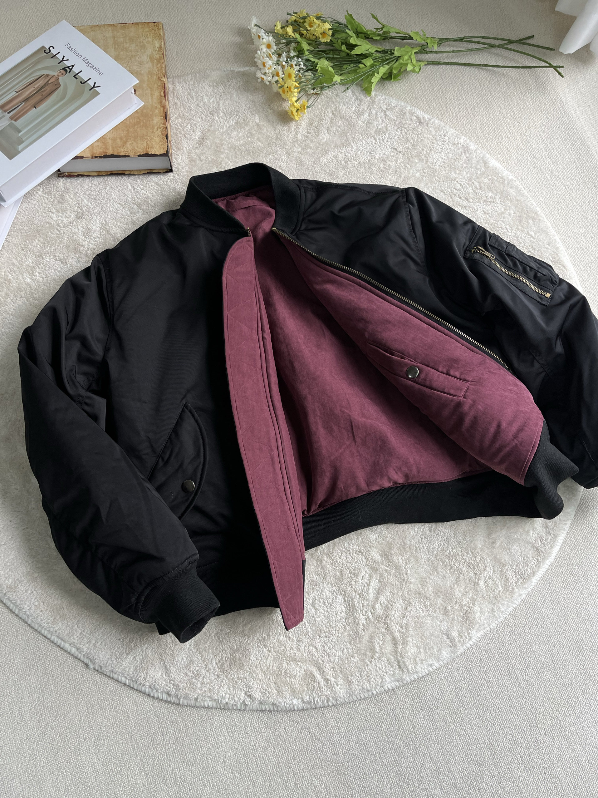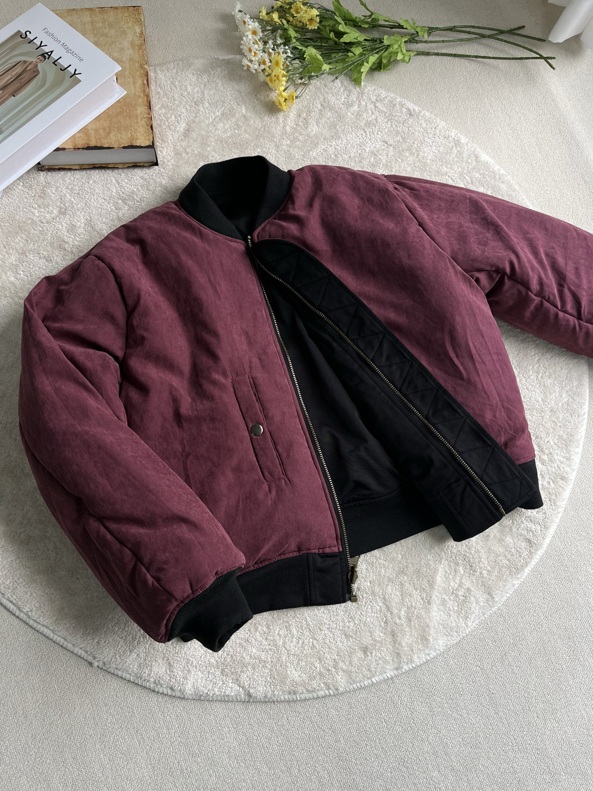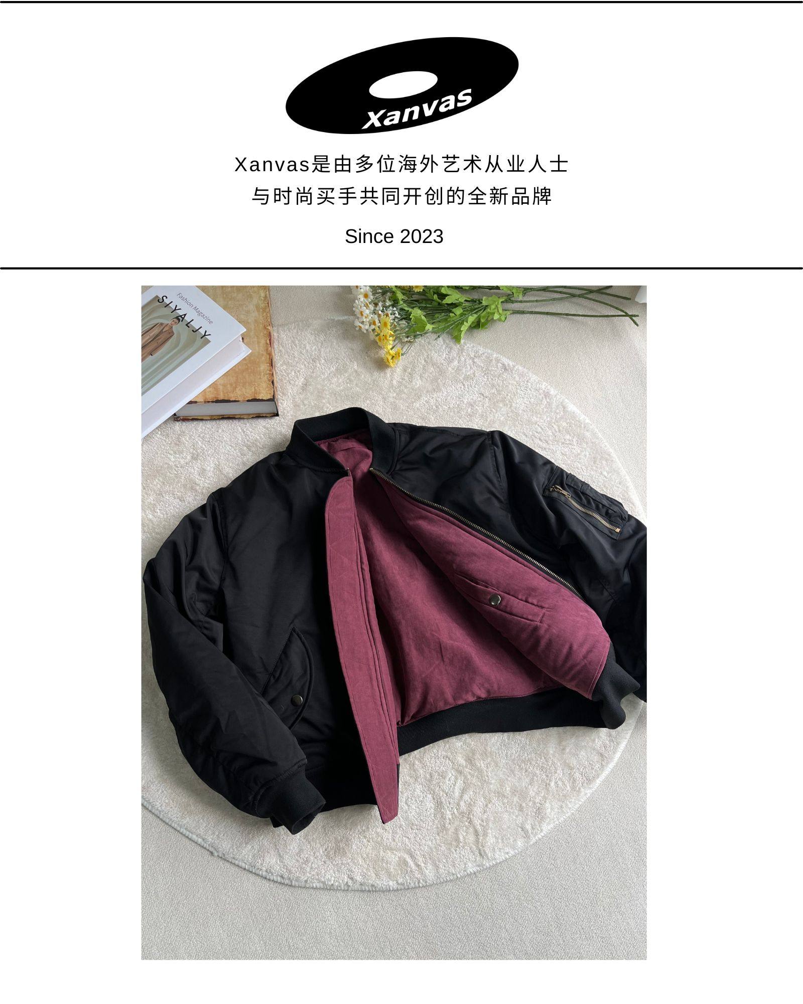 Xanvas Three-Color Burgundy Velvet Annual Best Bomber Jacket Cotton Coat Reversible Ma1 Pilot Jacket