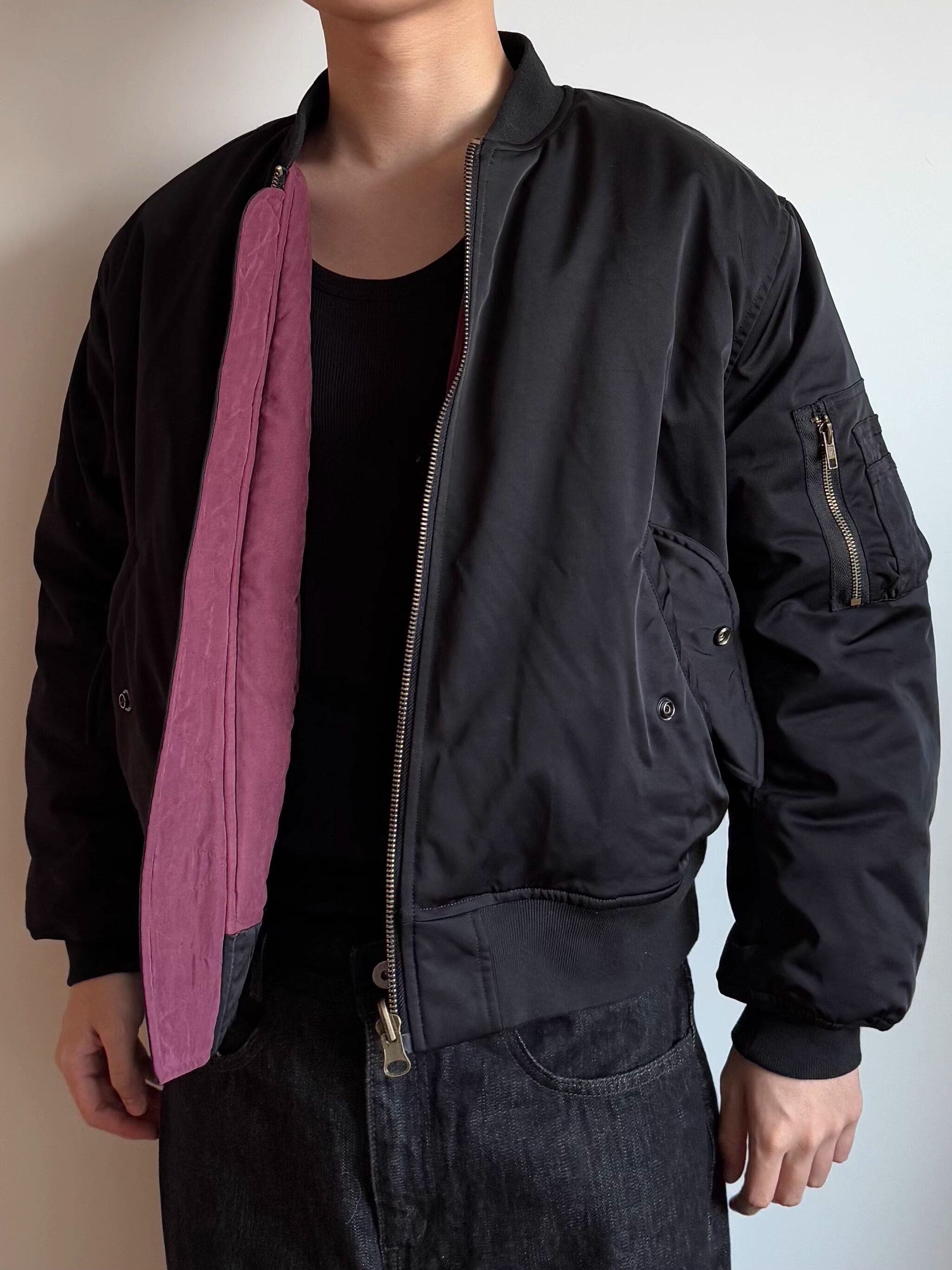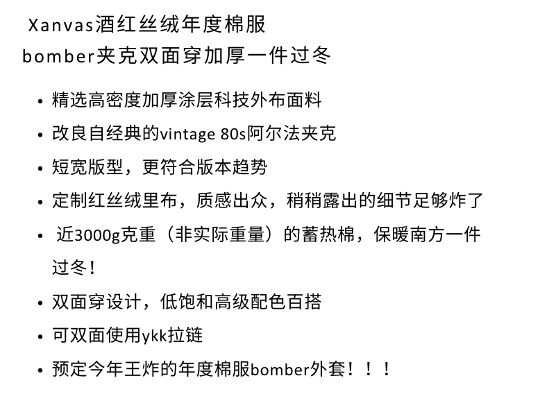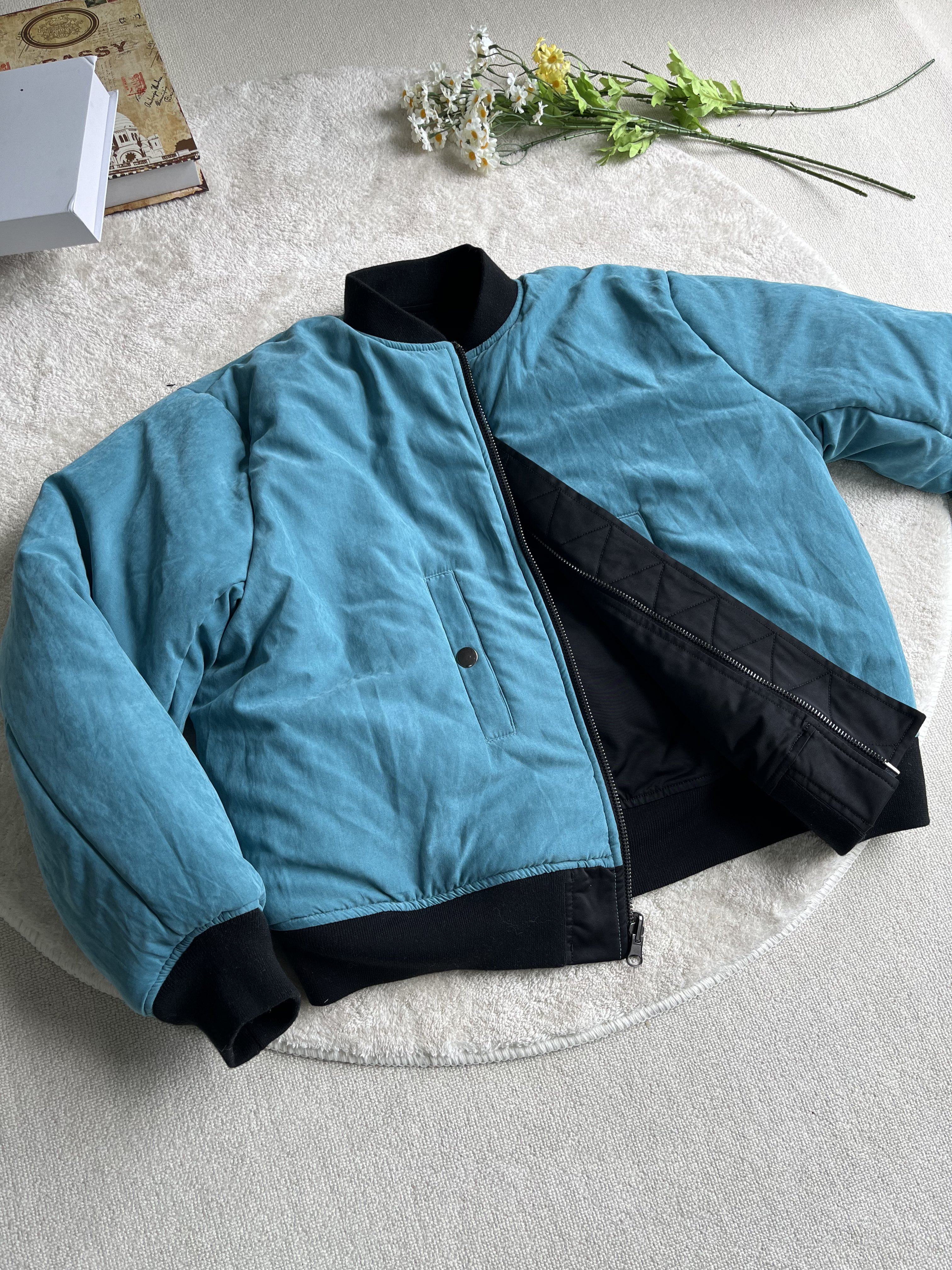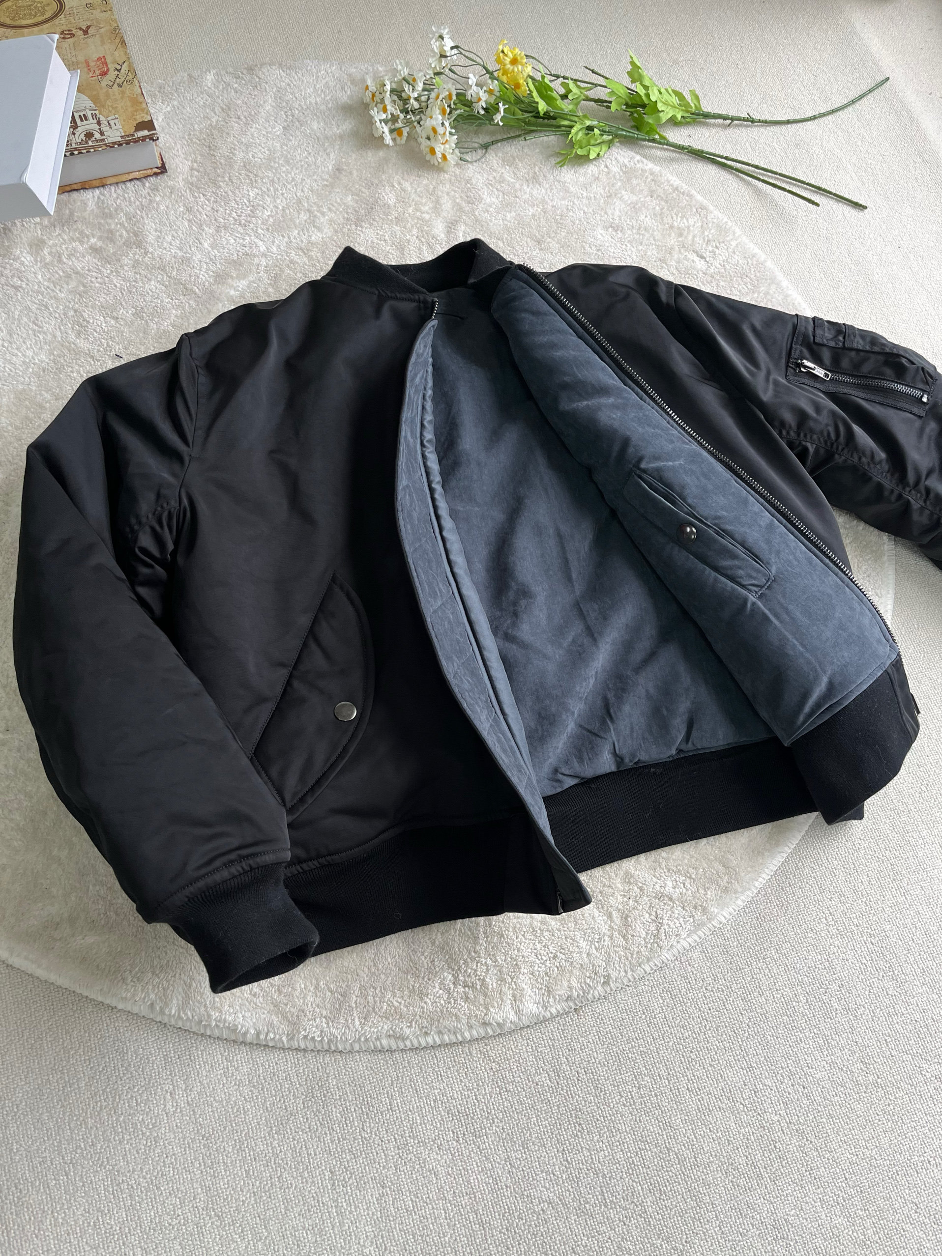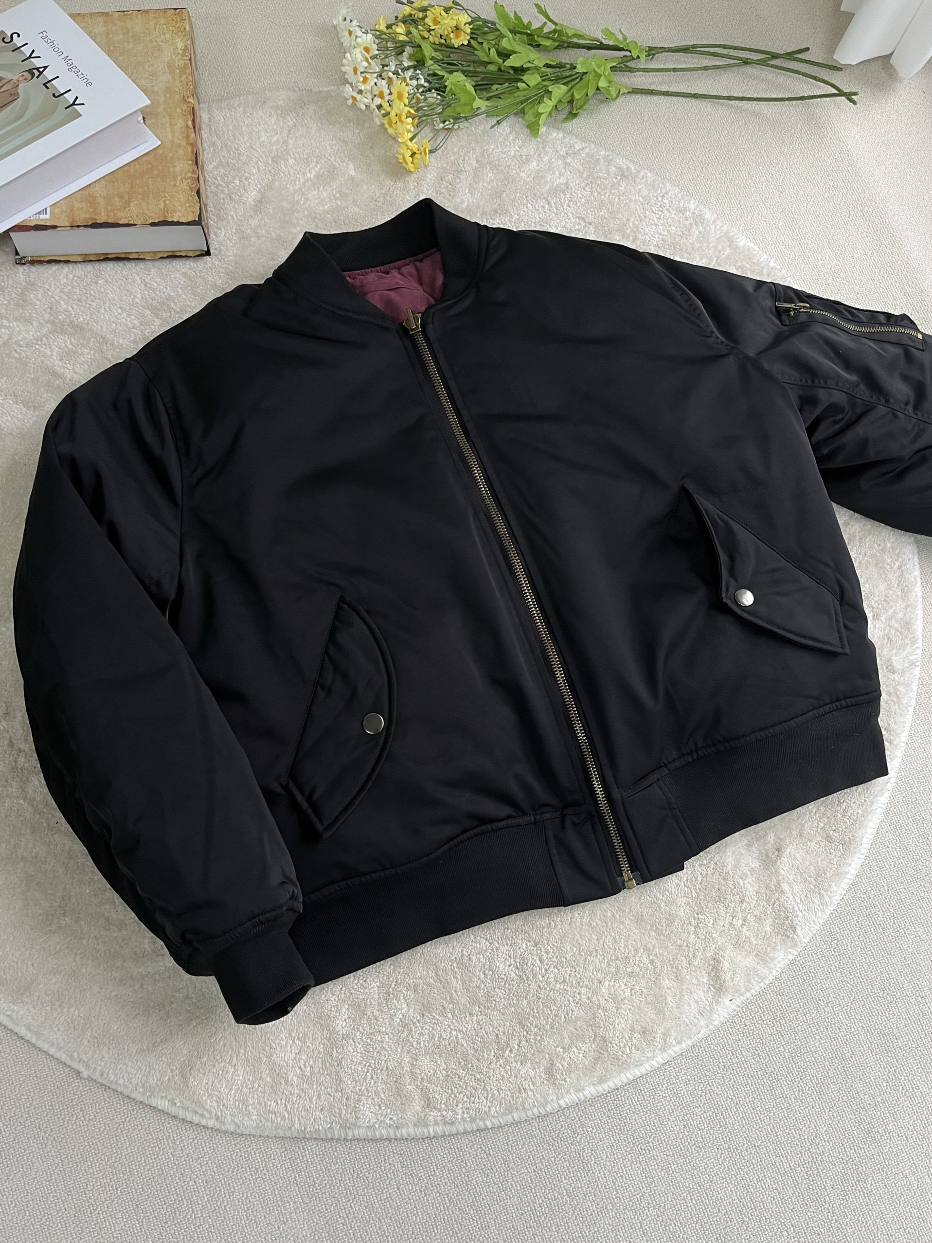 Xanvas Three-Color Burgundy Velvet Annual Best Bomber Jacket Cotton Coat Reversible Ma1 Pilot Jacket