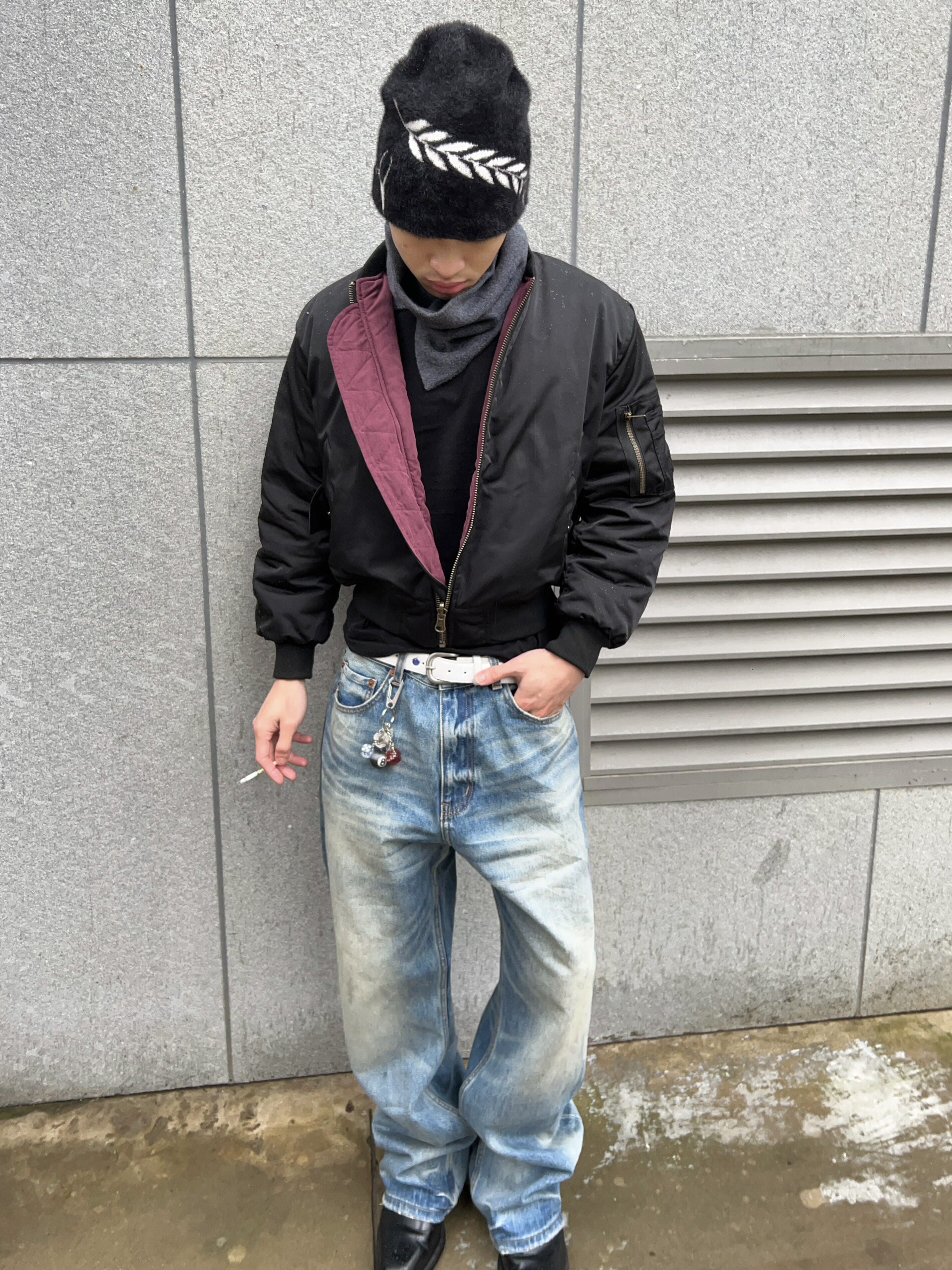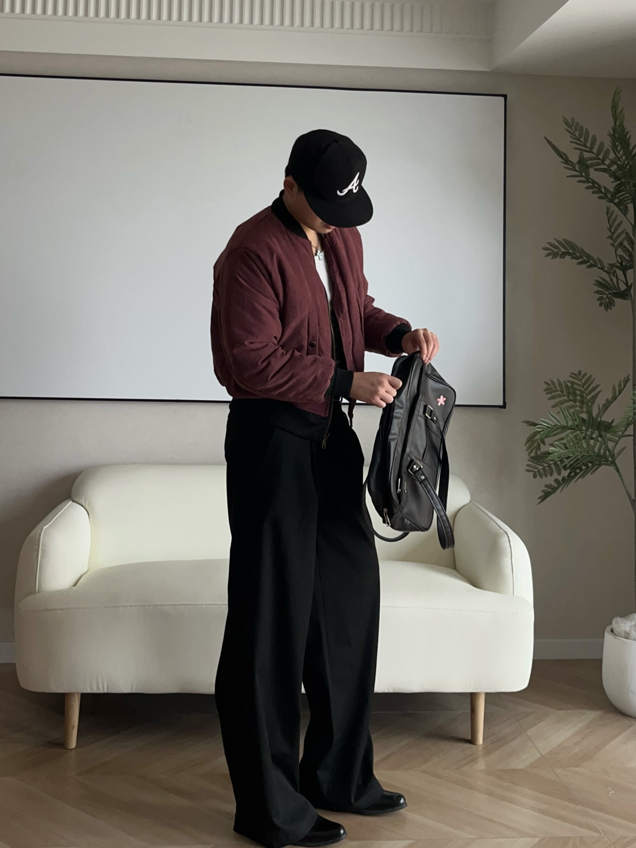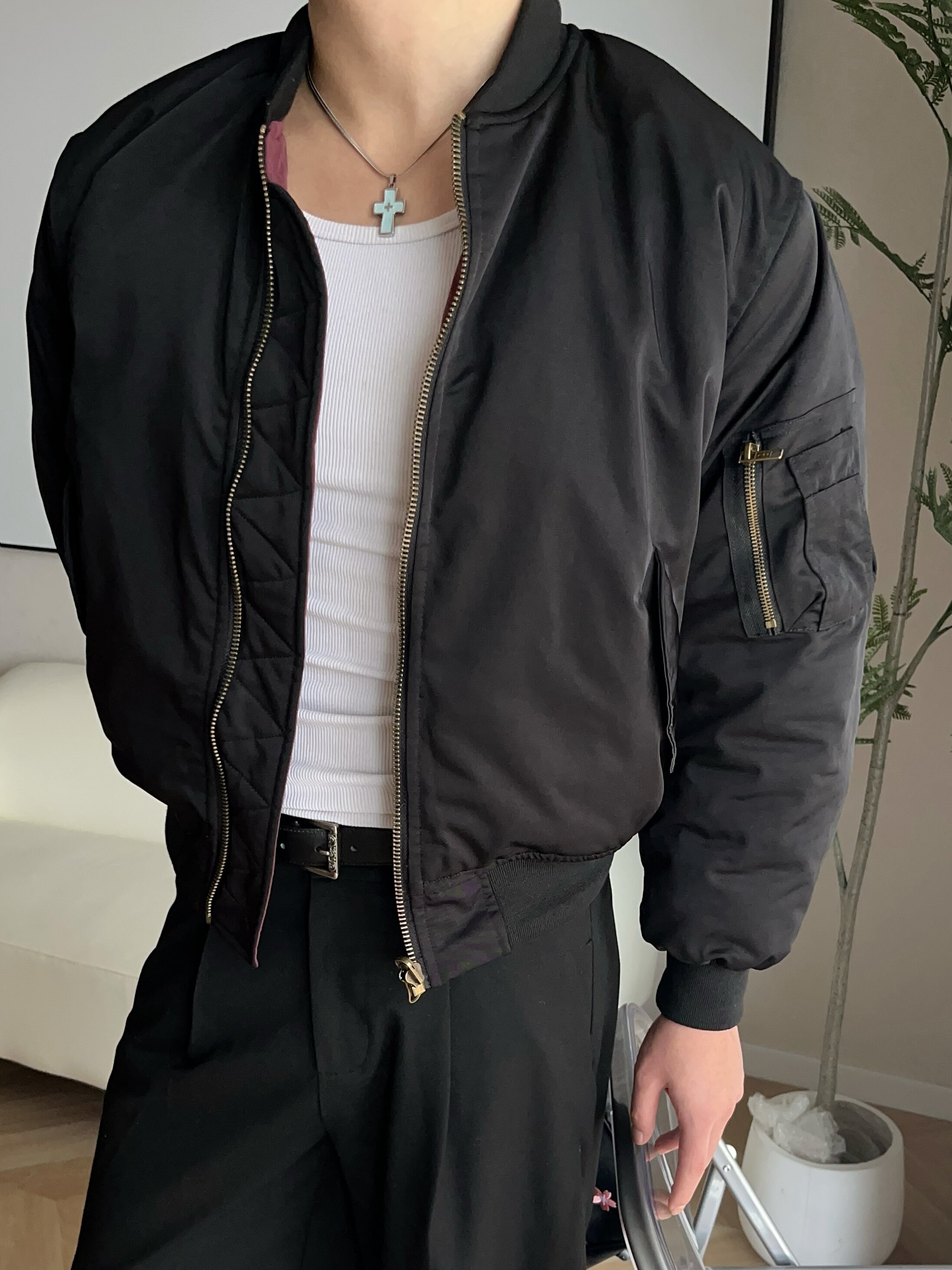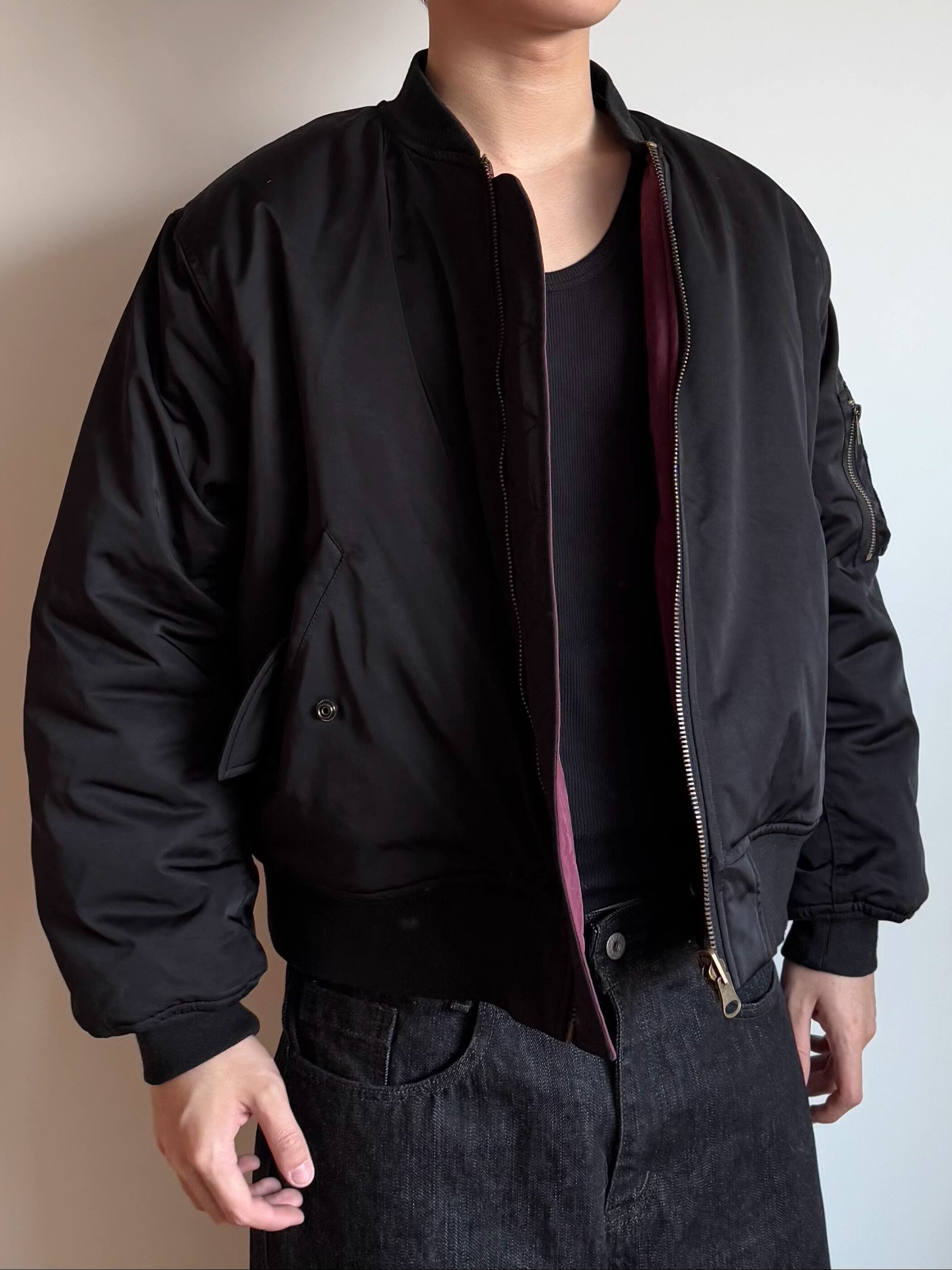 Xanvas Three-Color Burgundy Velvet Annual Best Bomber Jacket Cotton Coat Reversible Ma1 Pilot Jacket