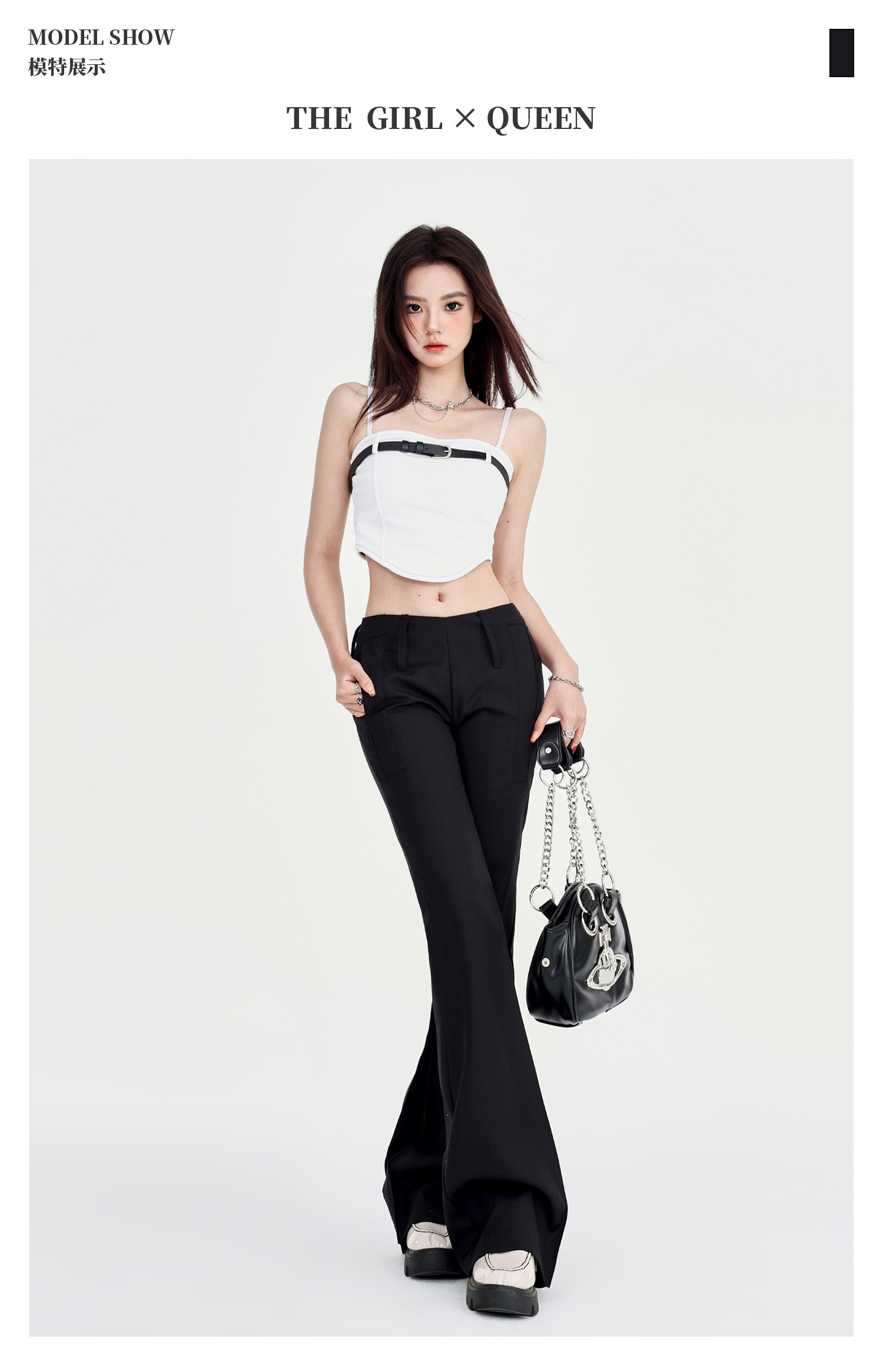 Tgxq American-Style Low-Waisted Flared Pants for Women 2025 New Casual Slim-Fit Petite Suit Black Bell-Bottom Pants