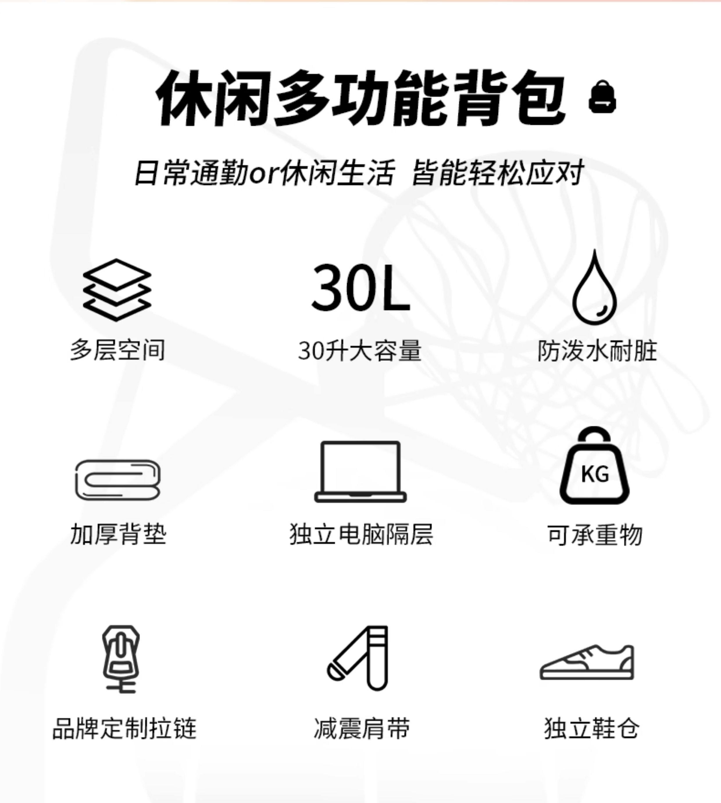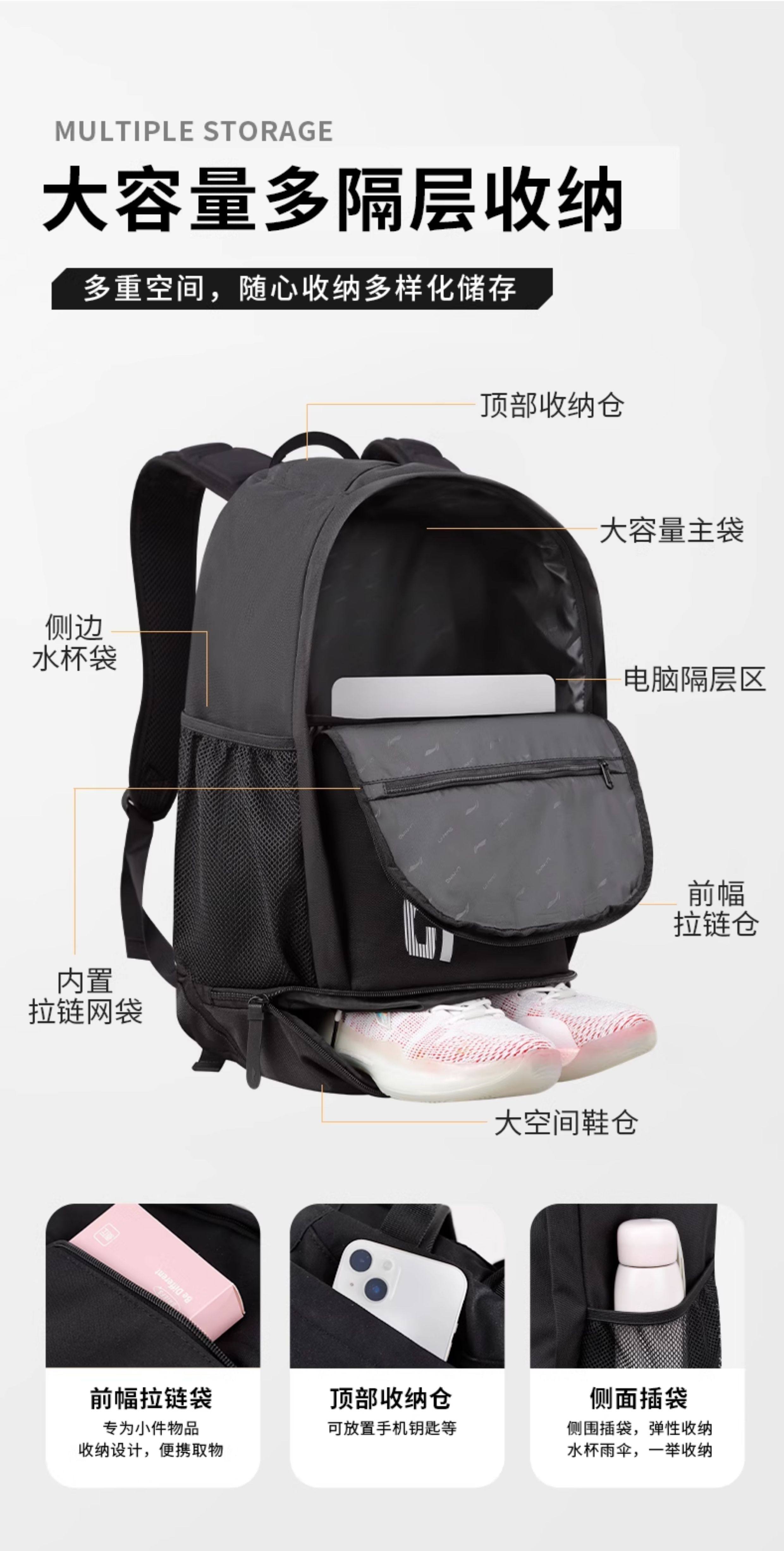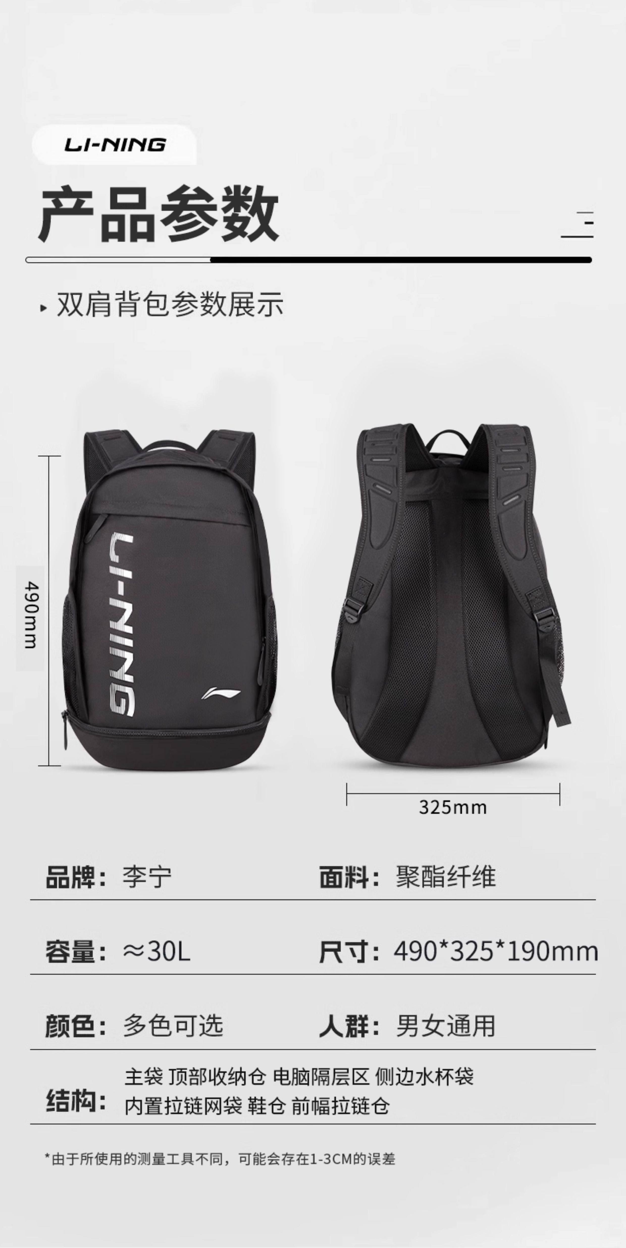 Li Ning Backpack Men's Large-Capacity Sports Mountaineering Basketball Backpack Outdoor Travel Junior High School and High School Student School Bag Women's