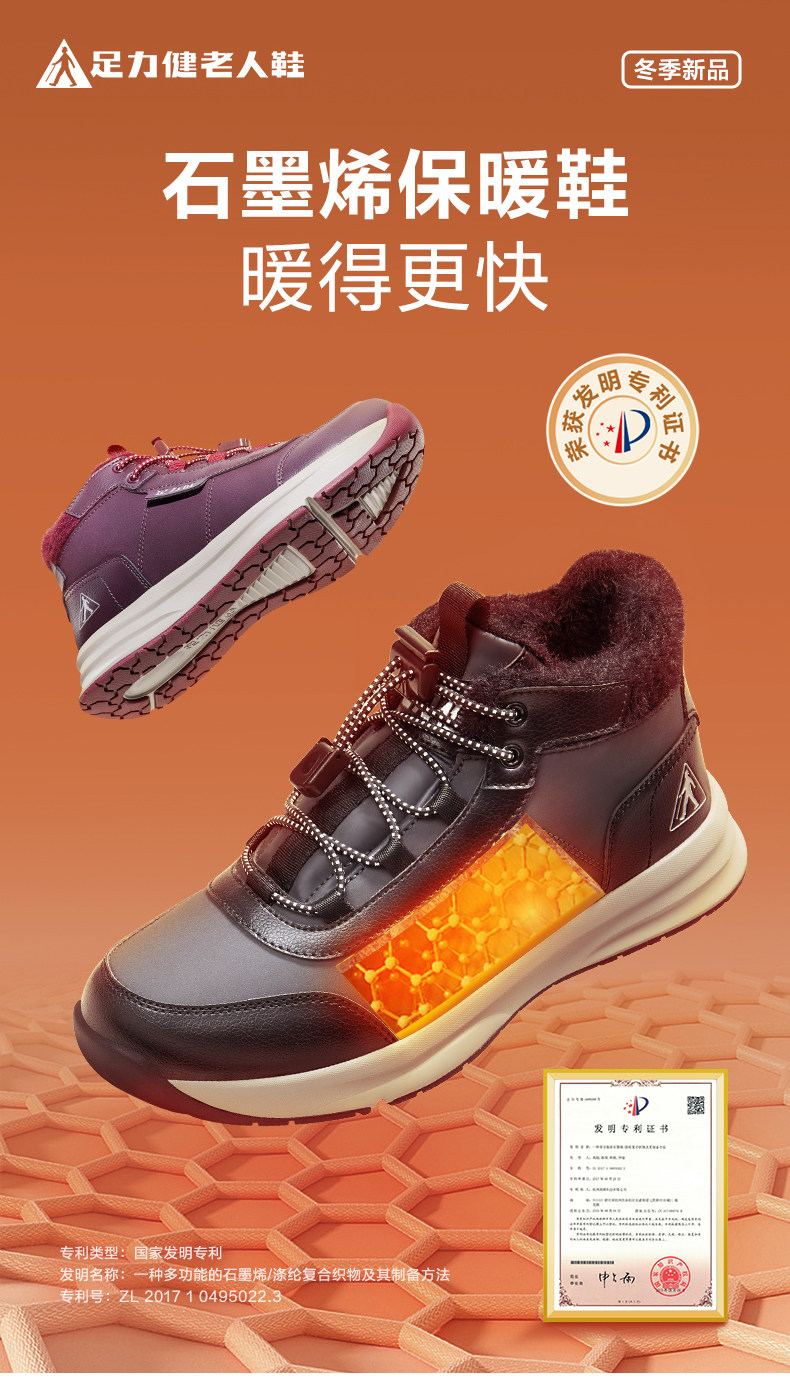 Zulijian Flagship Store Middle-Aged and Elderly 2024 Winter New Graphene Fleece-Lined Warm Casual Dad Men's Cotton Shoes