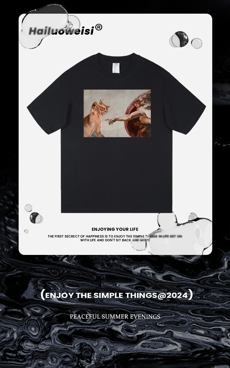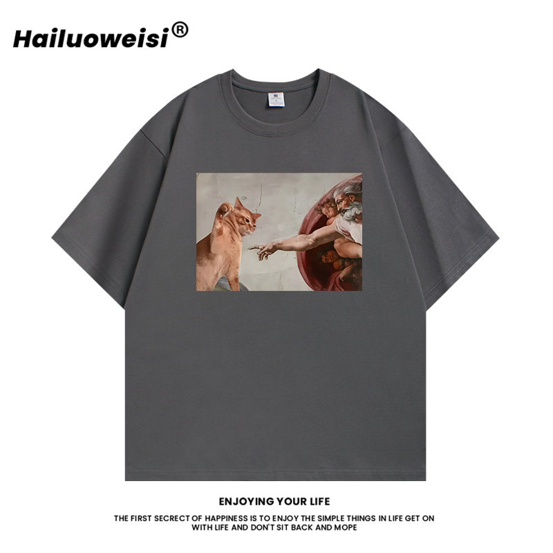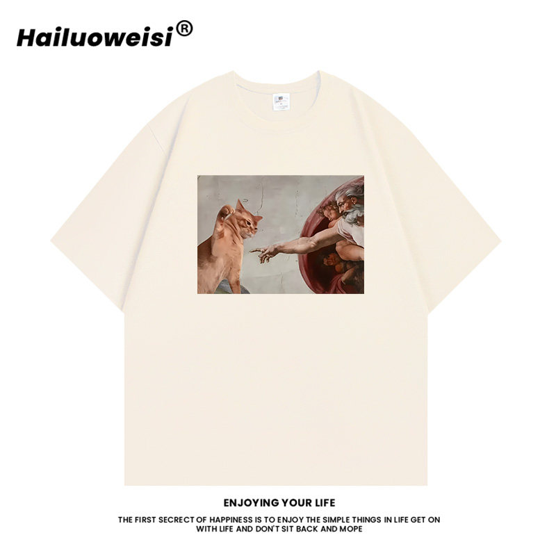 Don'T Mess with Me T-Shirt God Reaches Out to Touch Cat Funny Short-Sleeved Summer New Style Fun Cat Pure Cotton Loose Clothing