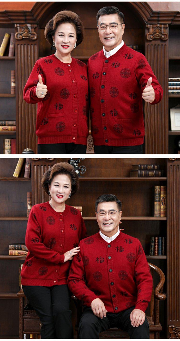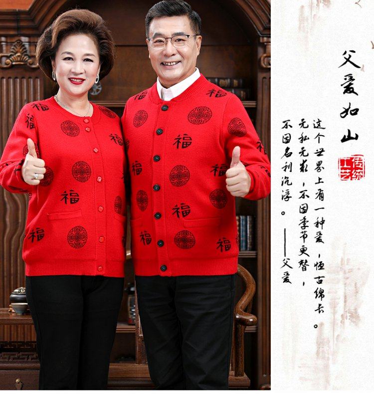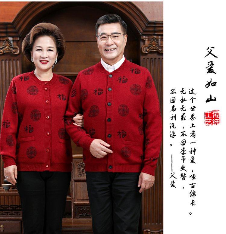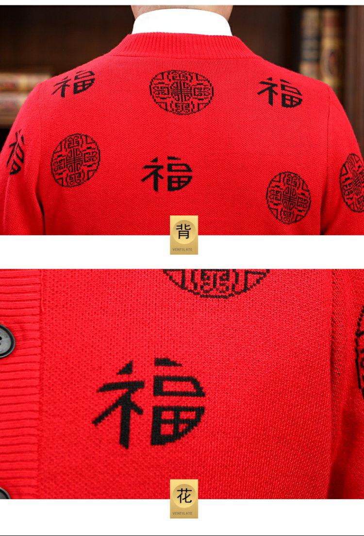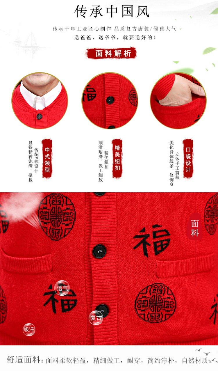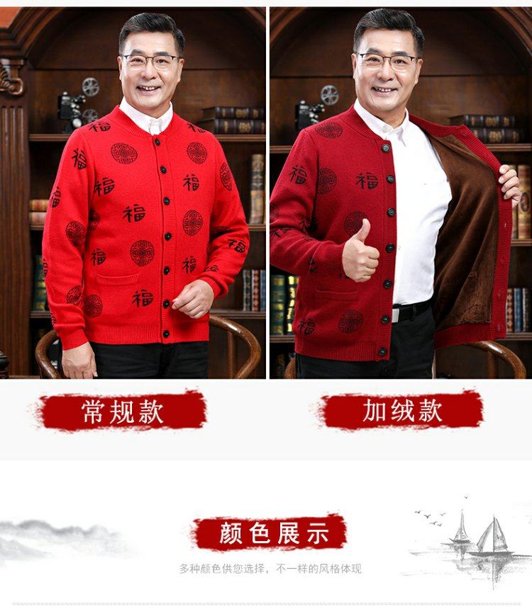 Hengyuanxiang Group Caiyang Middle-Aged and Elderly Men's Sweater for Grandparents, Autumn and Winter Cardigan, Wool Sweater for the Elderly in Their Zodiac Year