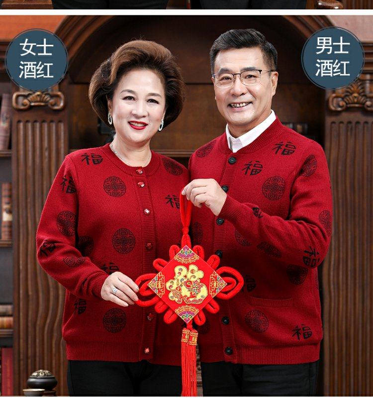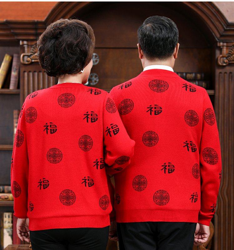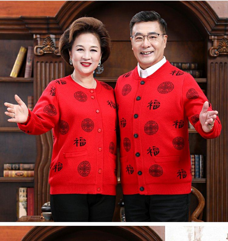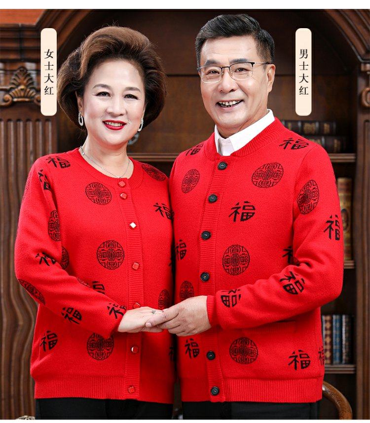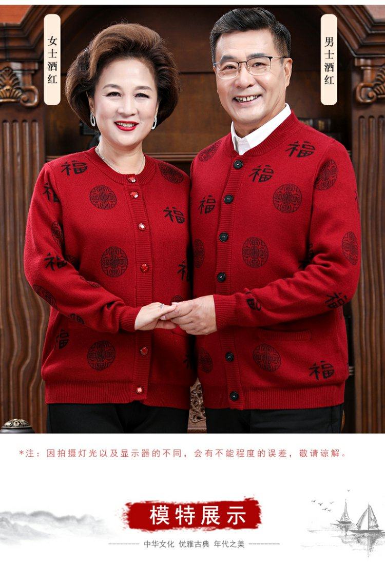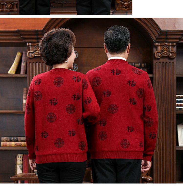 Hengyuanxiang Group Caiyang Middle-Aged and Elderly Men's Sweater for Grandparents, Autumn and Winter Cardigan, Wool Sweater for the Elderly in Their Zodiac Year