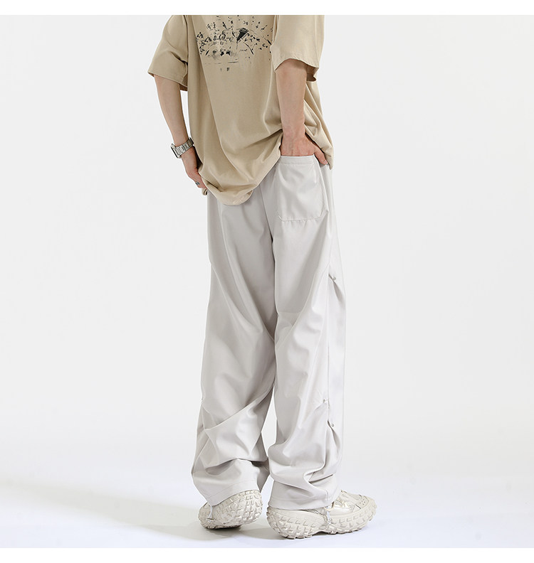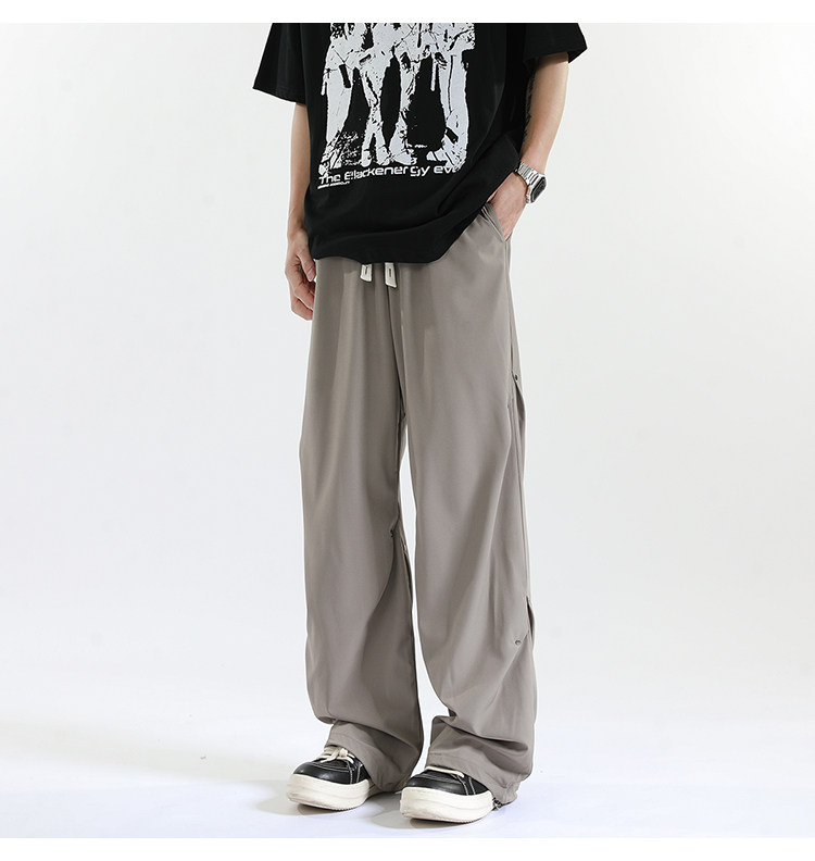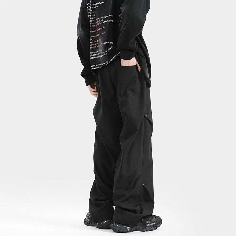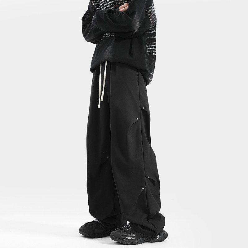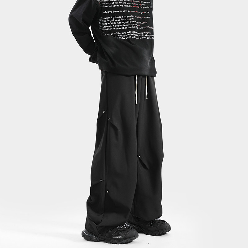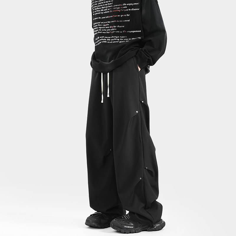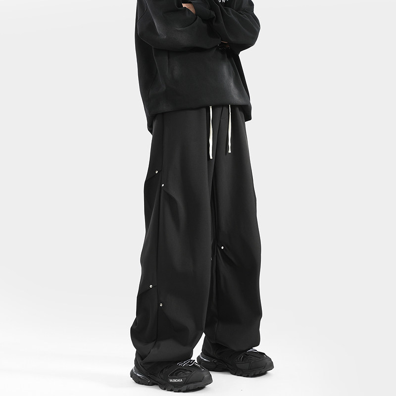 Blry American Style Pants for Men, Autumn High Street Fashion Brand, Winter Fleece-Lined Loose Straight Casual Long Pants