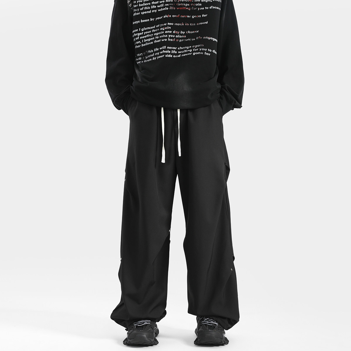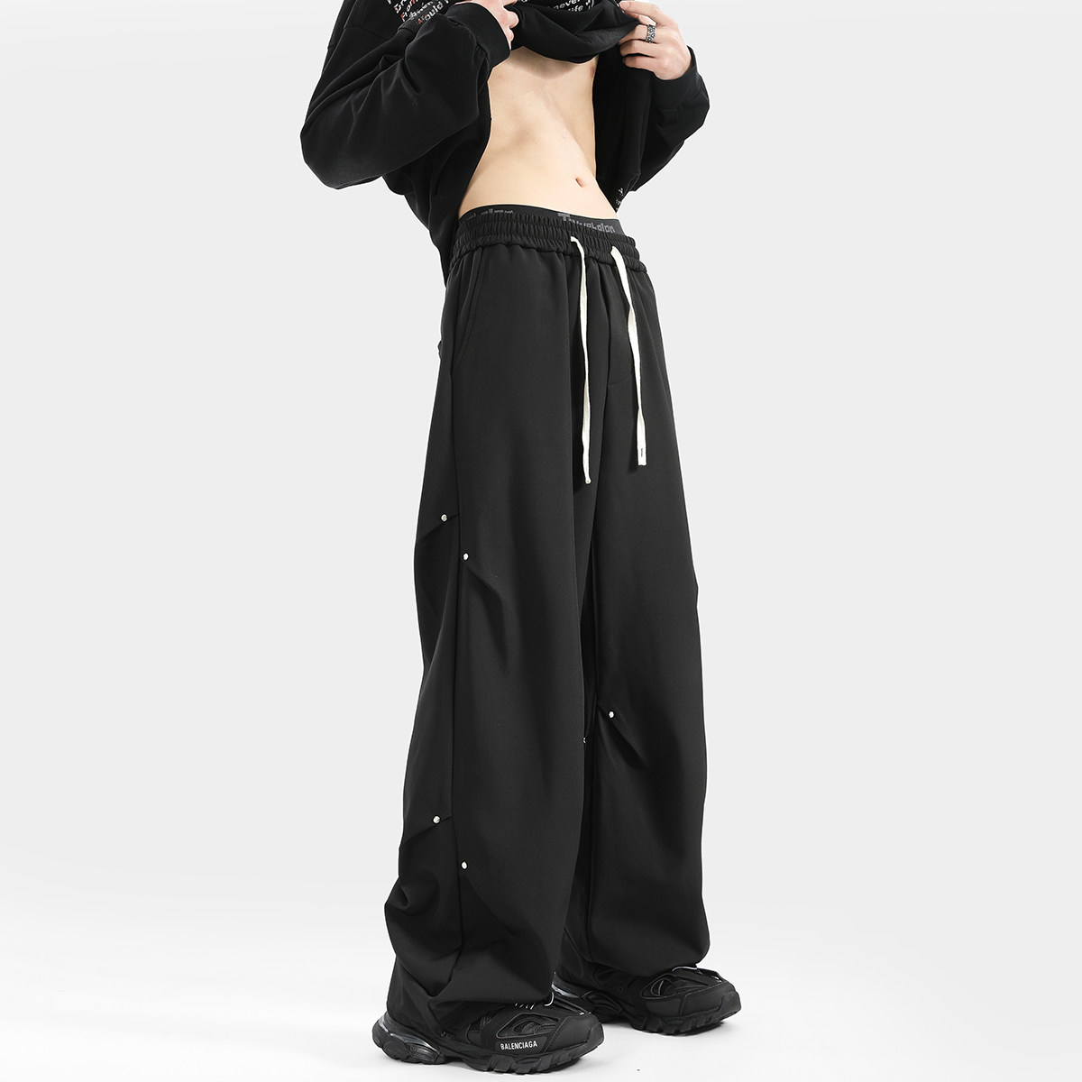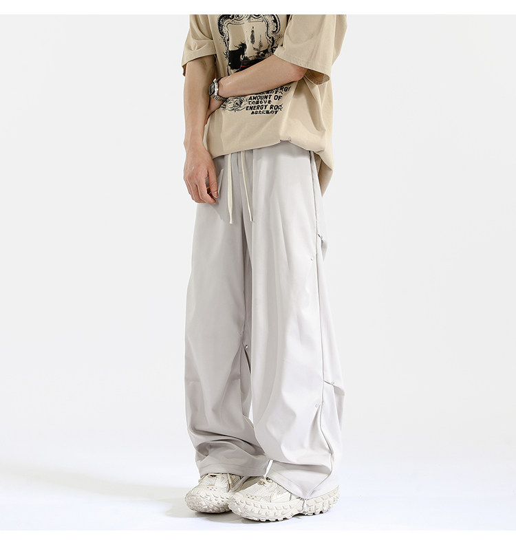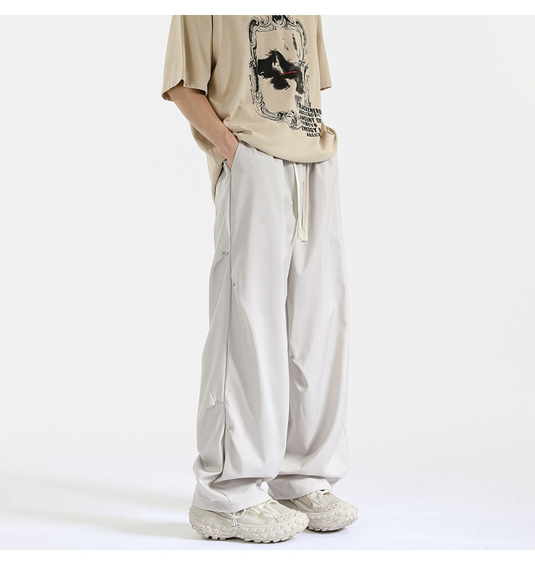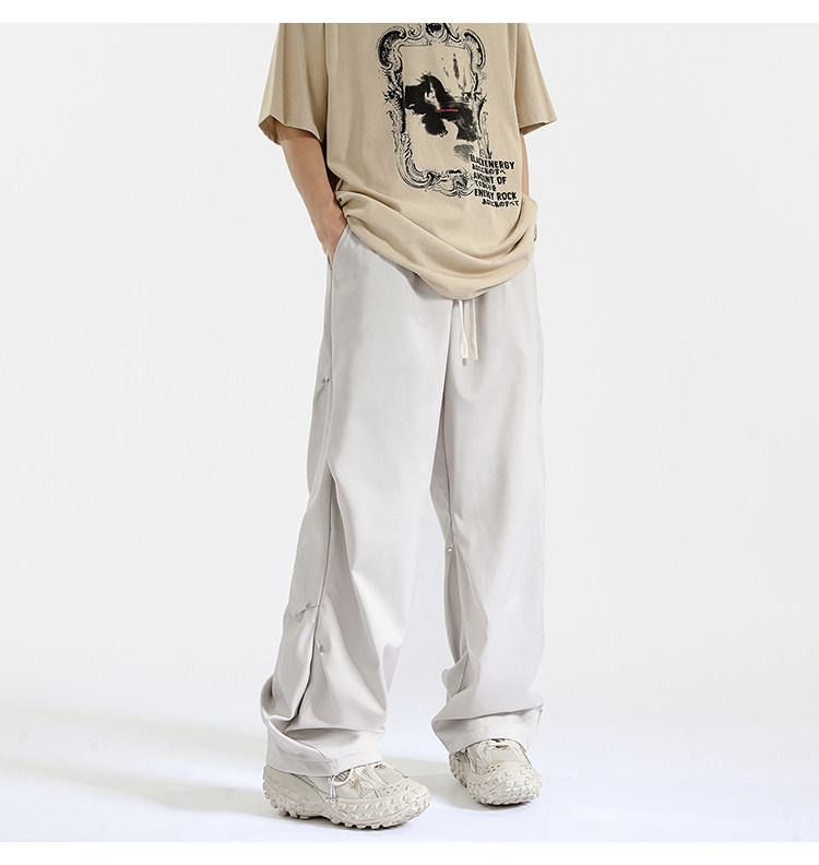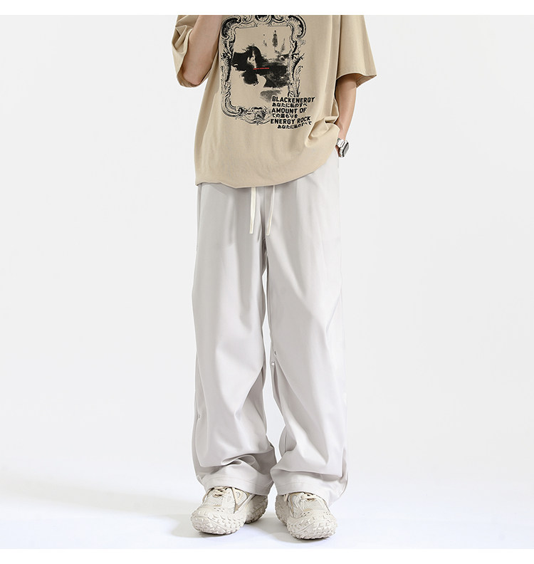 Blry American Style Pants for Men, Autumn High Street Fashion Brand, Winter Fleece-Lined Loose Straight Casual Long Pants