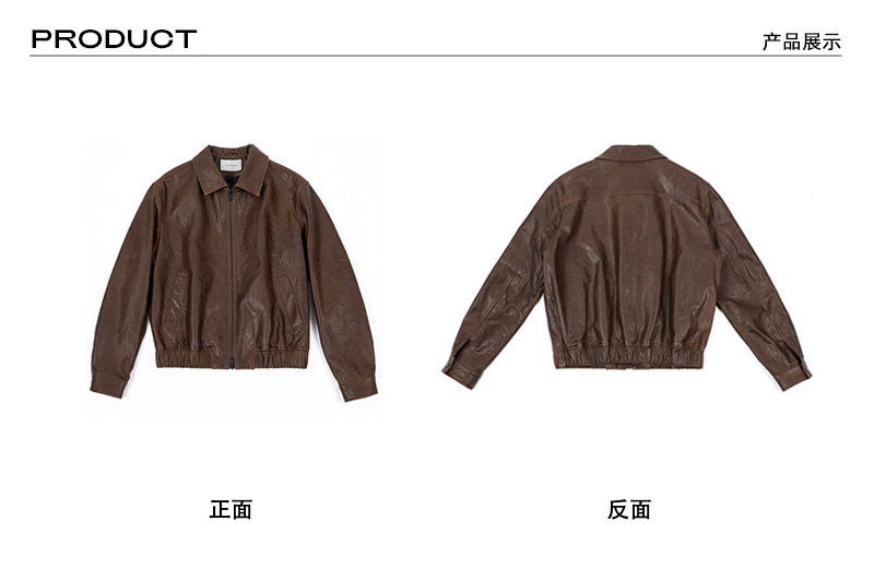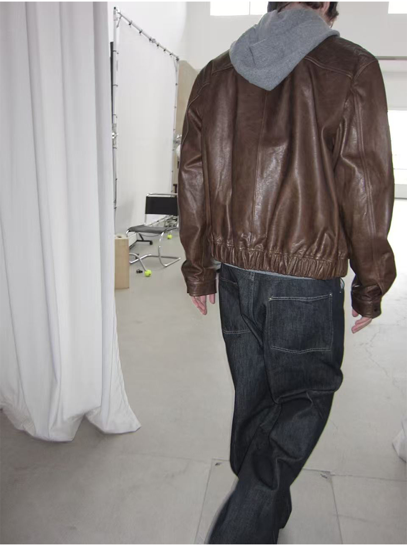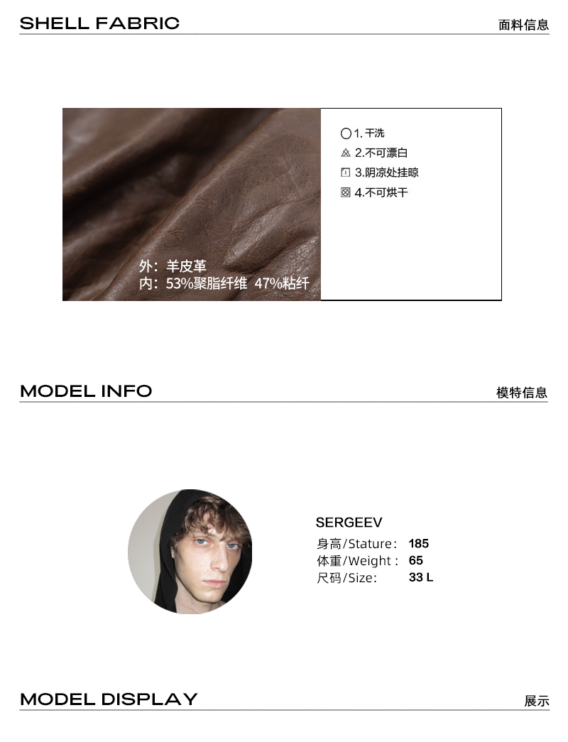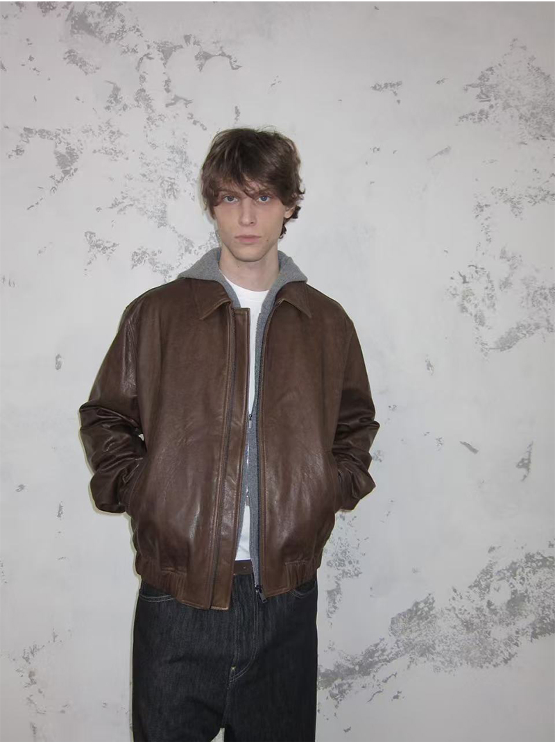 Gremade Turkish Vintage Oil Waxed Sheepskin Short Elastic Cuff Straight Shoulder Lapel Leather Jacket