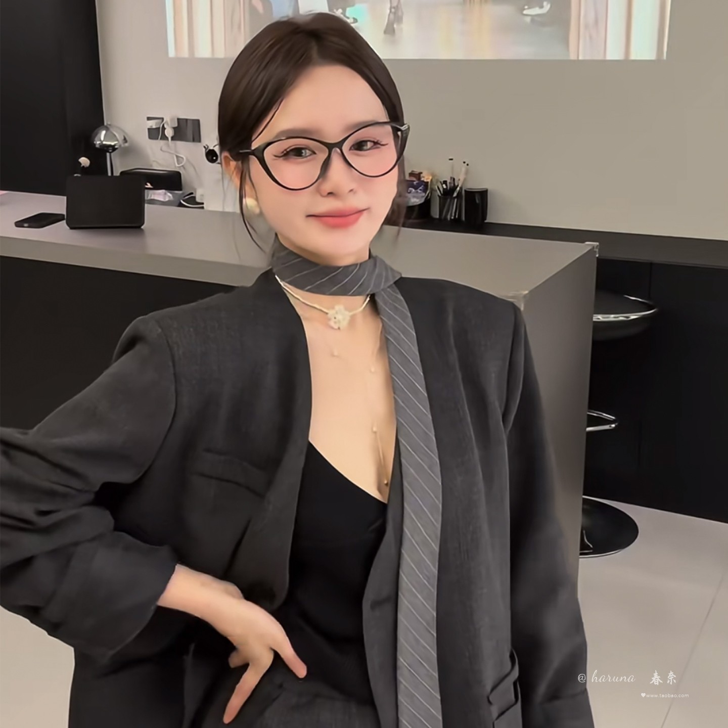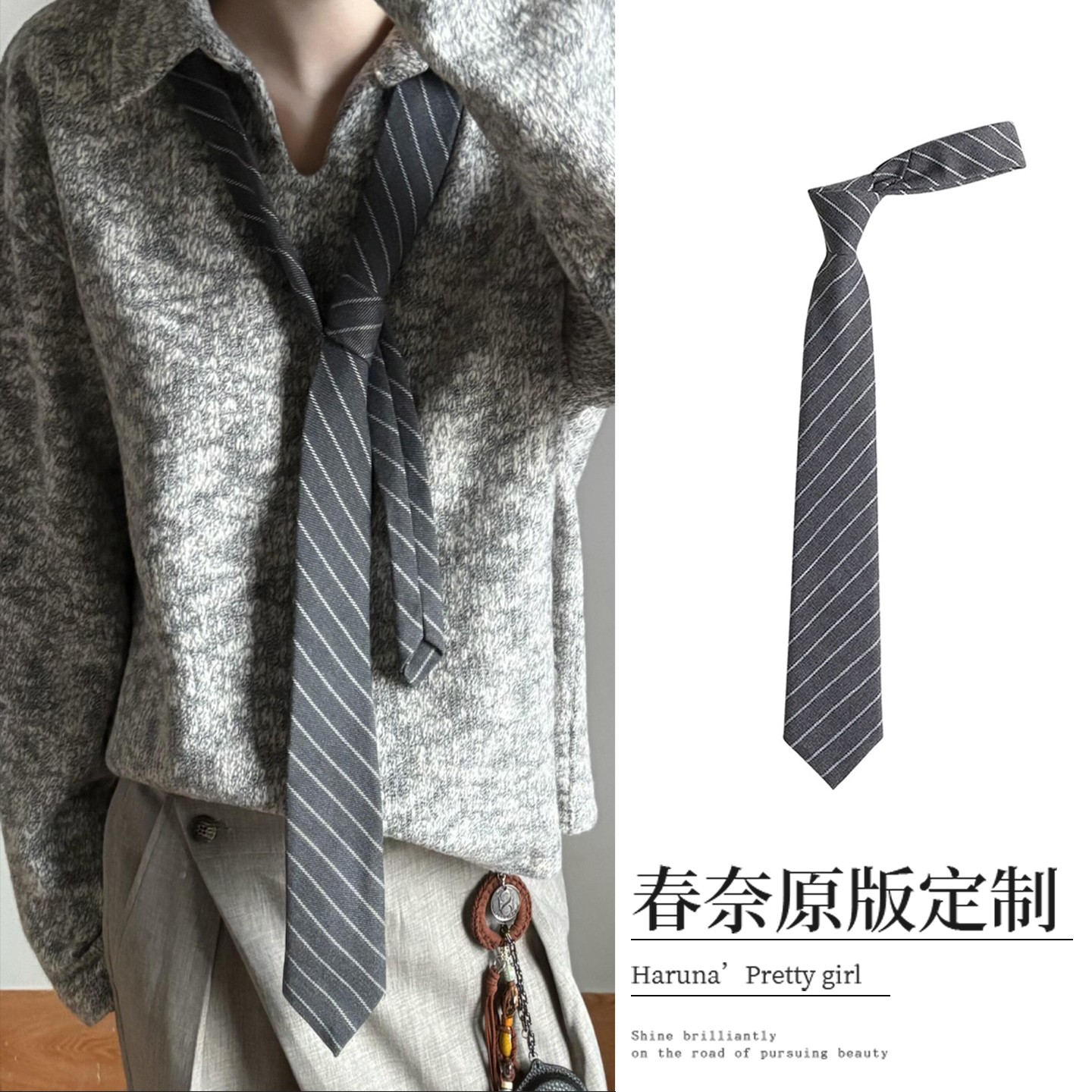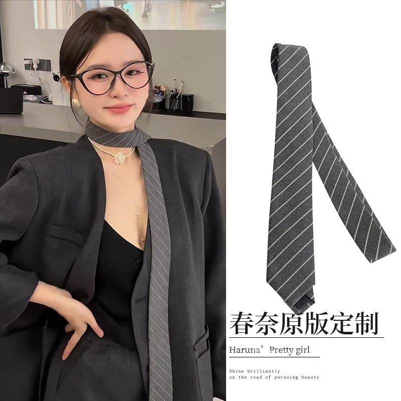 Perfectly Matches Suits~ High-Fashion Gray Diagonal Striped Silk Scarf Tie, Autumn and Winter Korean Style Casual and Simple Wear Accessories