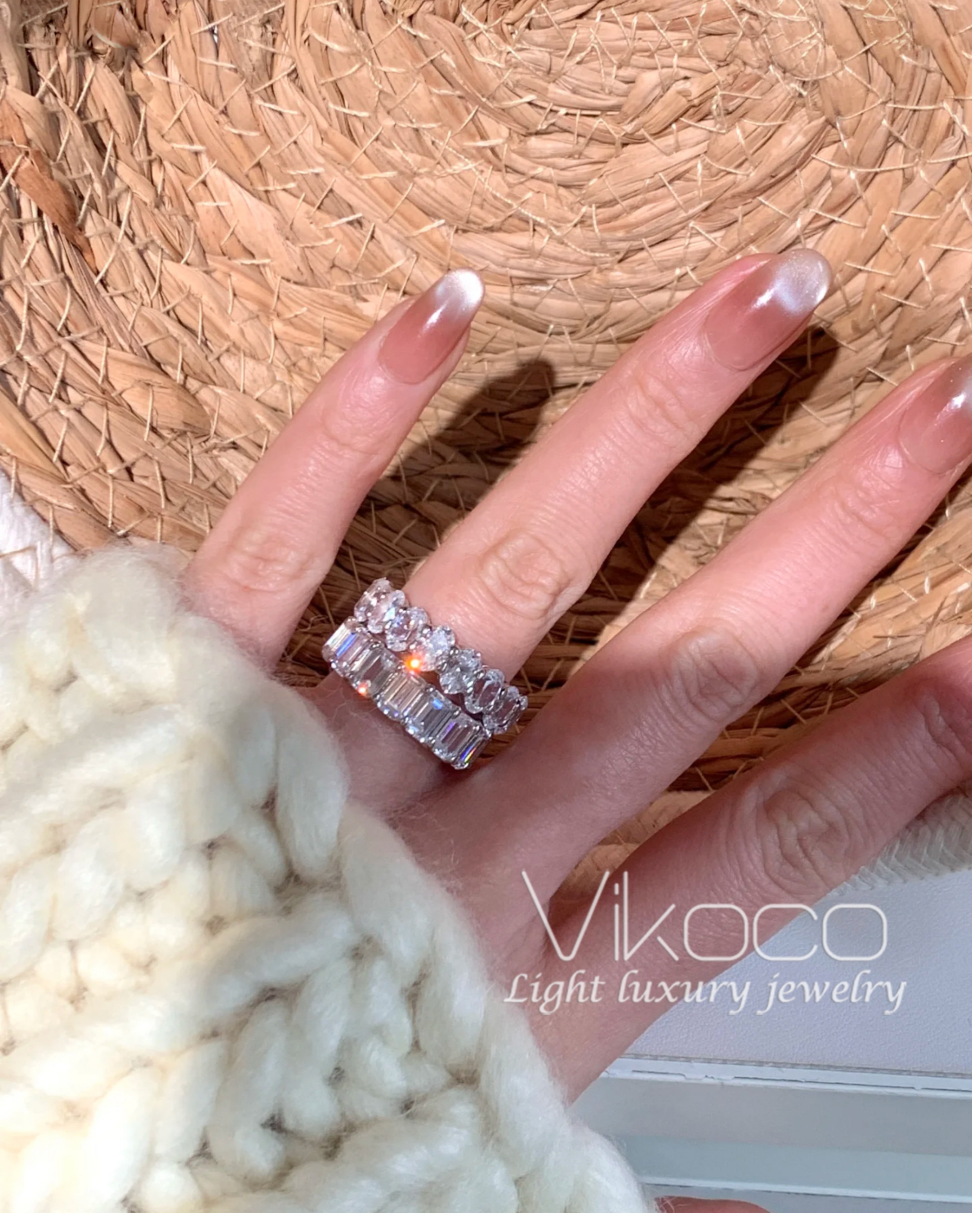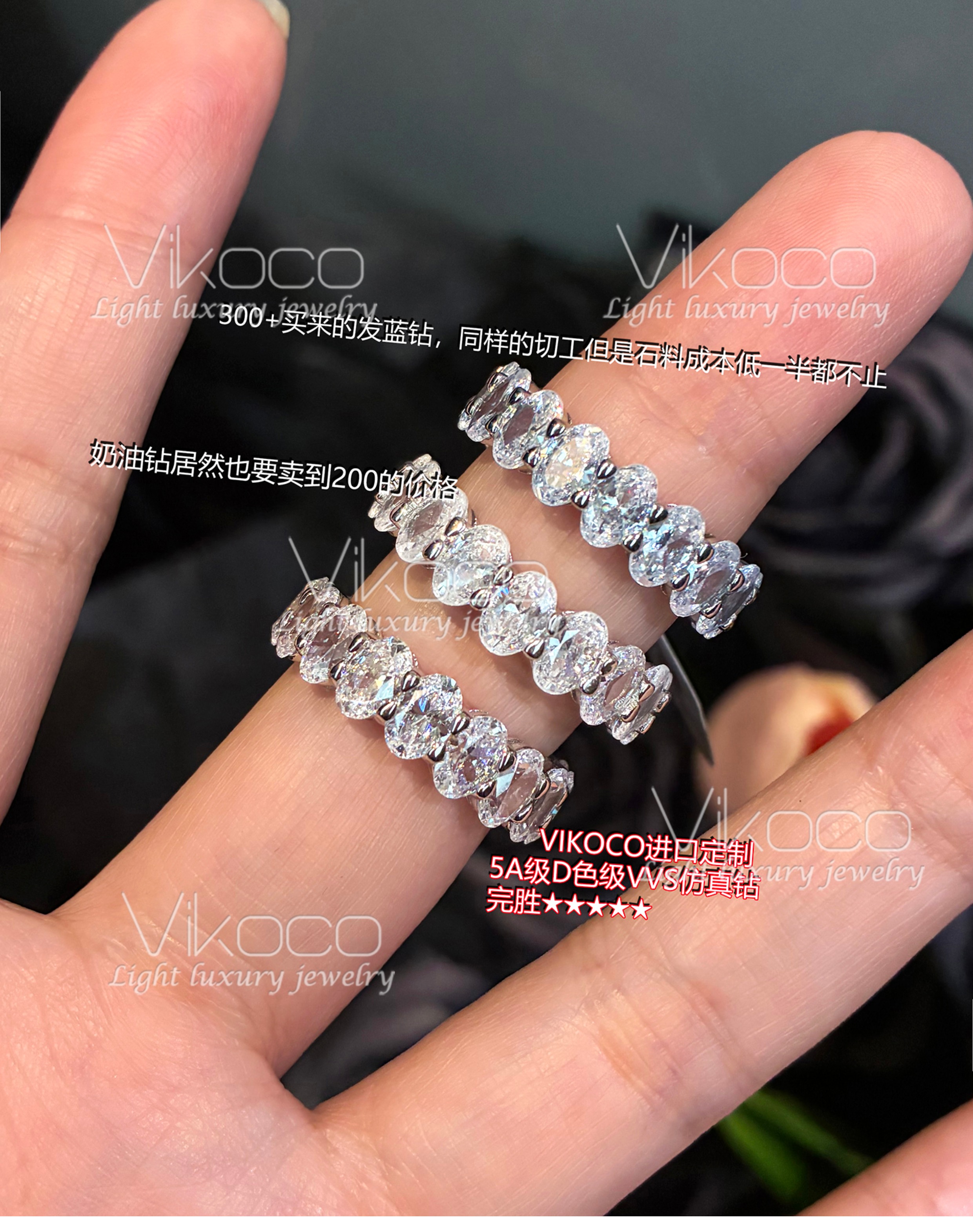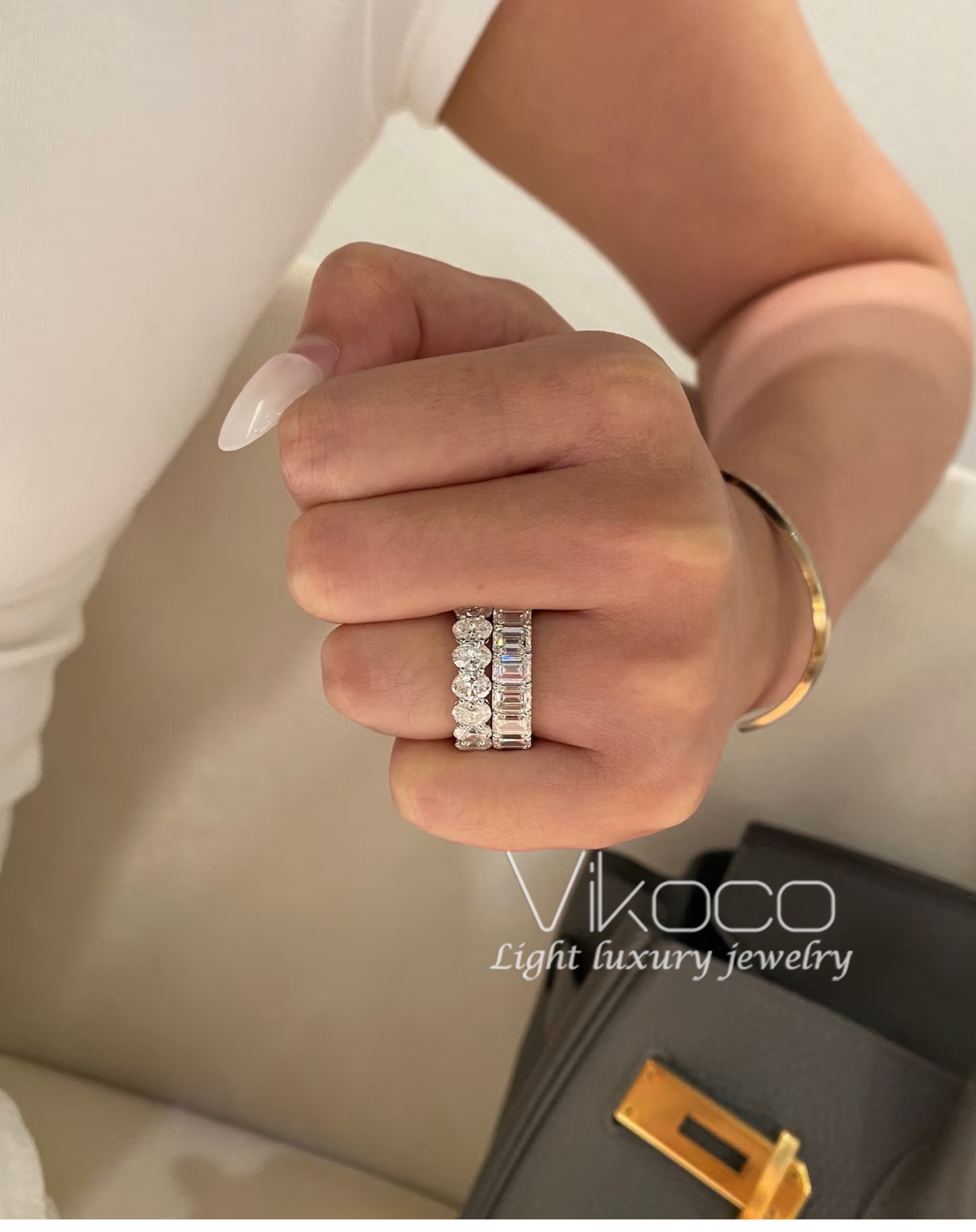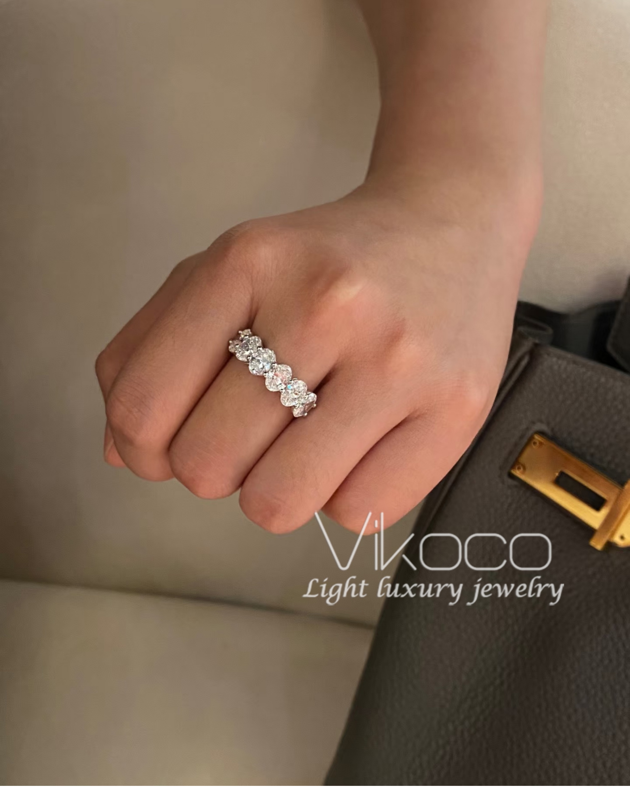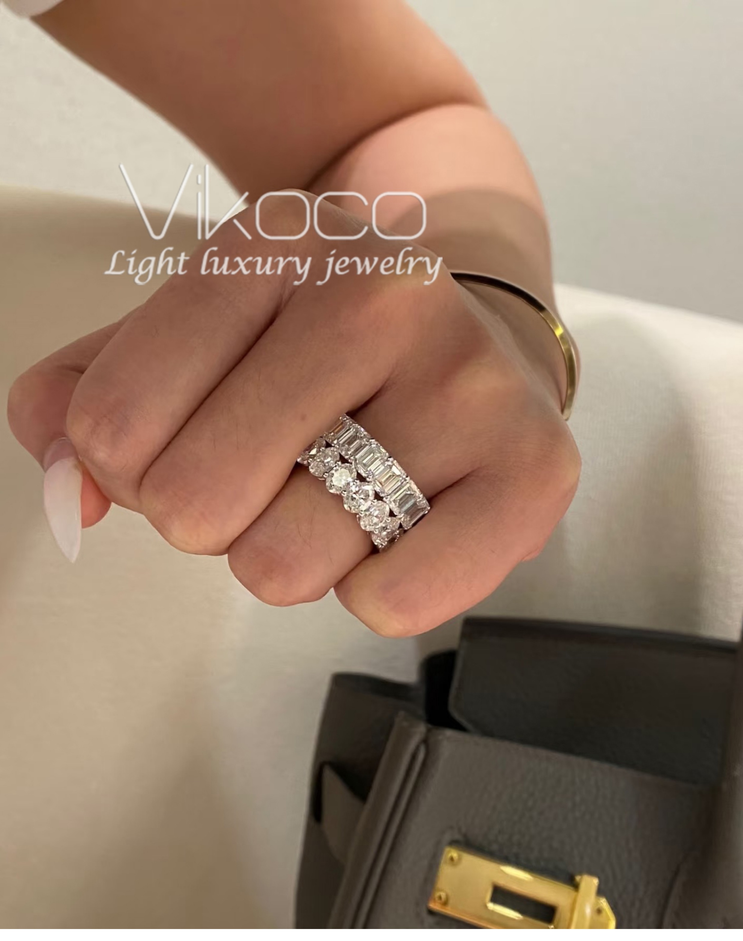 Oval 50-Point Diamond Index Finger Ring for Women, Pigeon Egg-Shaped Square Diamond Ring, Row of Diamonds, Moissanite Large Diamond Ring, Non-Fading