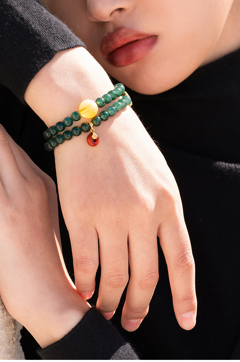 Leftgo Genuine Natural Blue Water Guatemalan Jade Peace Buckle Bracelet for Women Enamel Color Bracelet New Style