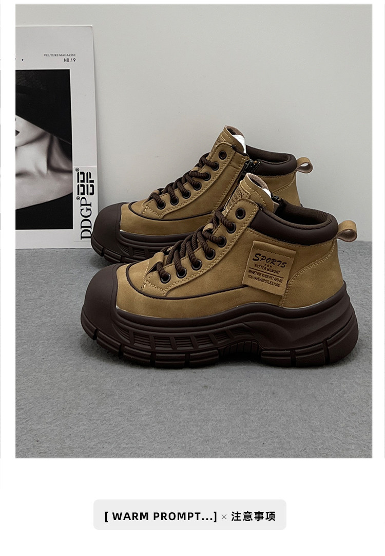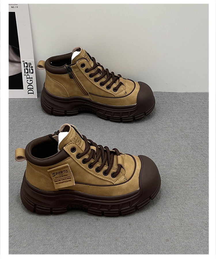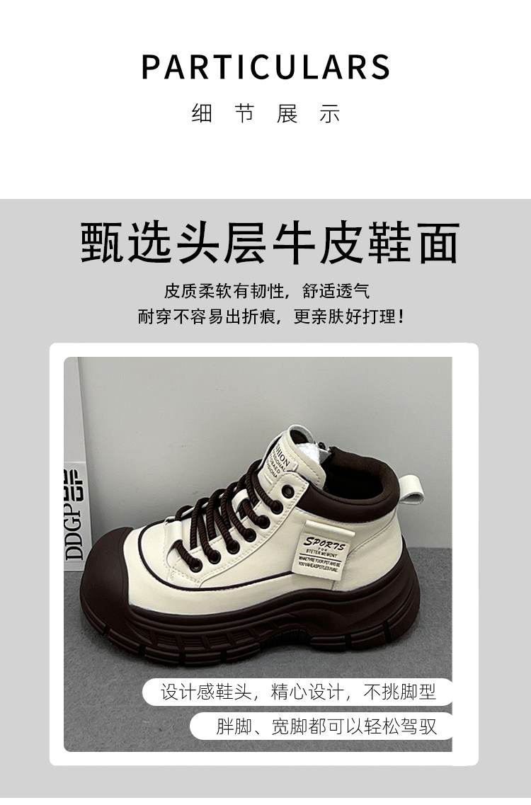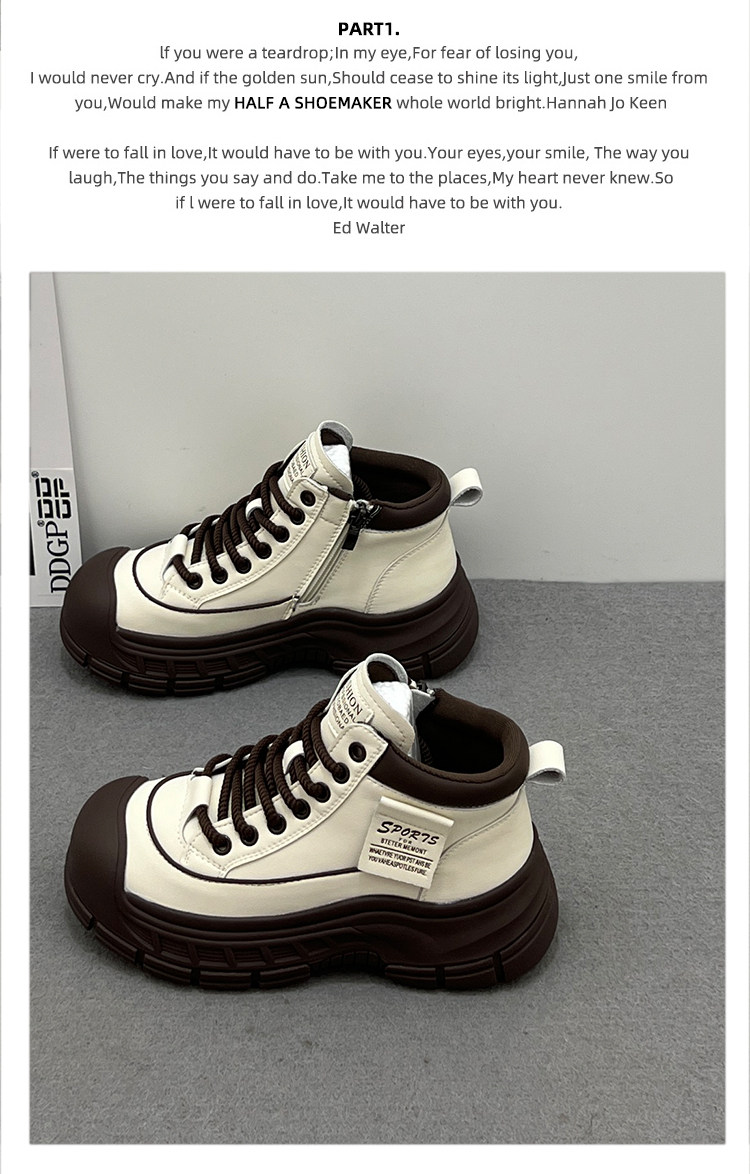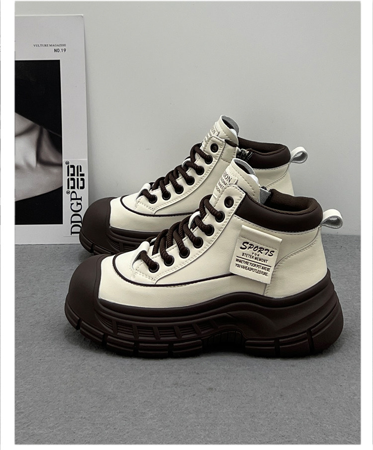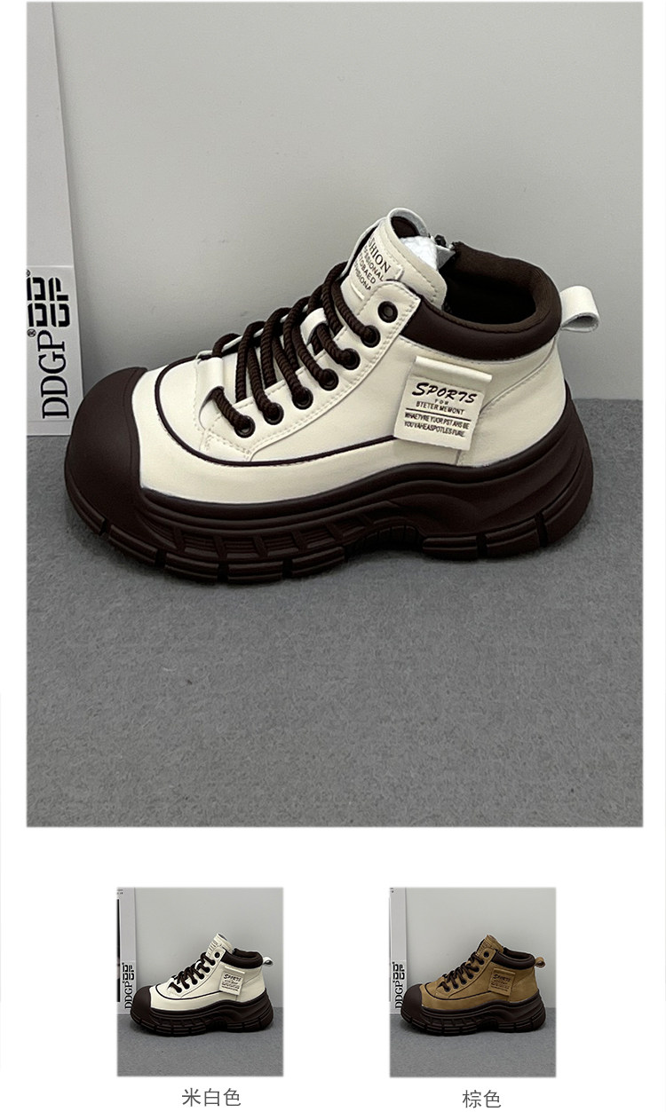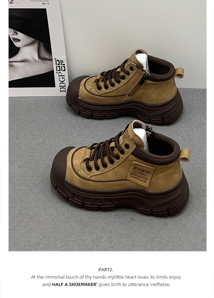 Hong Kong Genuine Leather Thick-Soled Height-Increasing High-Top Shoes for Women 2025 Spring and Autumn Fleece-Lined Short Boots Versatile Martin Boots Casual Sneakers