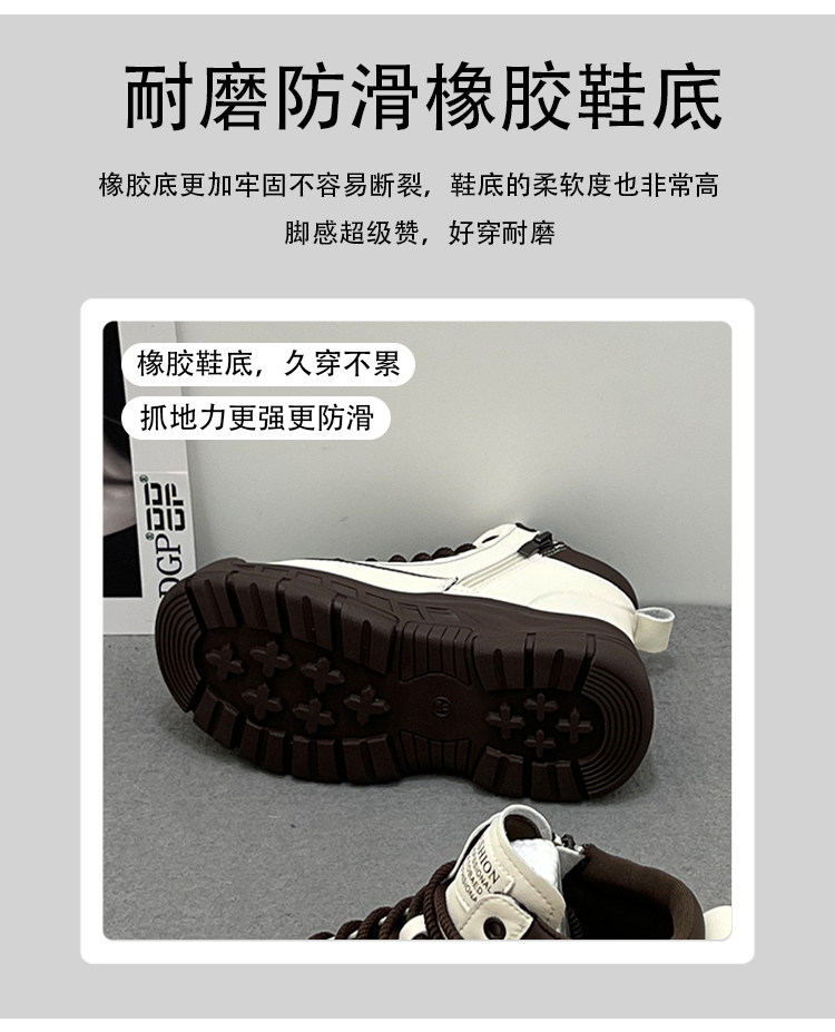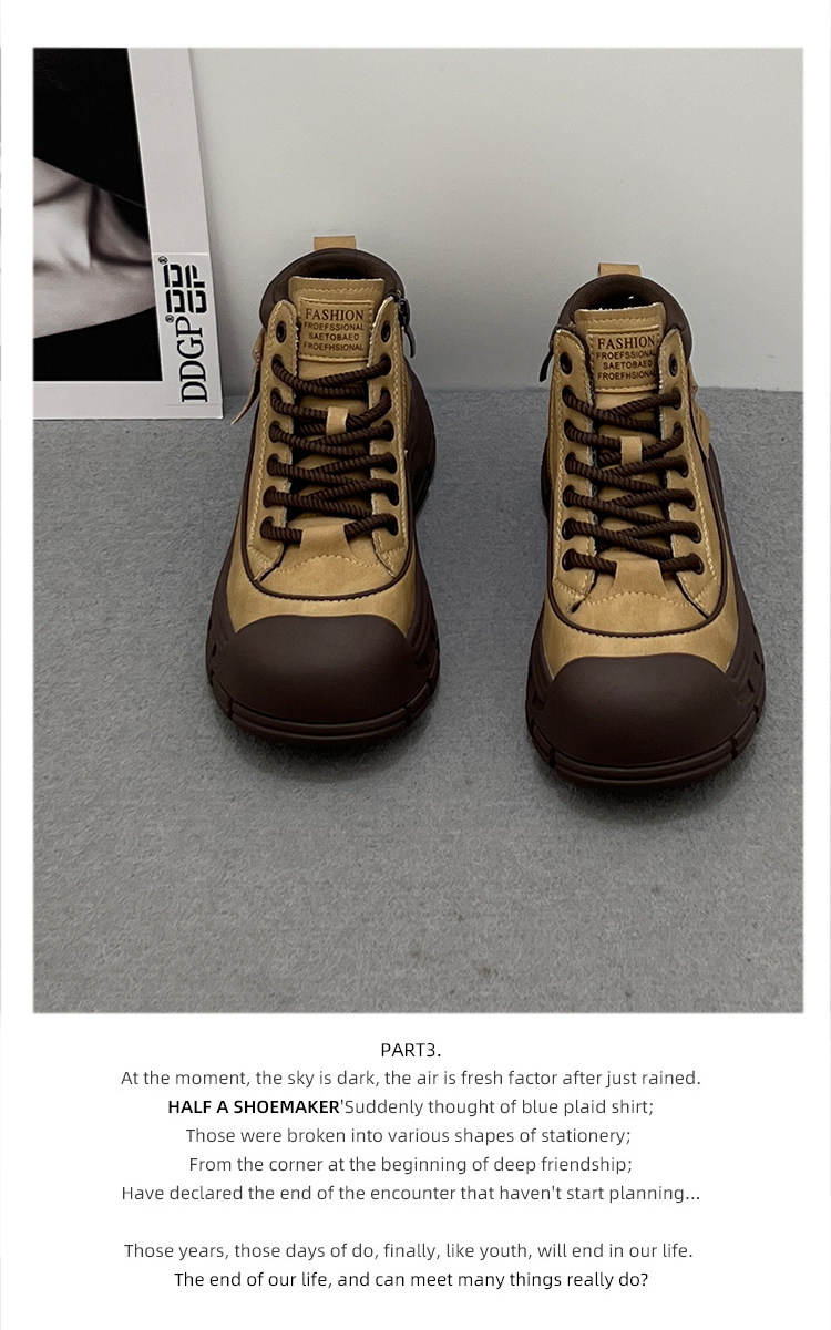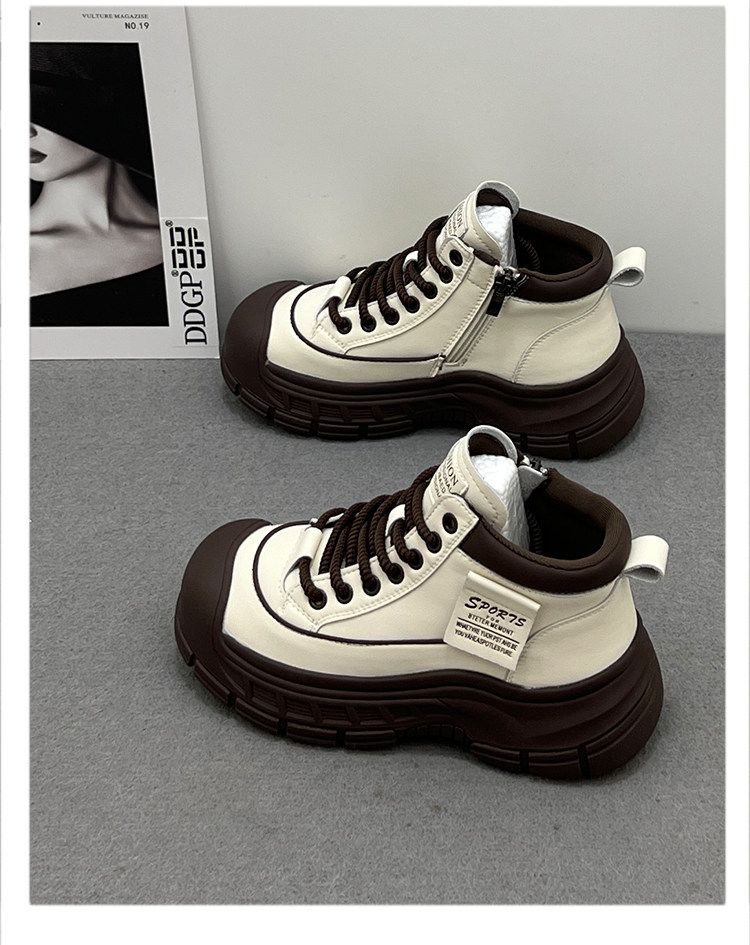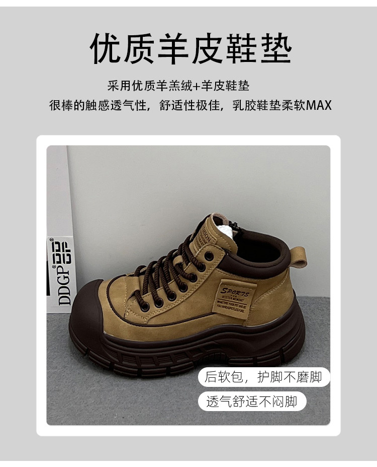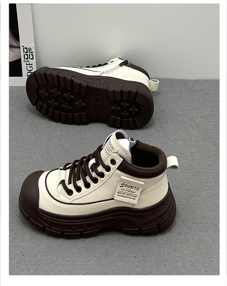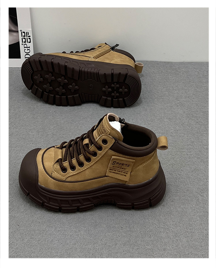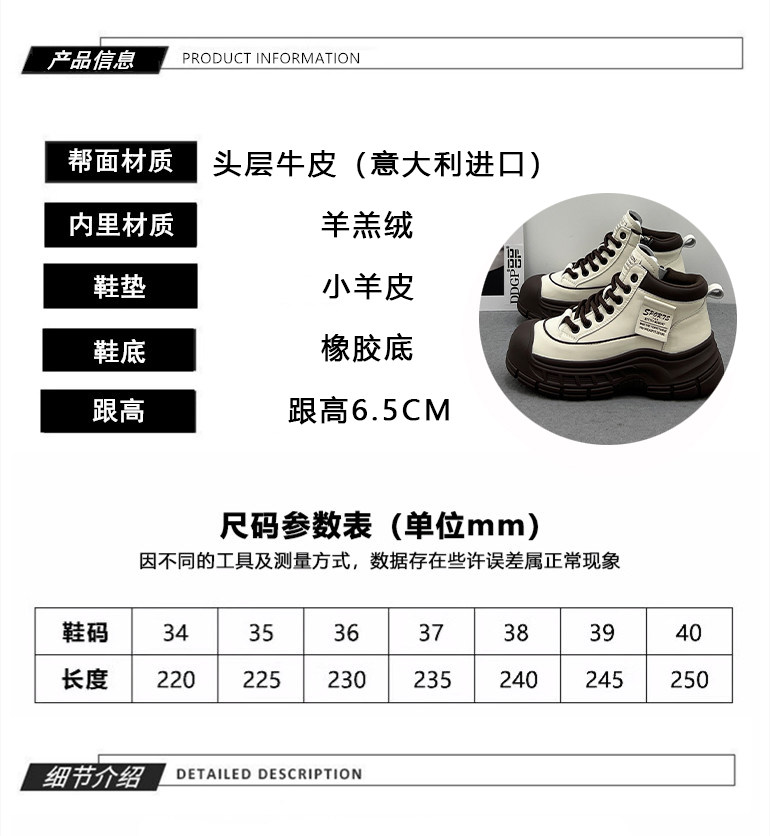 Hong Kong Genuine Leather Thick-Soled Height-Increasing High-Top Shoes for Women 2025 Spring and Autumn Fleece-Lined Short Boots Versatile Martin Boots Casual Sneakers