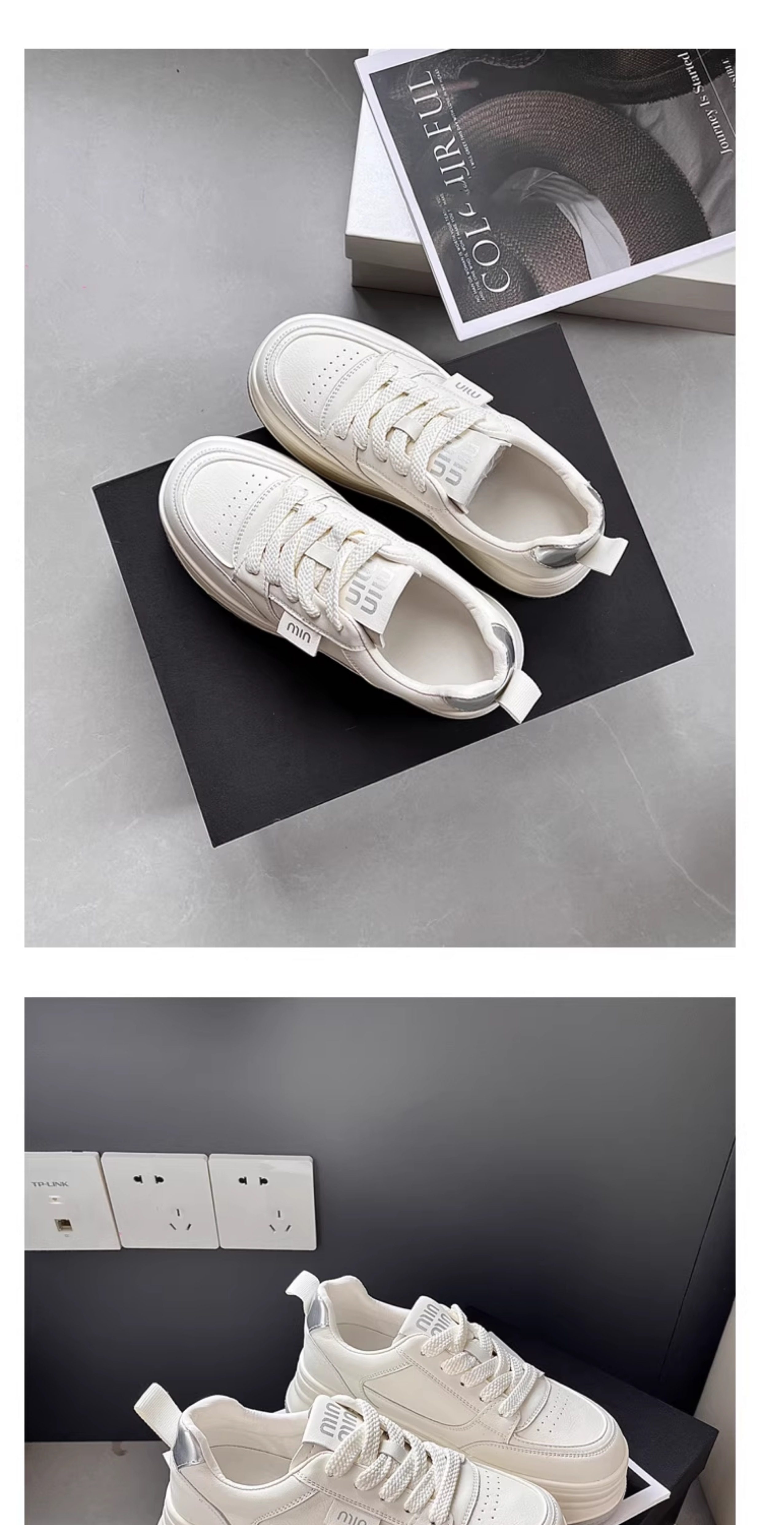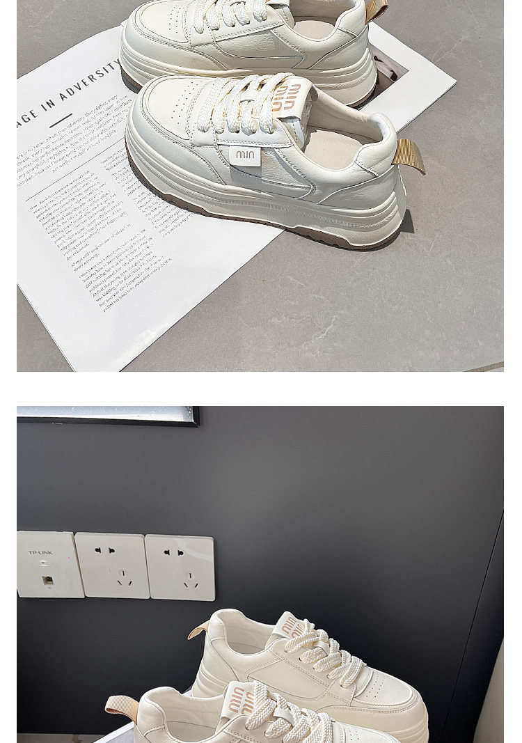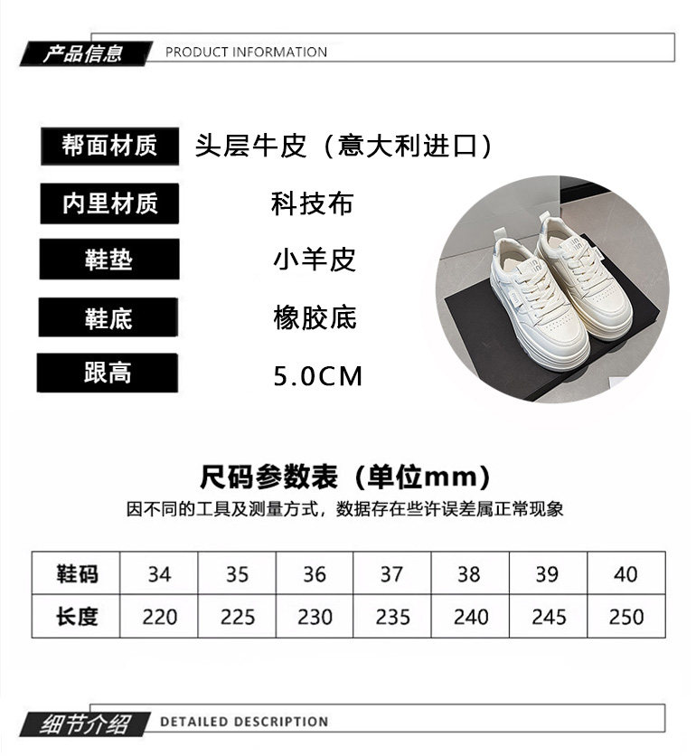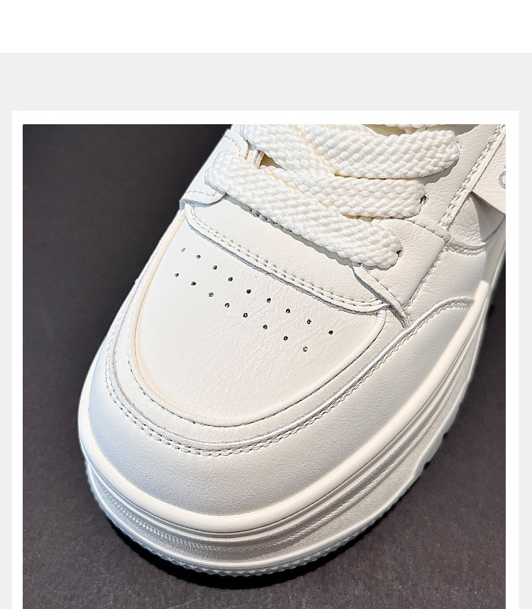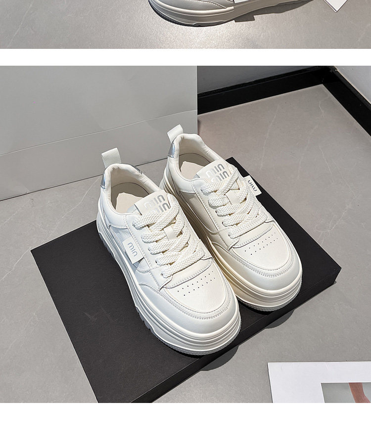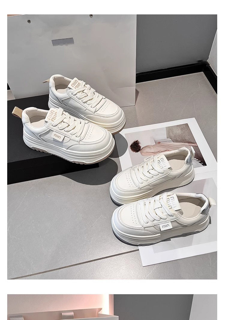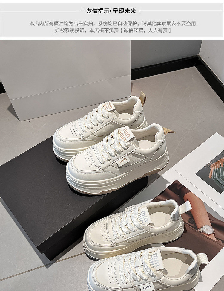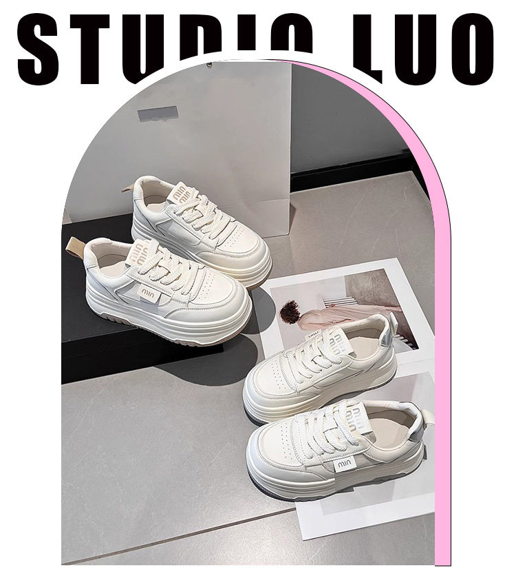 Hong Kong Genuine Leather Platform Shoes, White Sneakers for Women, 2025 Spring and Autumn New Versatile Thick-Soled Height-Increasing Casual Sneakers for Petite Individuals