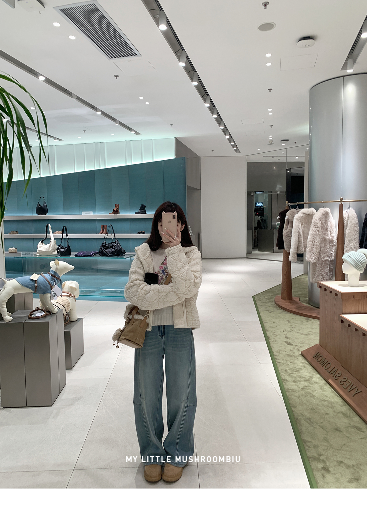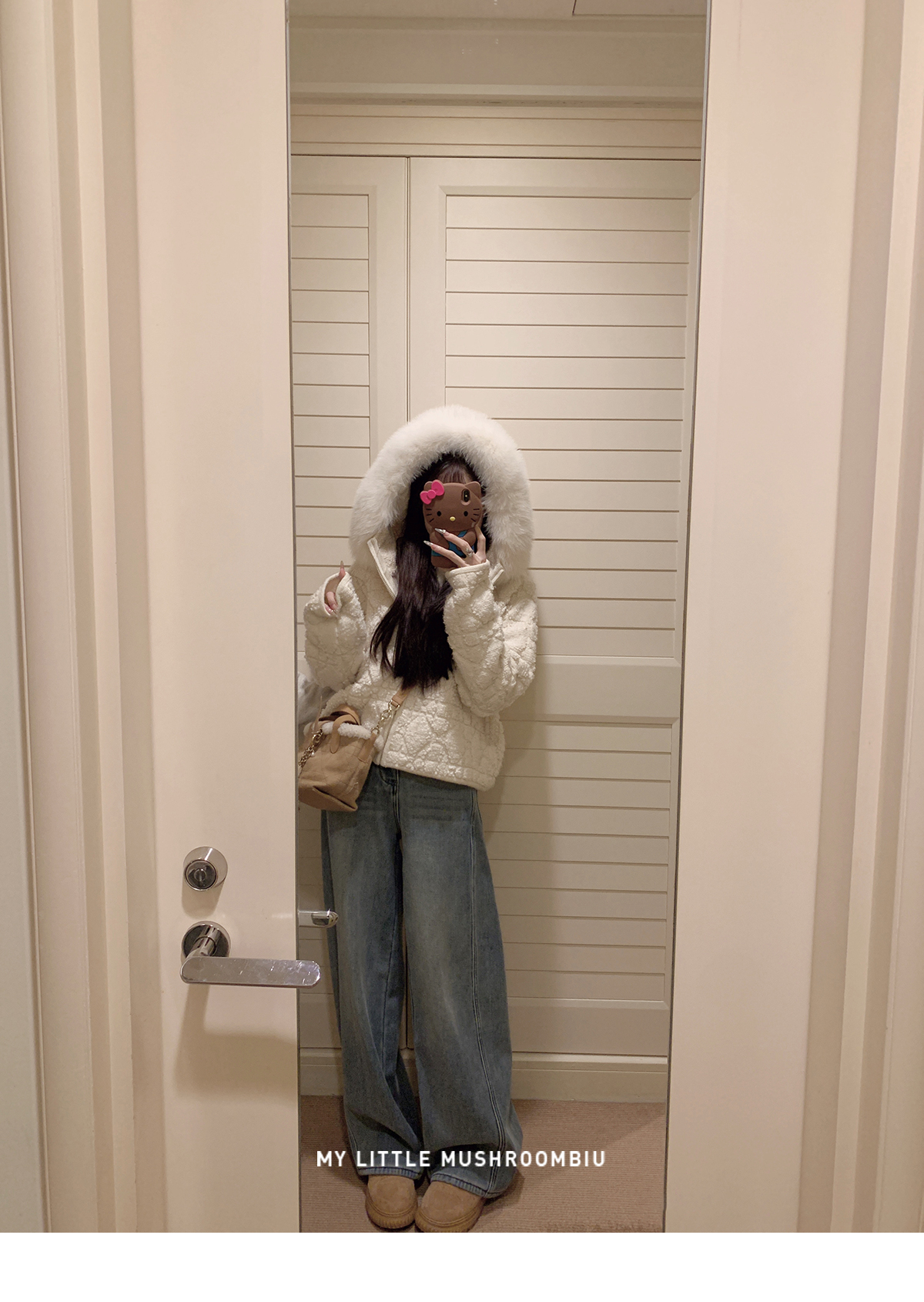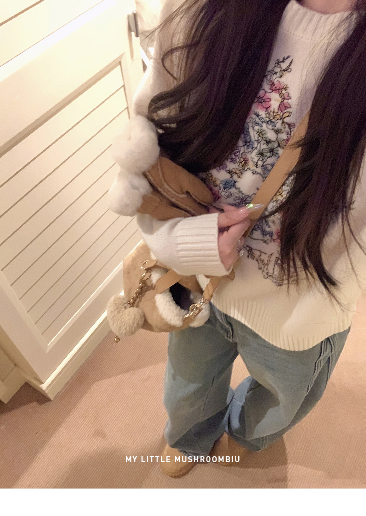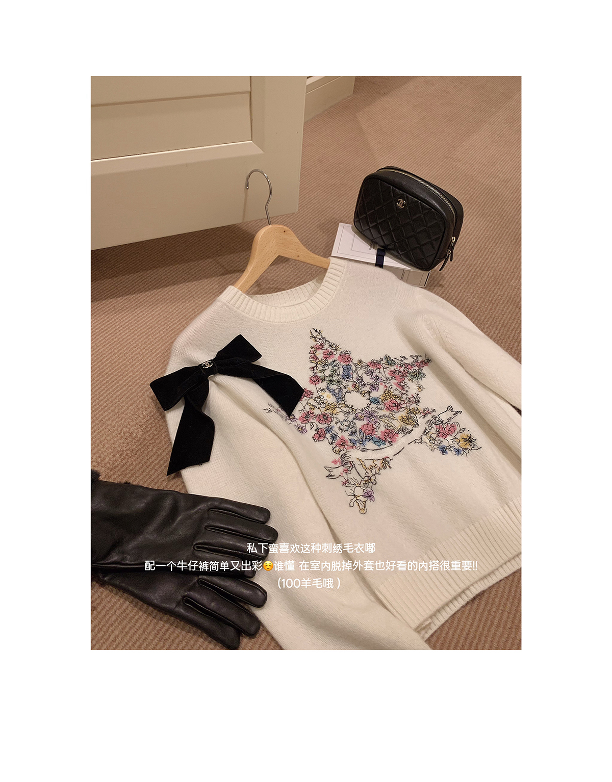 星星:100%绵羊毛 小白花:49.2%锦纶28.0%聚酯纤维22.8%绵羊毛(含微量其他纤维 毛领:狐狸毛 |