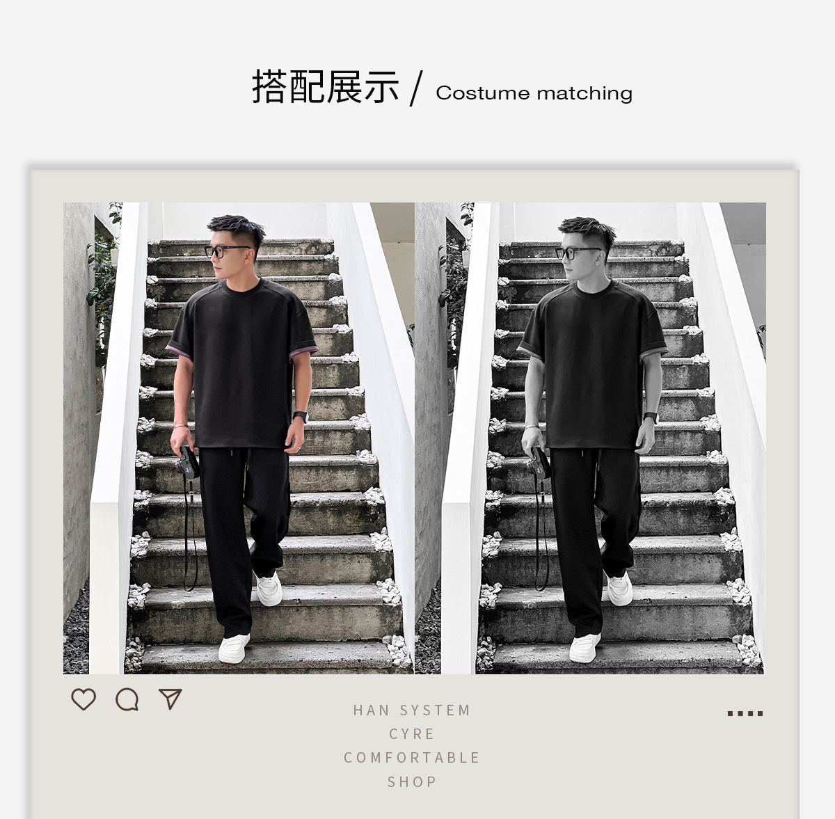 No. 22 Outfit [Modal Two-Tone Jelly Cotton] Summer Cool Breathable Flowy Short-Sleeve T-Shirt for Men