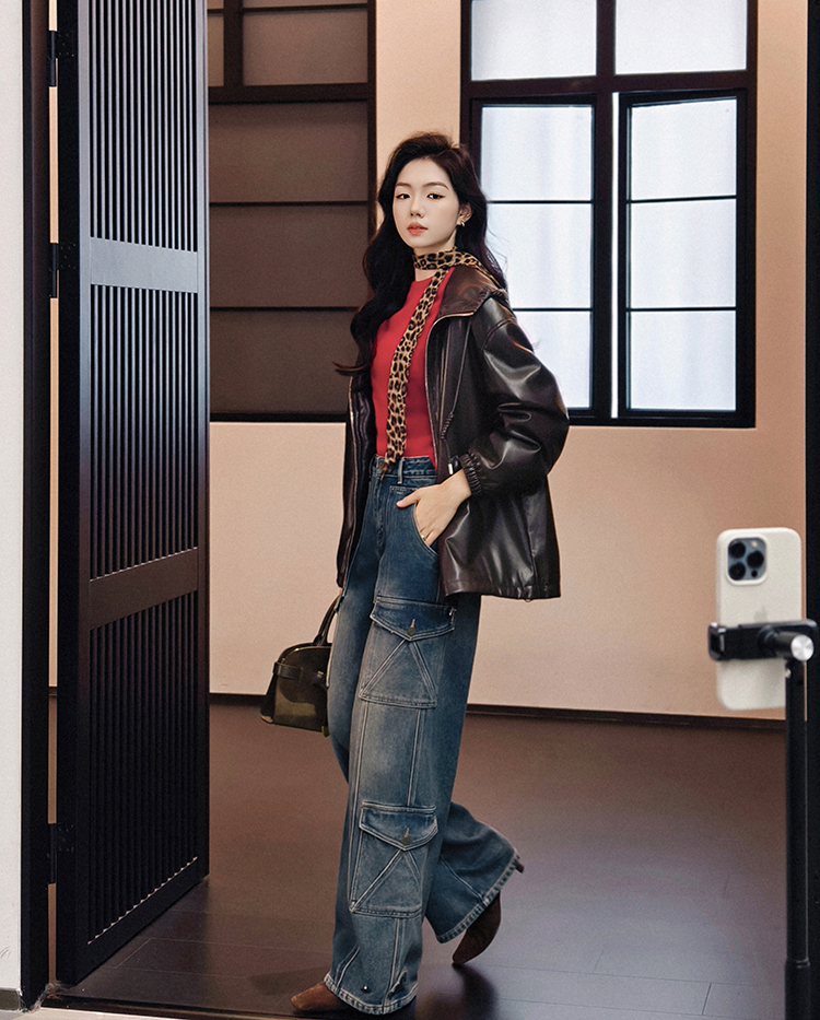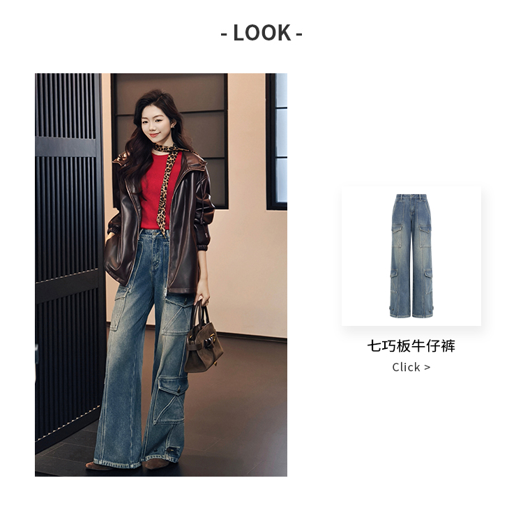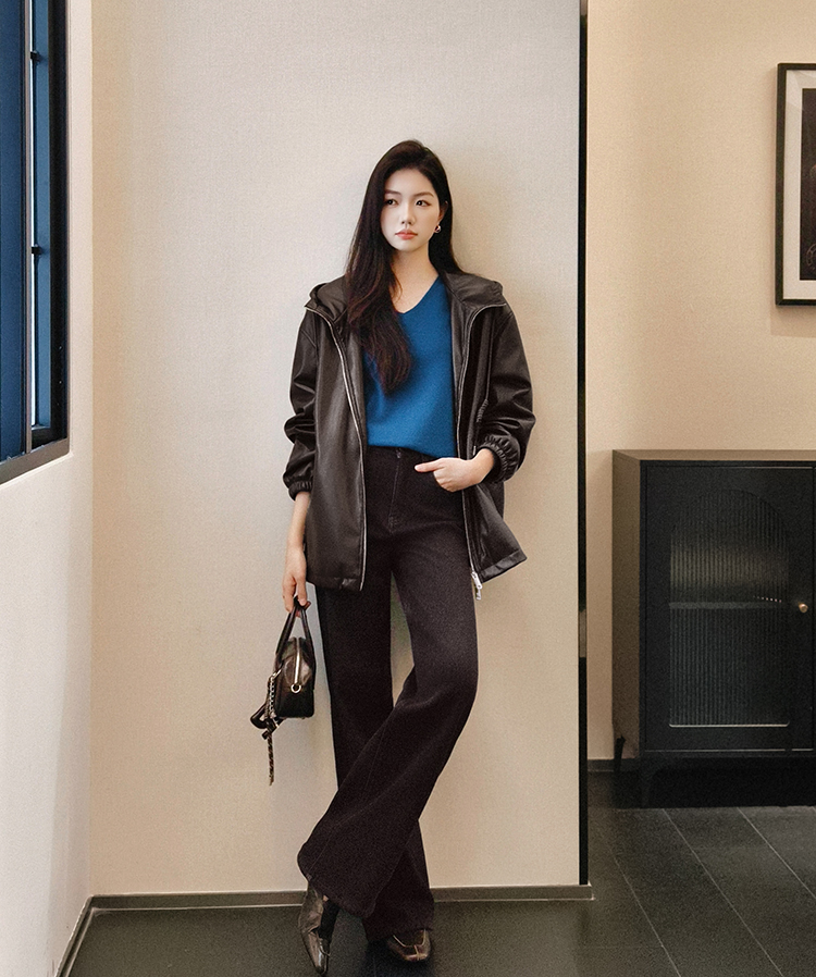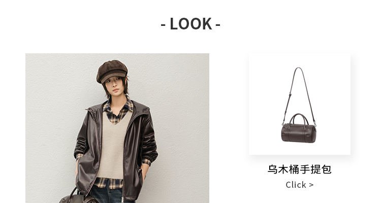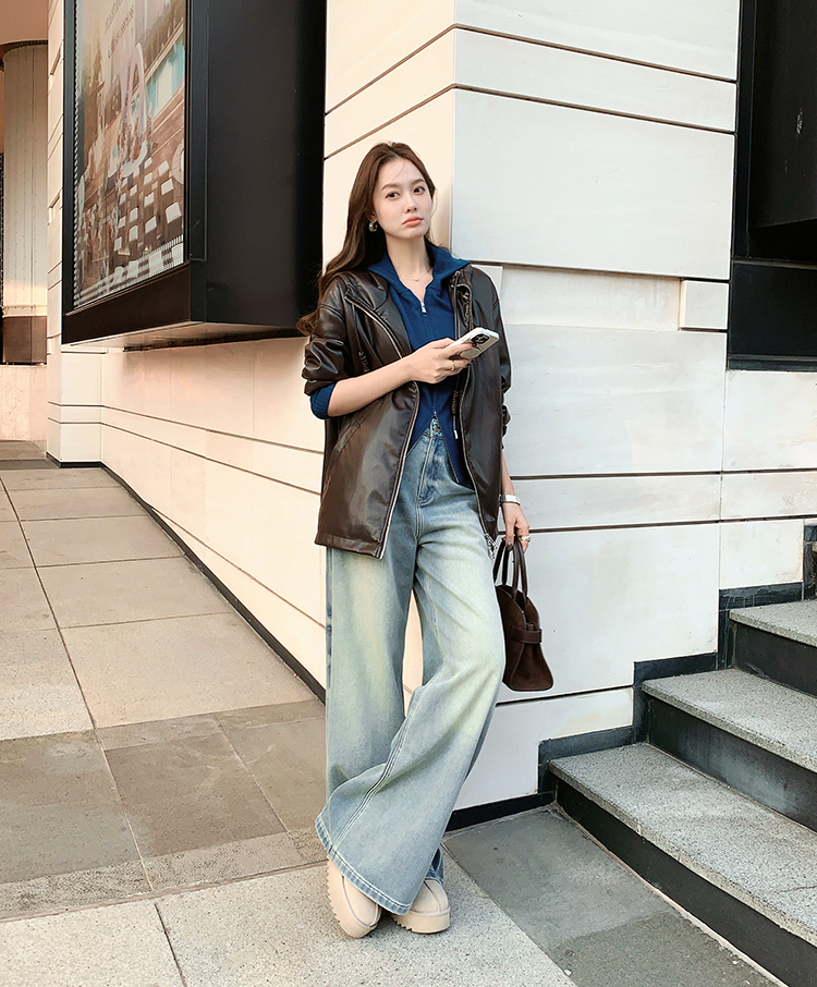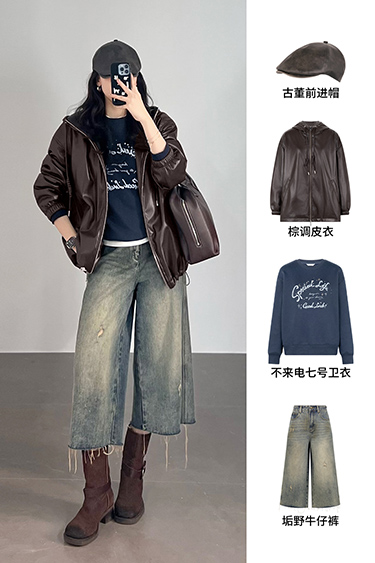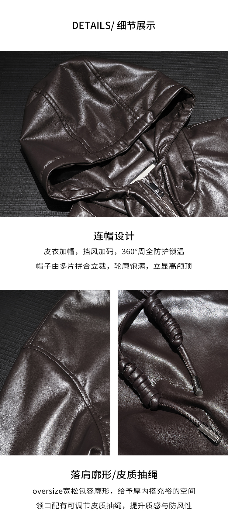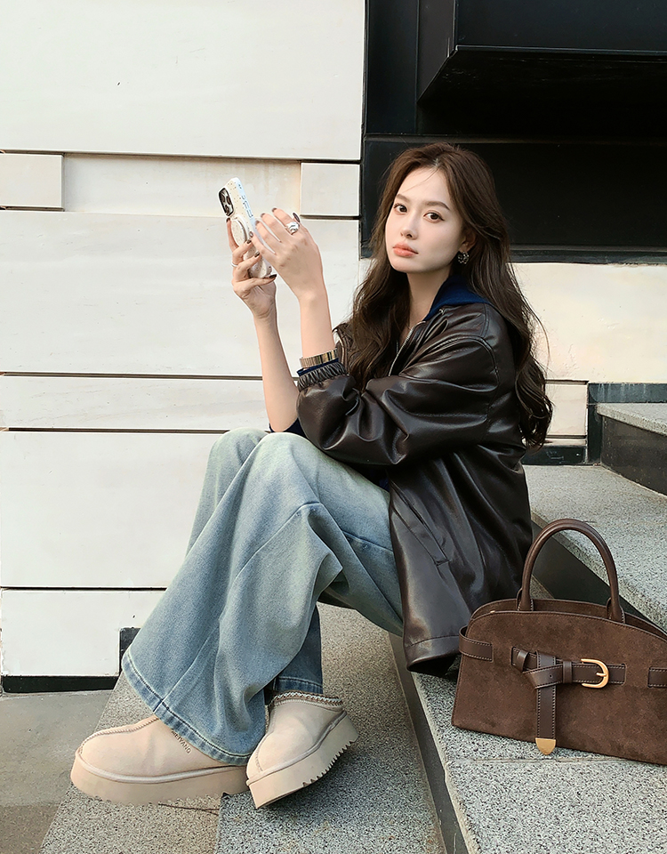 Meiyang Brown Leather Jacket Amber Flow~ Protein Leather Quilted Cotton Warm Hooded Jacket [Wide]