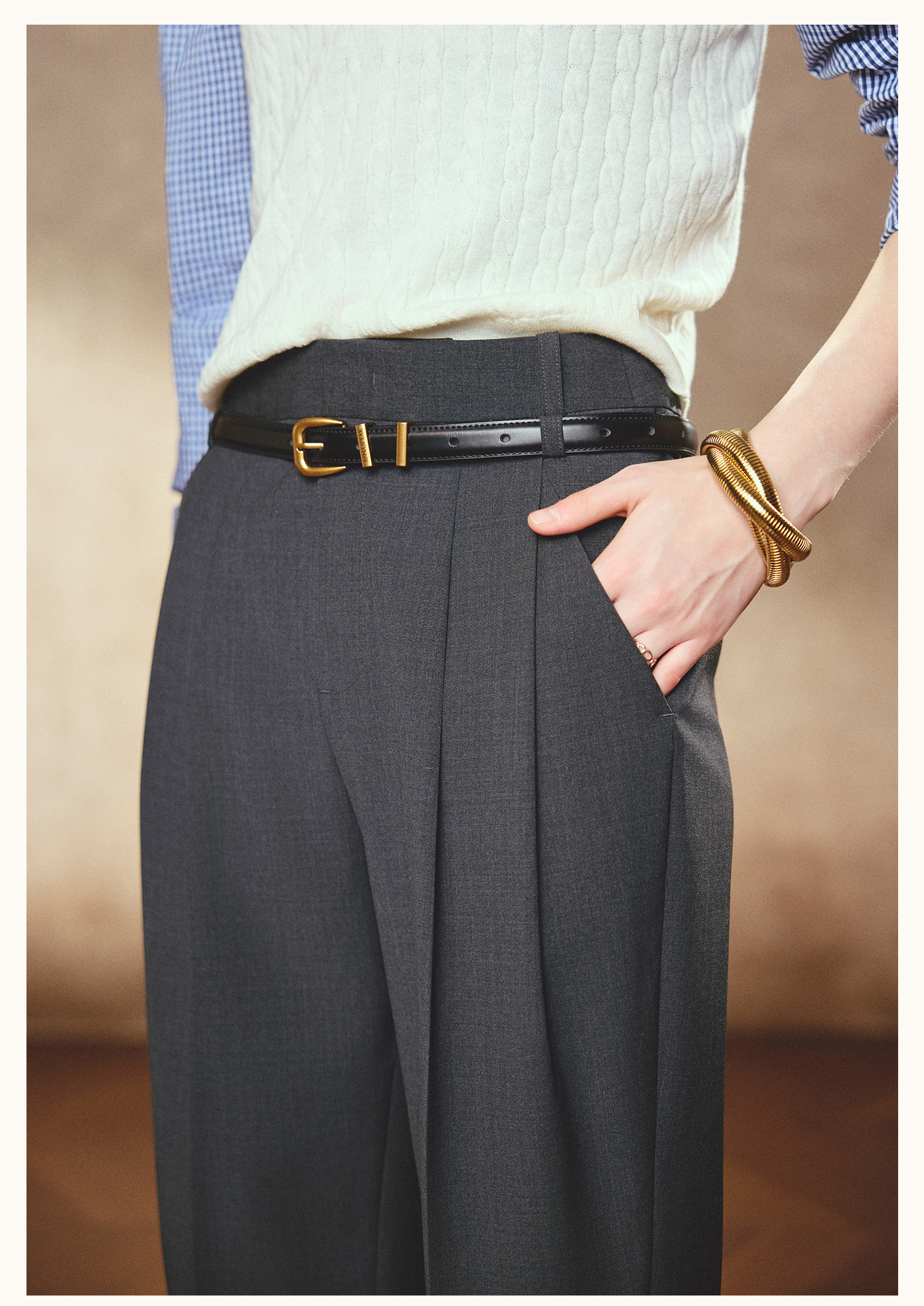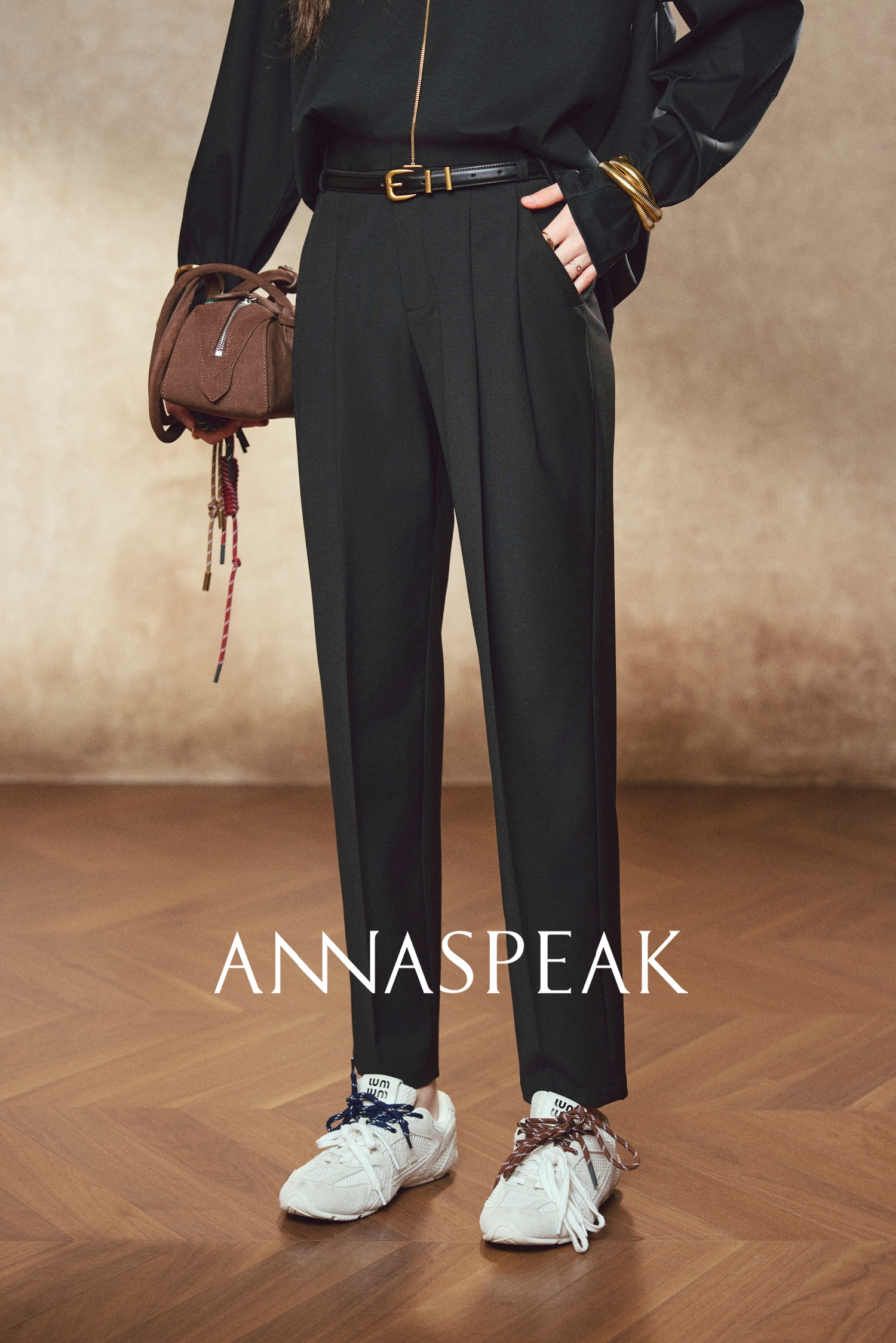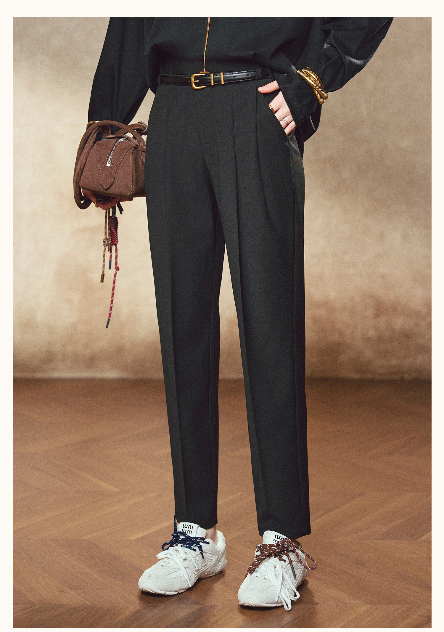 Annaspeak Ace Classic Style Skin-Friendly Non-Itchy Mercerized Worsted Wool Machine Washable Nine-Point Cigarette Pants