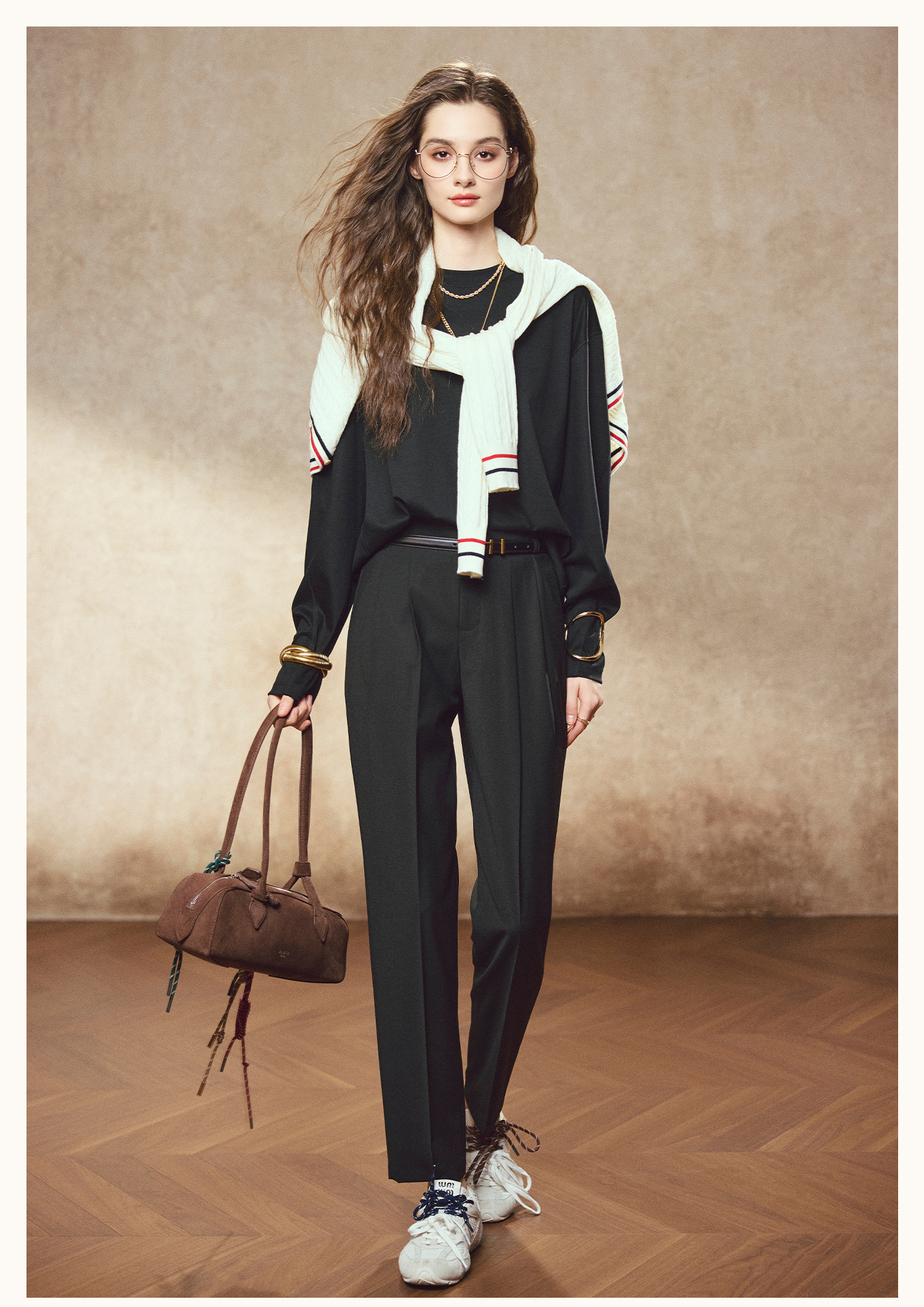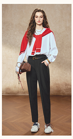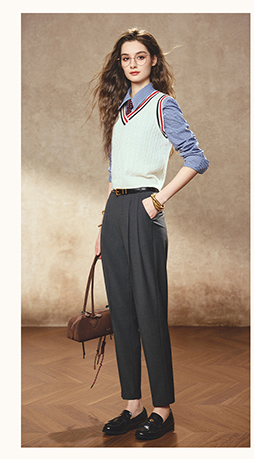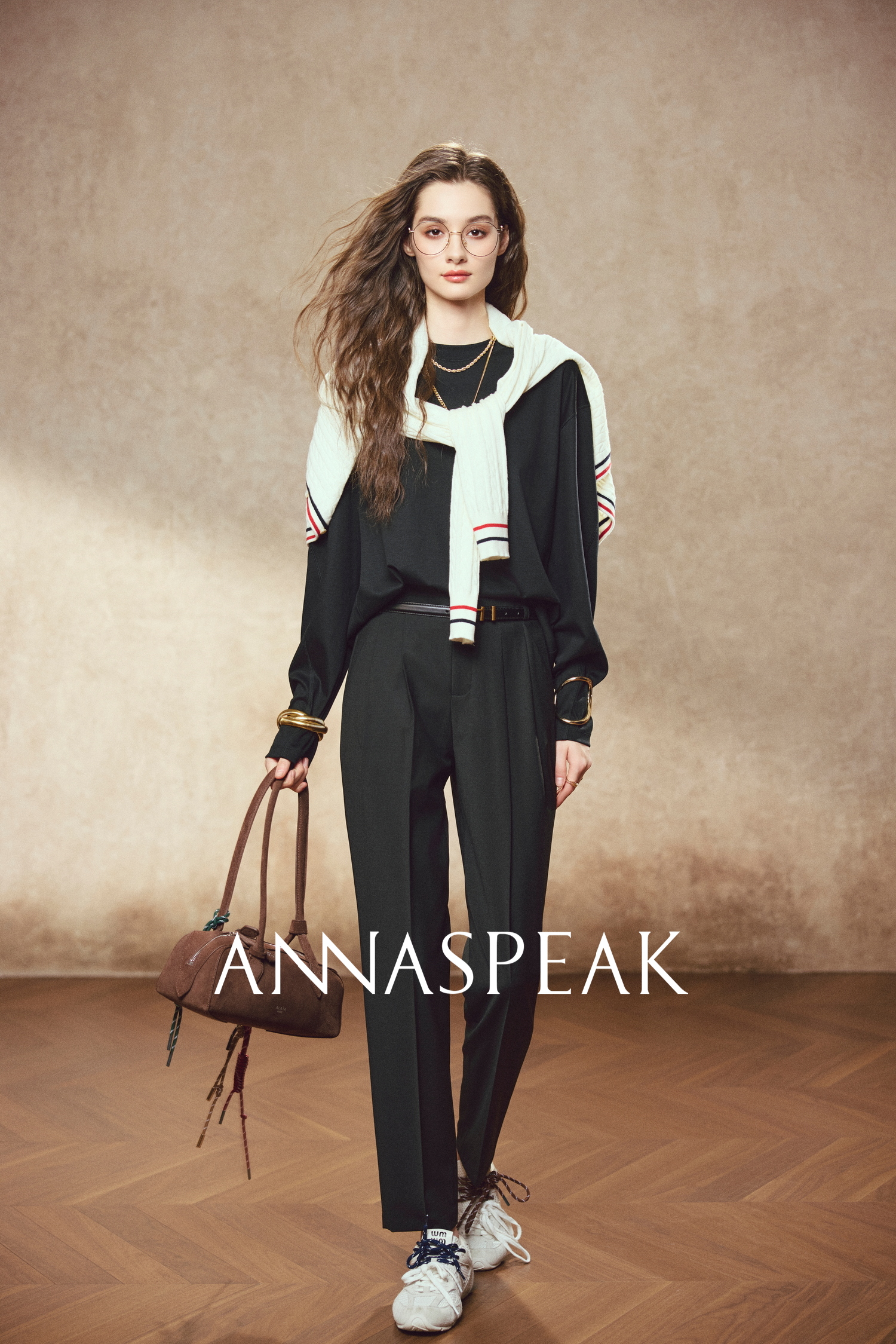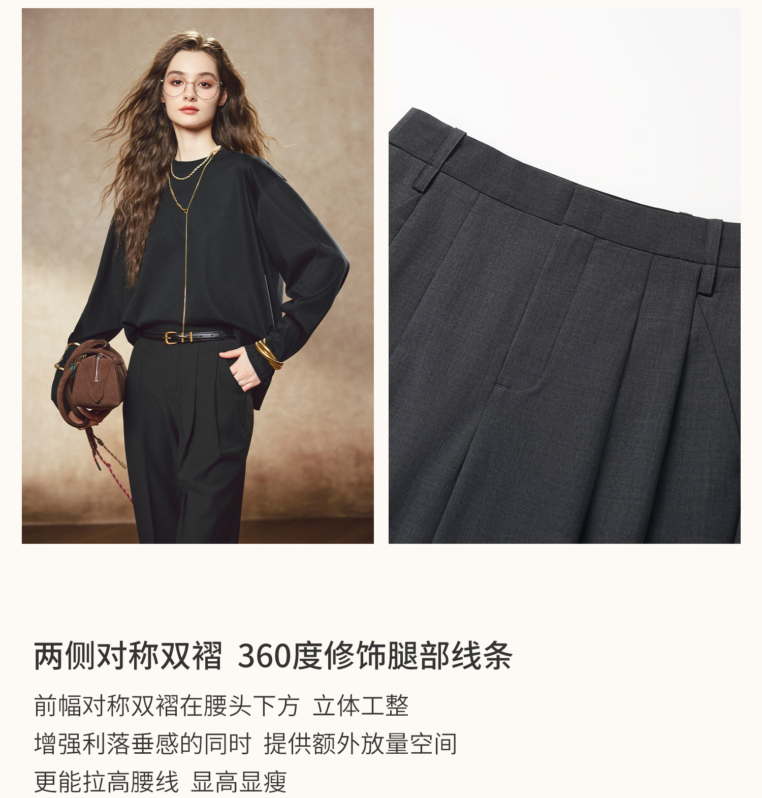 Annaspeak Ace Classic Style Skin-Friendly Non-Itchy Mercerized Worsted Wool Machine Washable Nine-Point Cigarette Pants