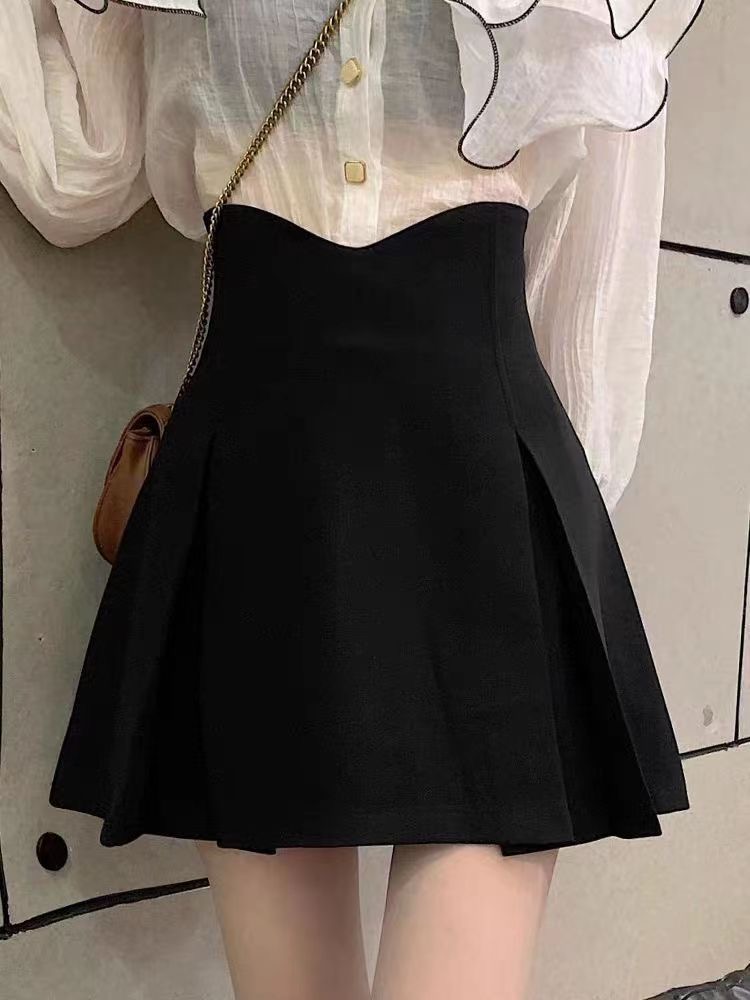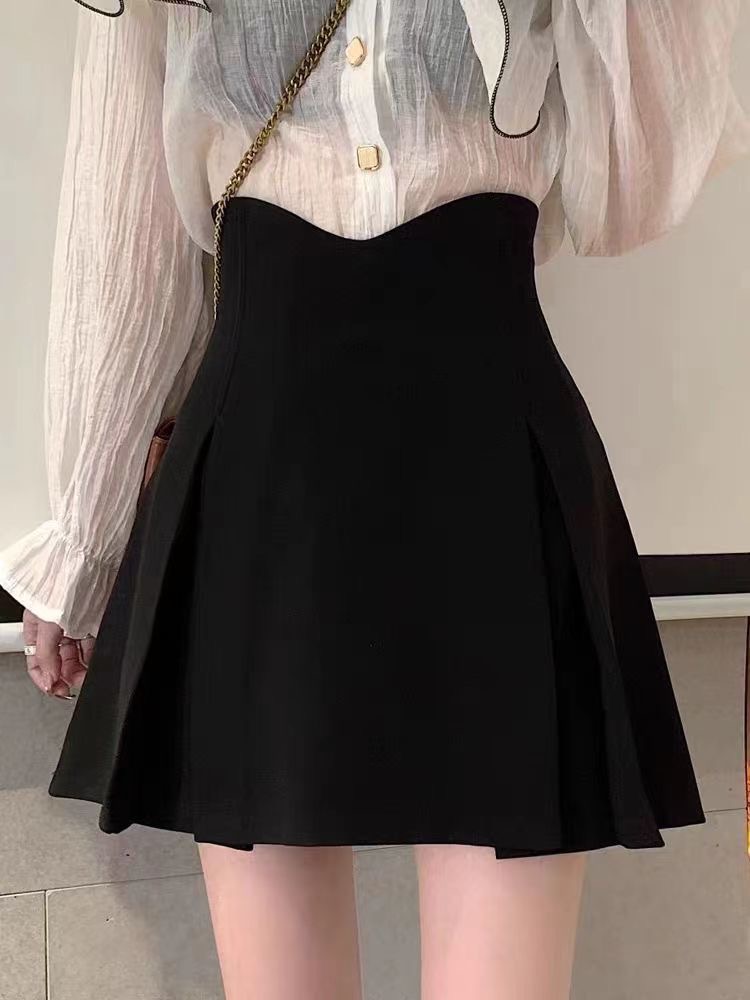 Black Asymmetrical Suit Skirt for Women, Spring Pear-Shaped Body, High-Waisted A-Line Short Skirt, Plus Size, Pleated Umbrella Skirt