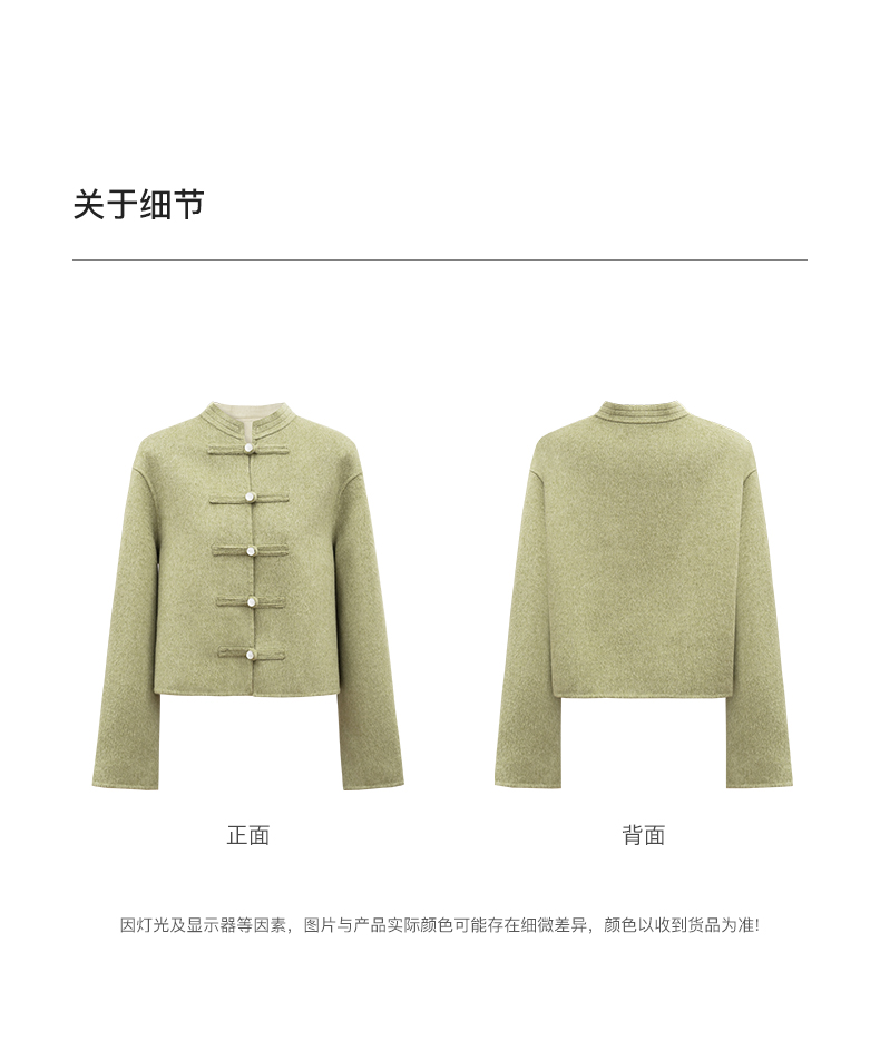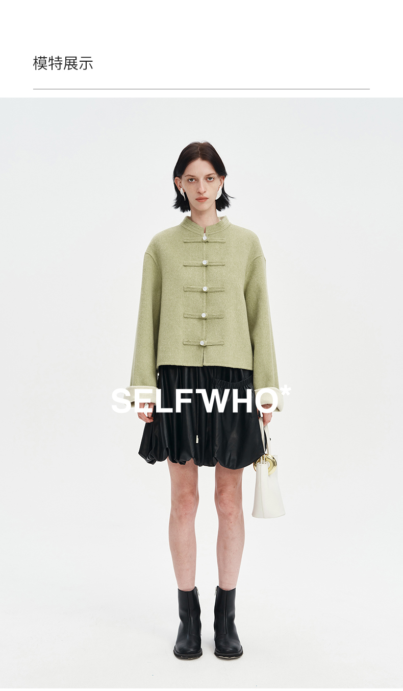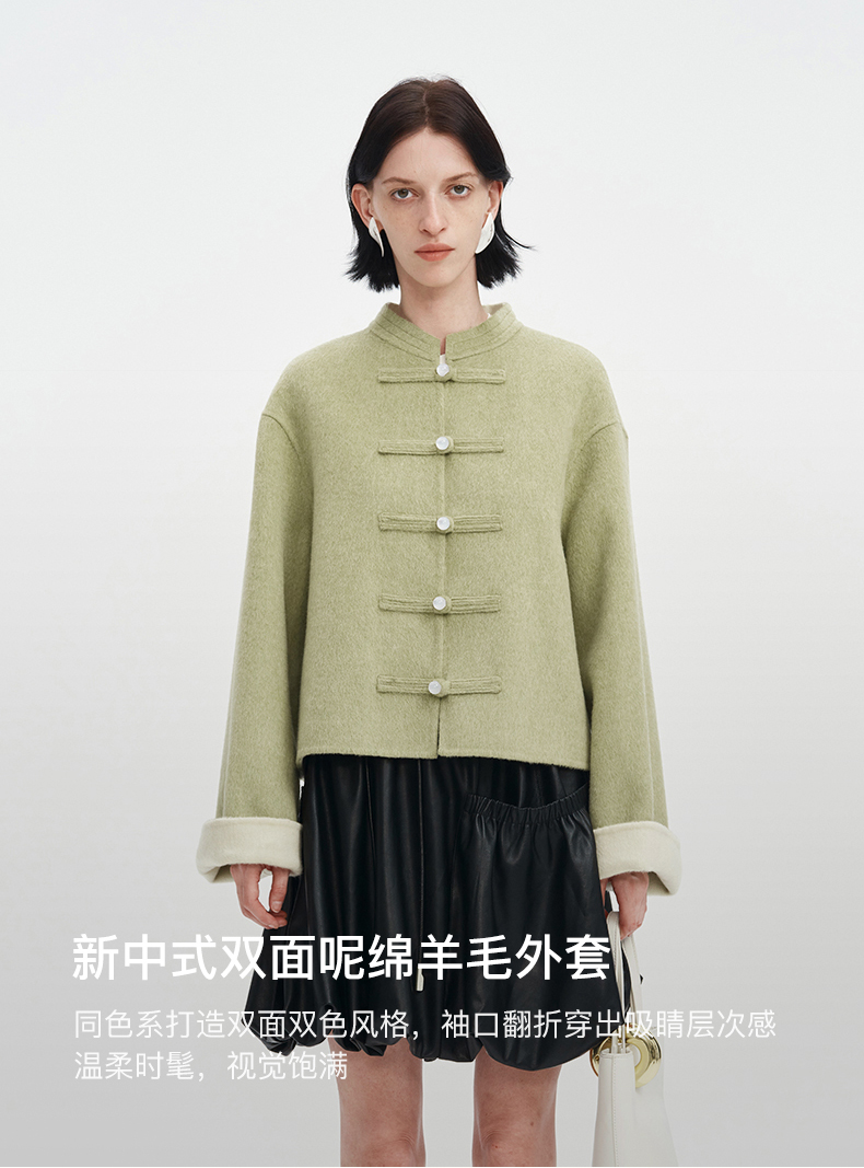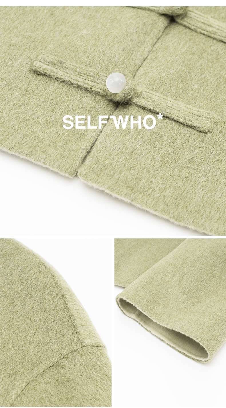 Selfwho Sheep Wool New Chinese Style Double-Sided Woolen Coat for Women, Winter New National Style Green Short Top