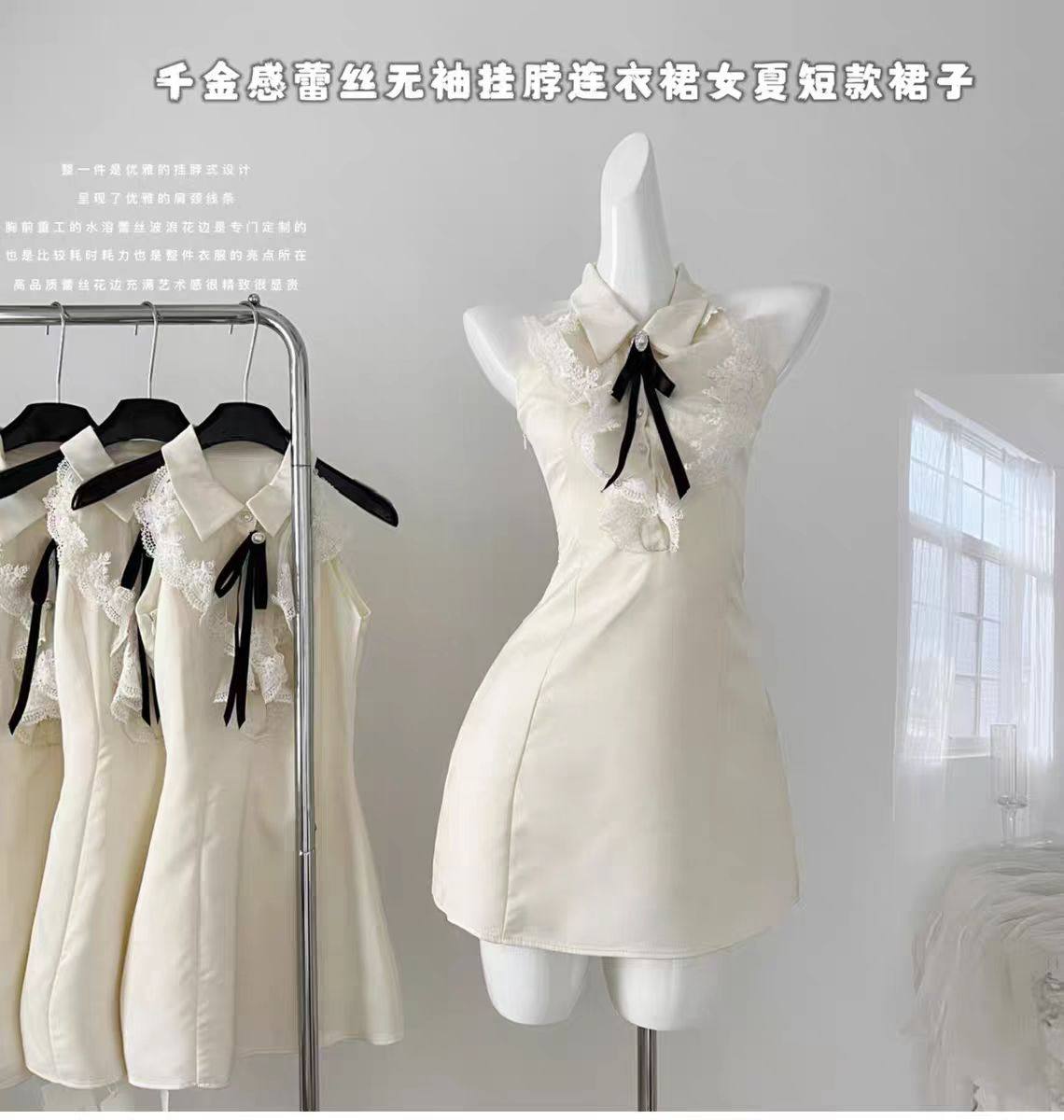 Let Me Shine: Ruth's Same Style, Elegant Lace Sleeveless Halter Neck Dress for Women, Summer Short Dress