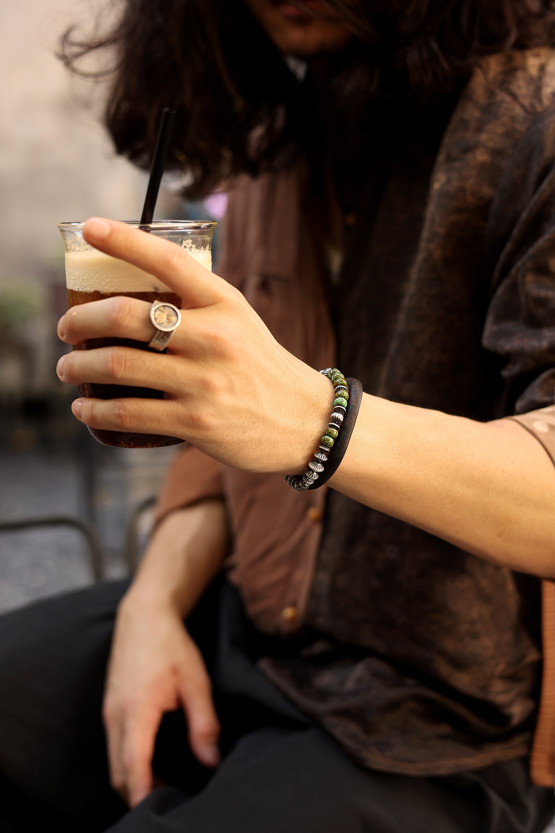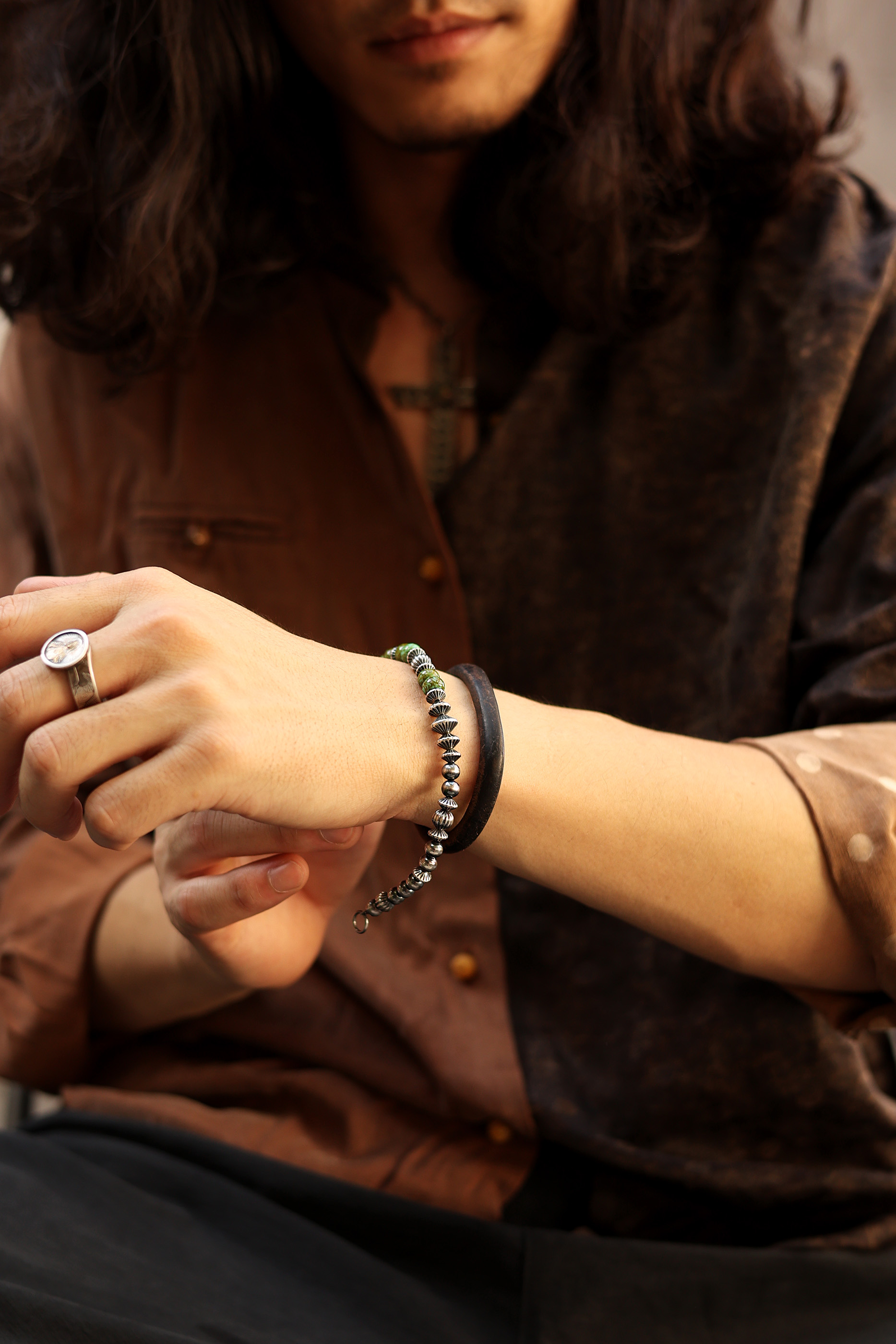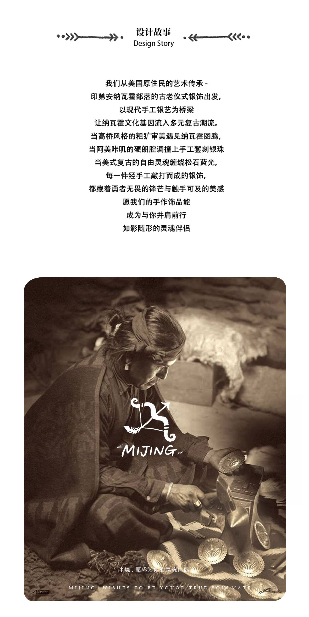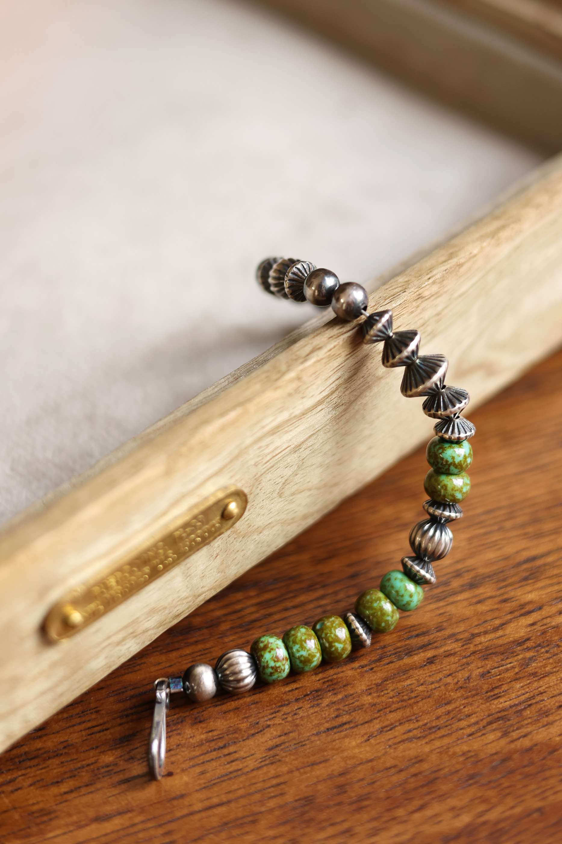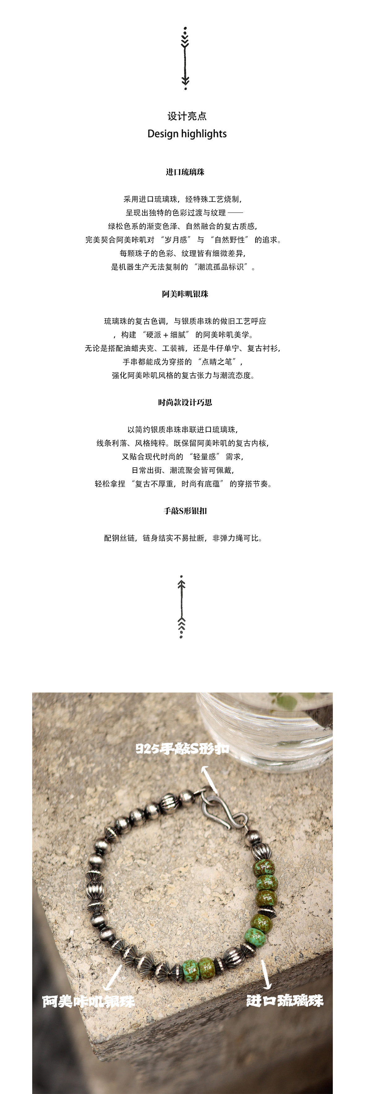 Mijing Original Design 925 Silver Bracelet Imported Glass Beads Ami Khaki Retro Bracelet Couple Gift