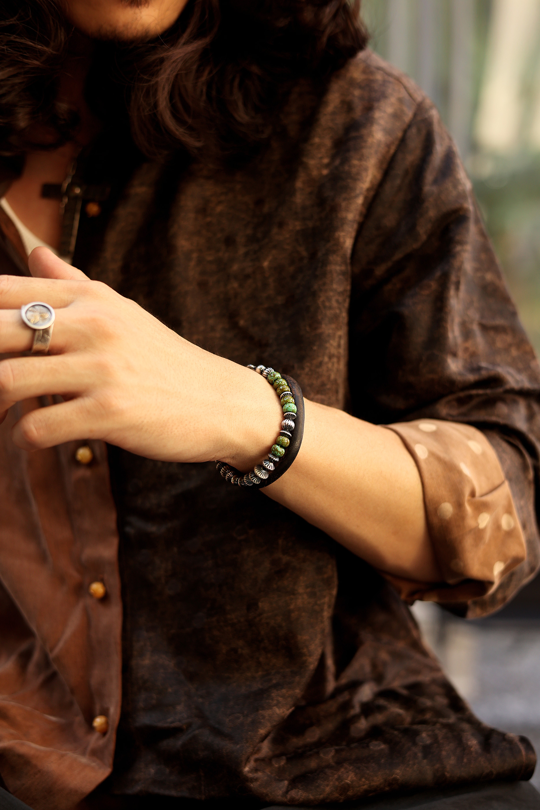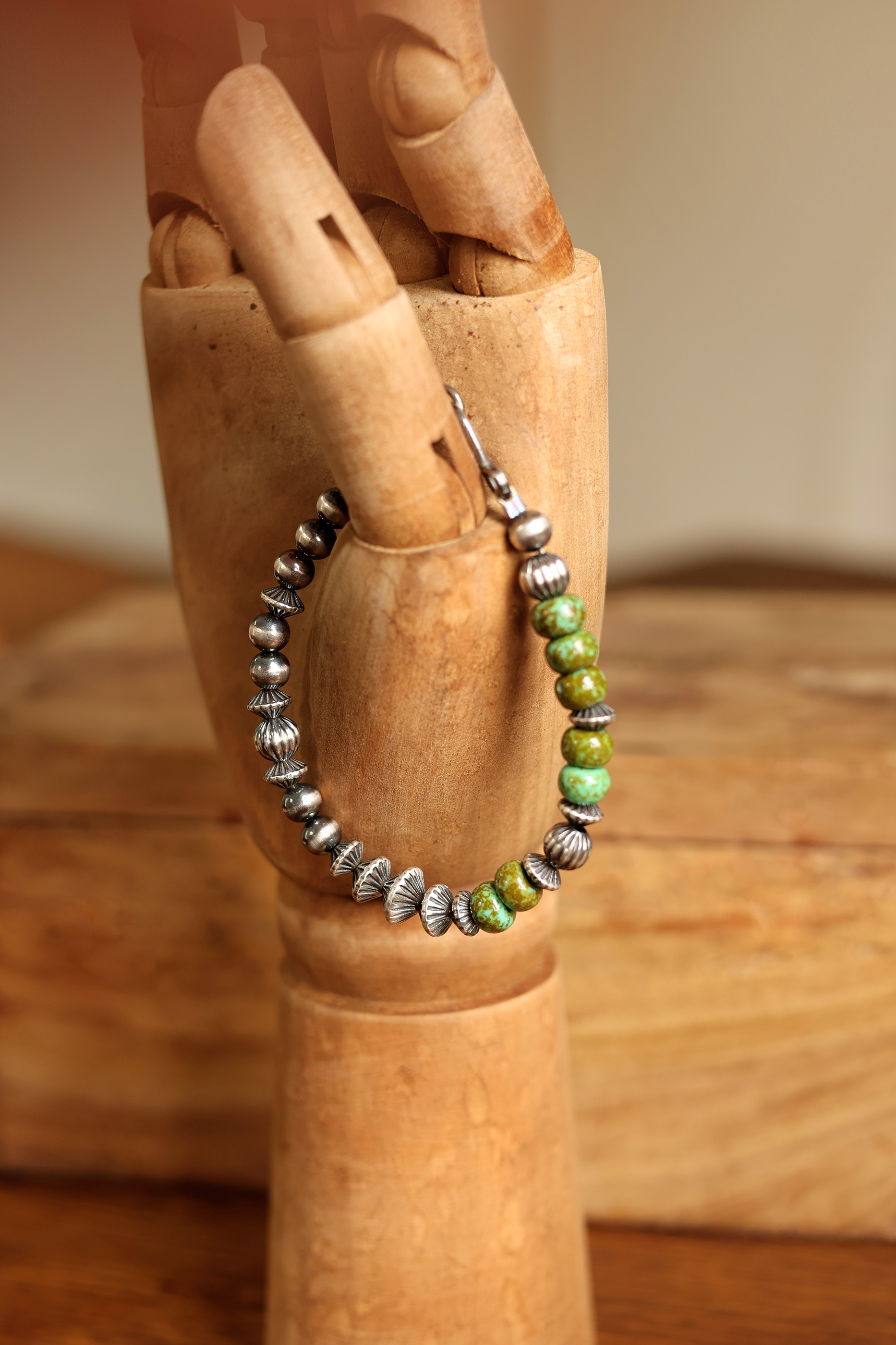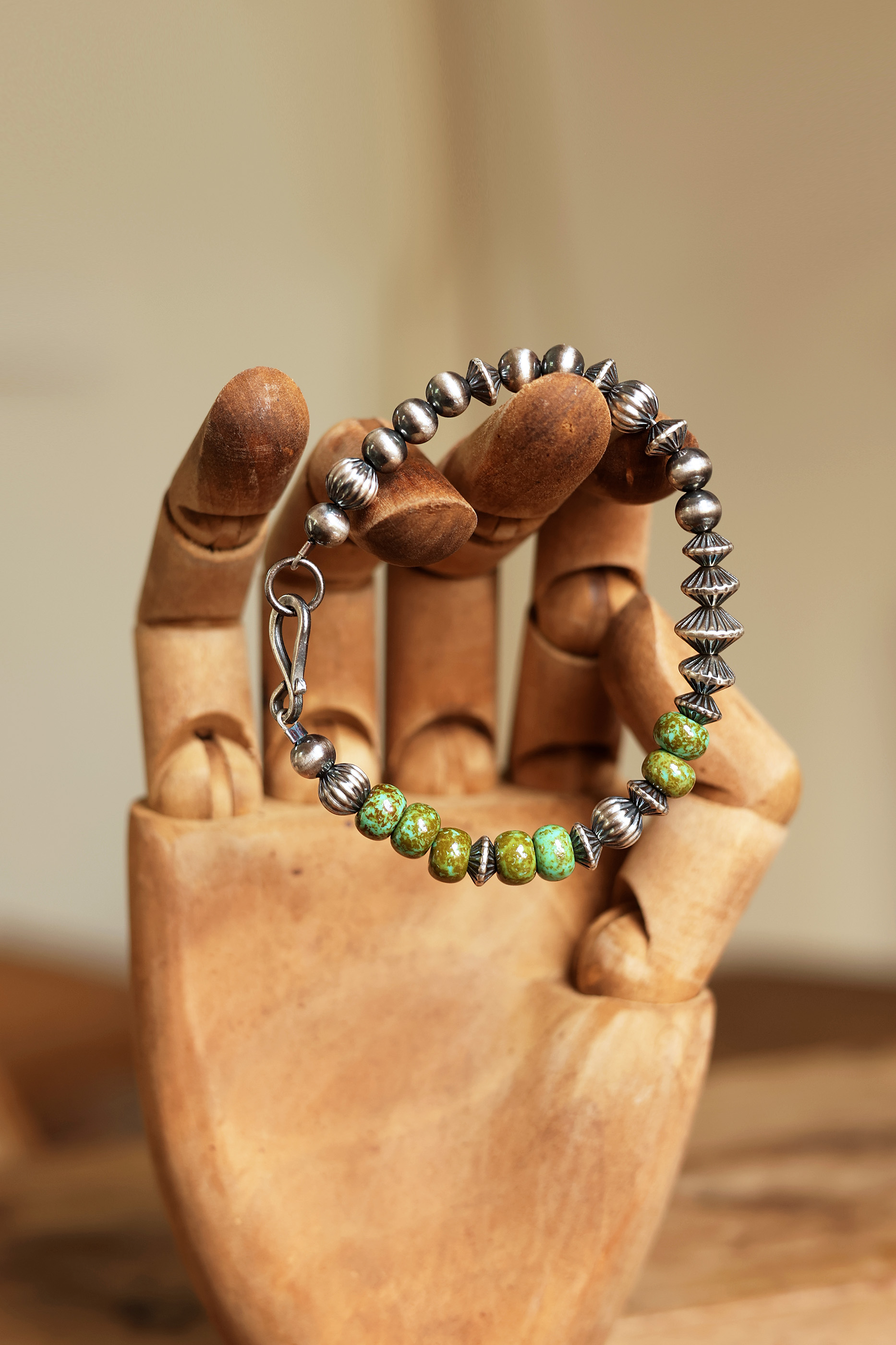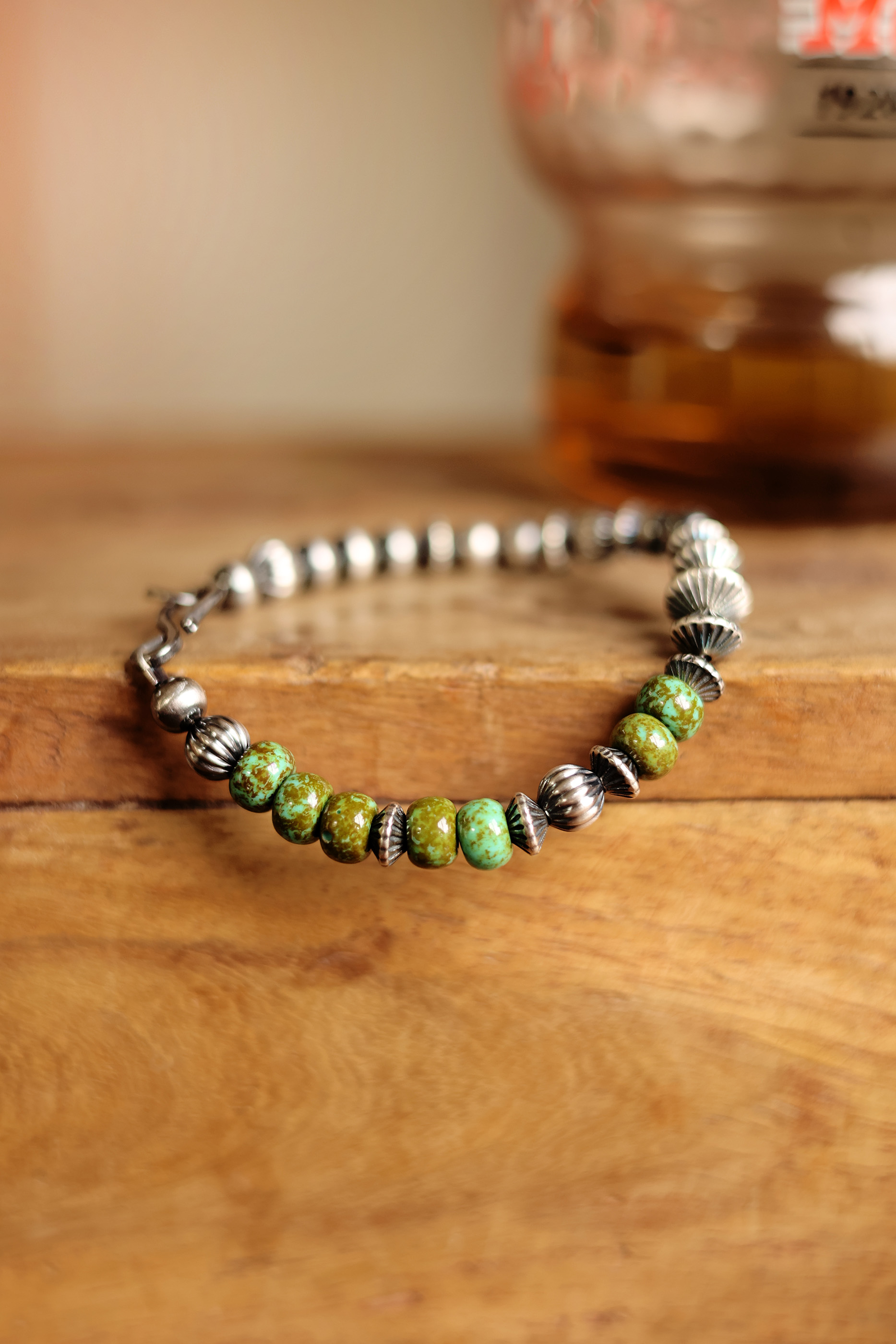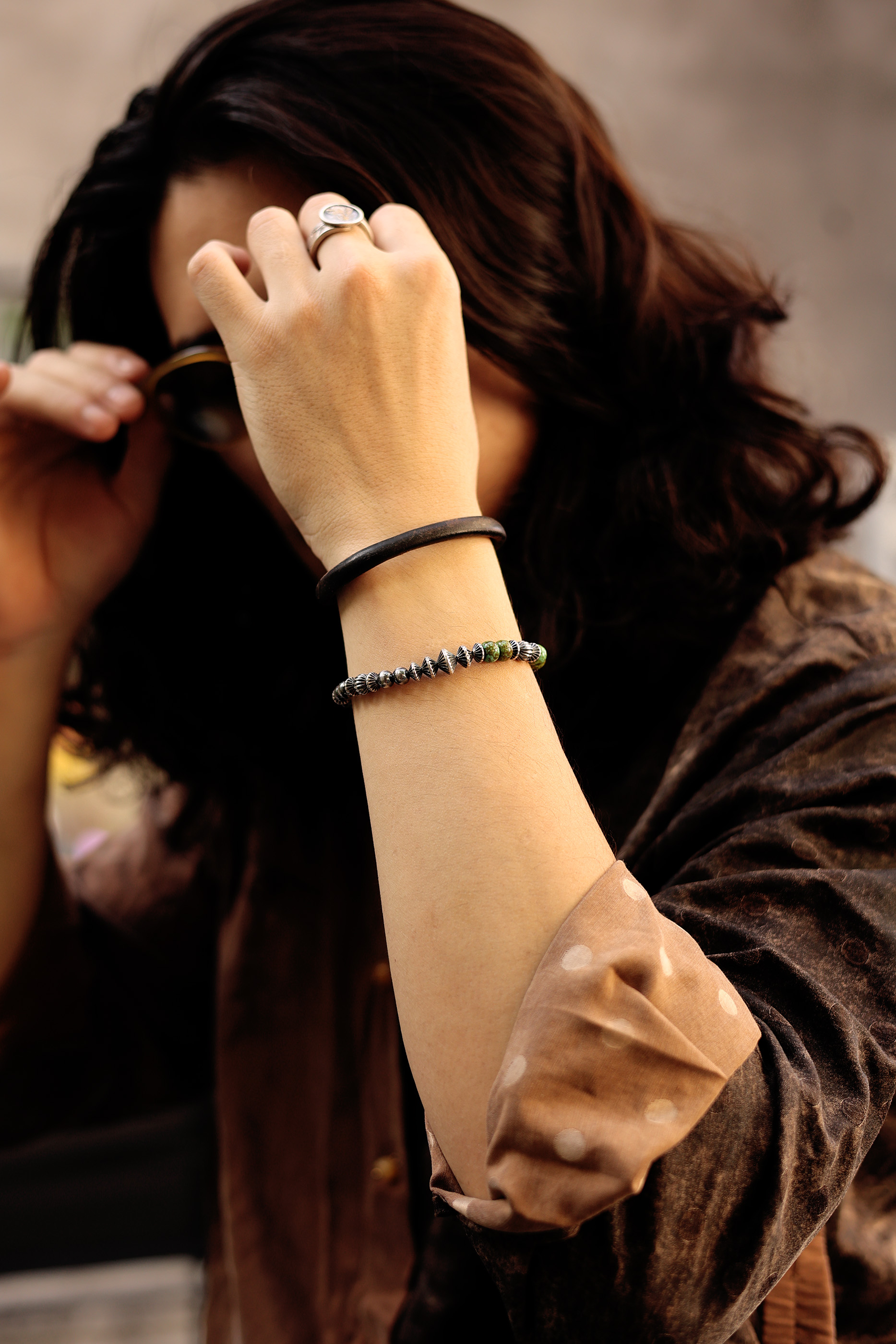 Mijing Original Design 925 Silver Bracelet Imported Glass Beads Ami Khaki Retro Bracelet Couple Gift