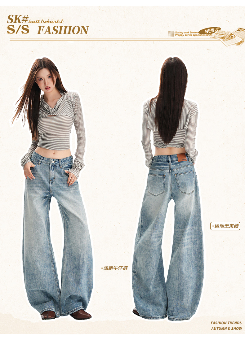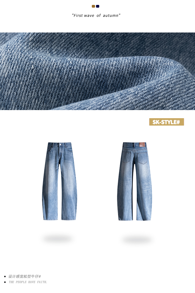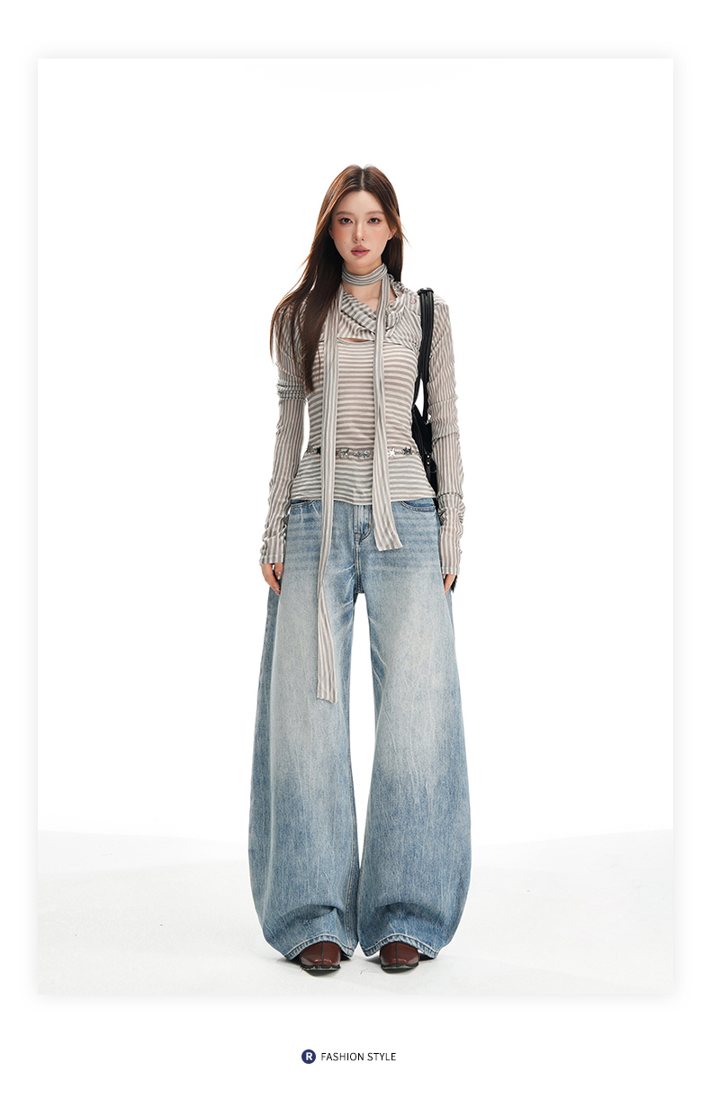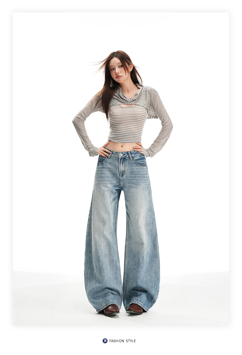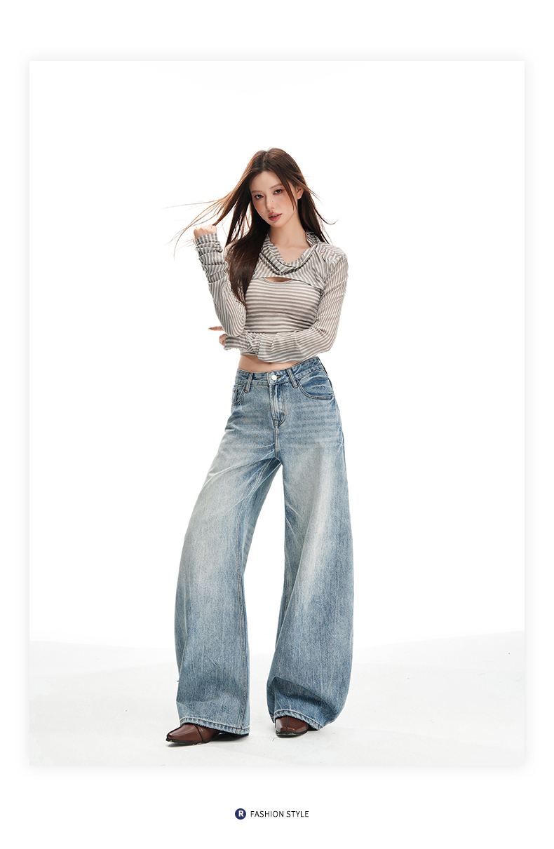 Light Blue Straight-Leg Jeans for Women, New Autumn Style, Tall and Slimming, Loose Wide-Leg Pants