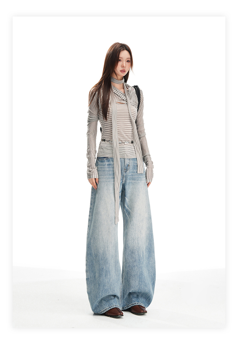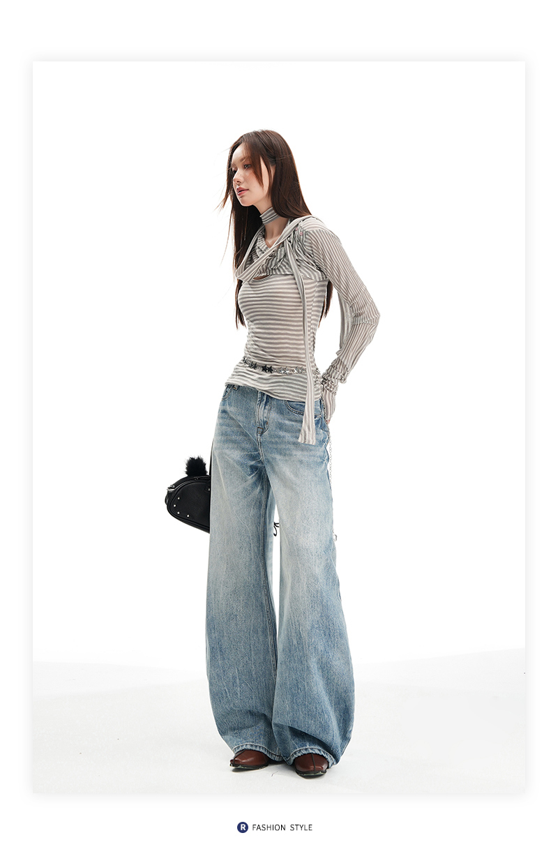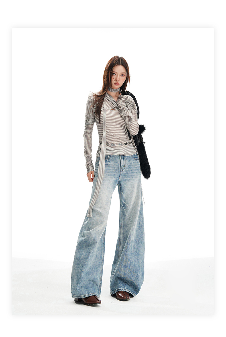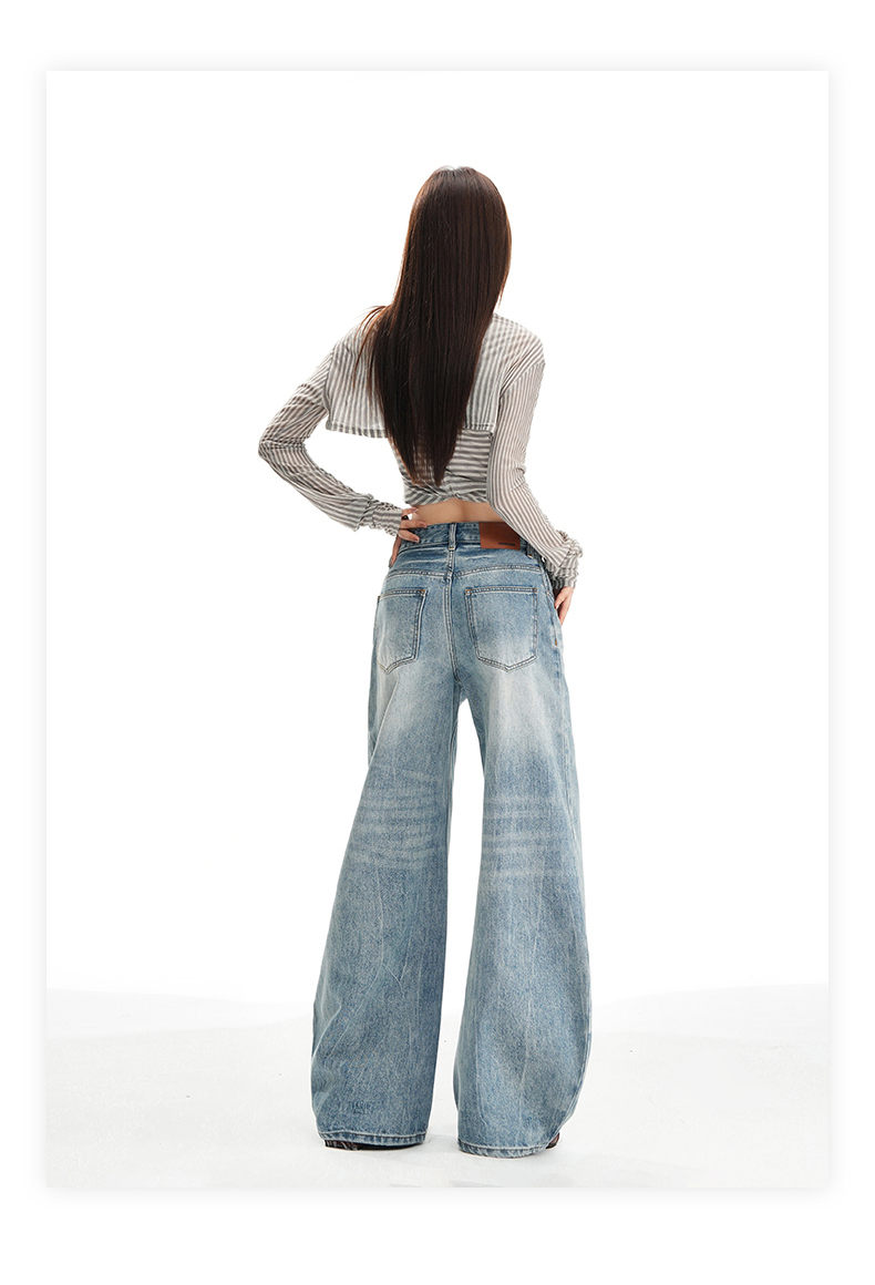 Light Blue Straight-Leg Jeans for Women, New Autumn Style, Tall and Slimming, Loose Wide-Leg Pants