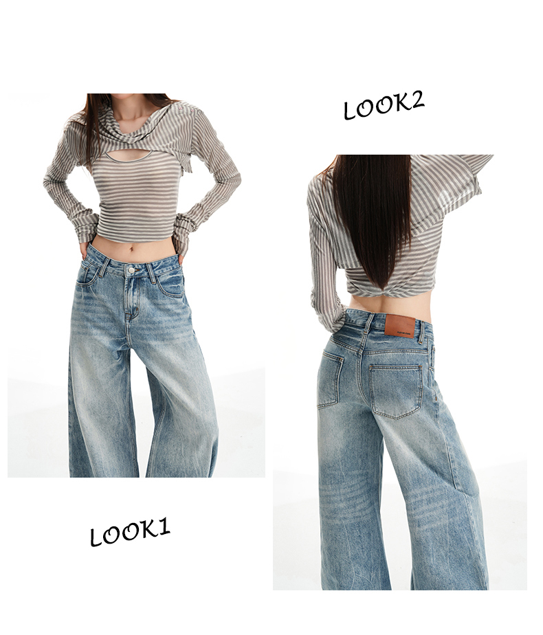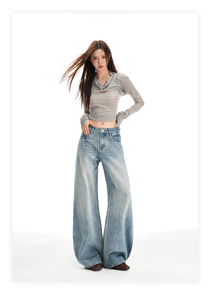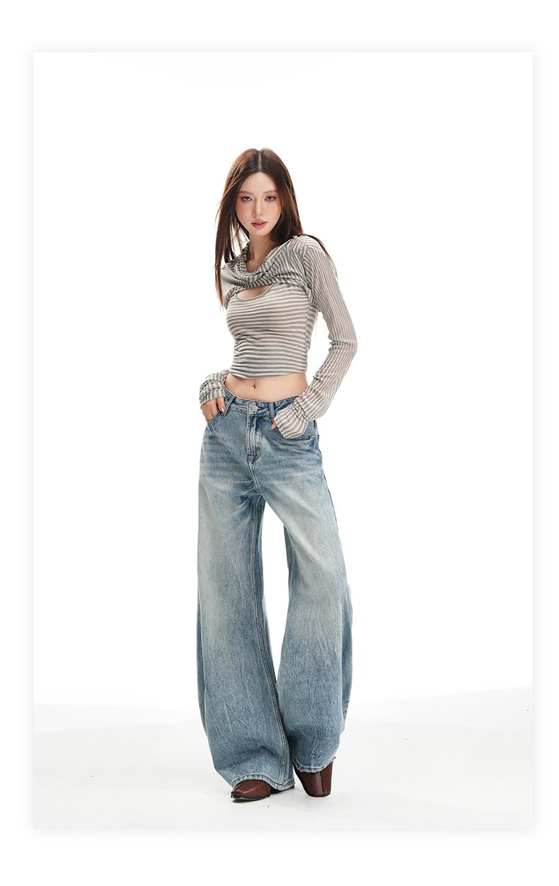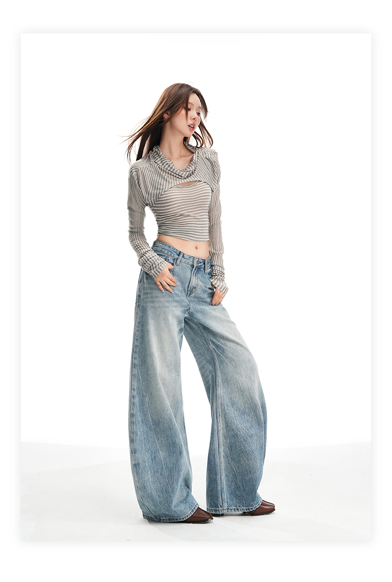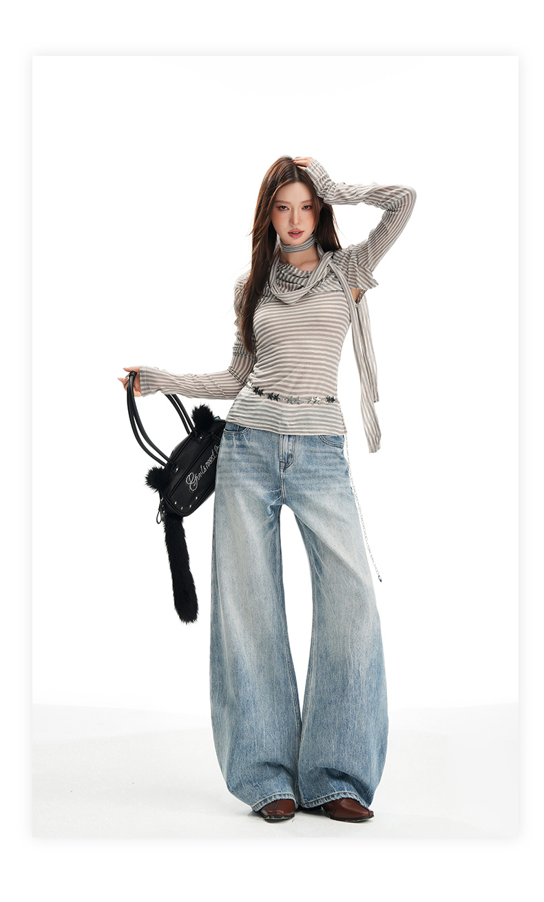 Light Blue Straight-Leg Jeans for Women, New Autumn Style, Tall and Slimming, Loose Wide-Leg Pants
